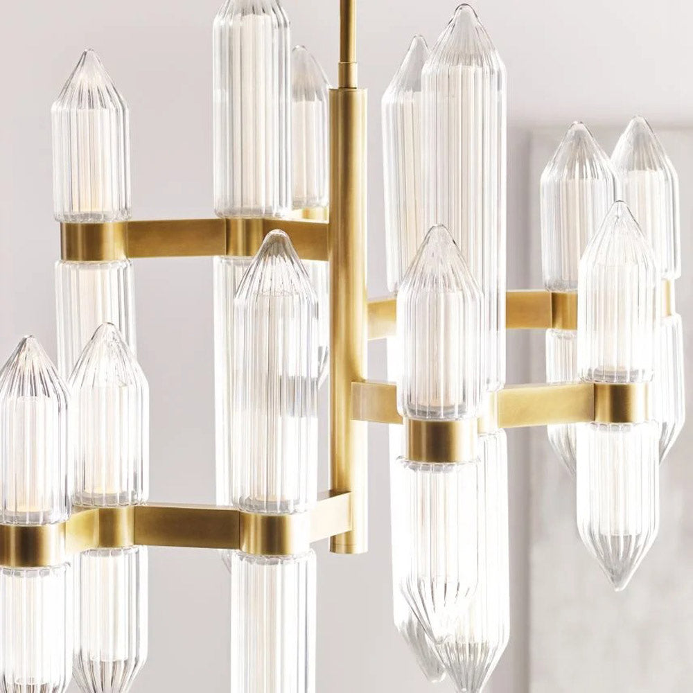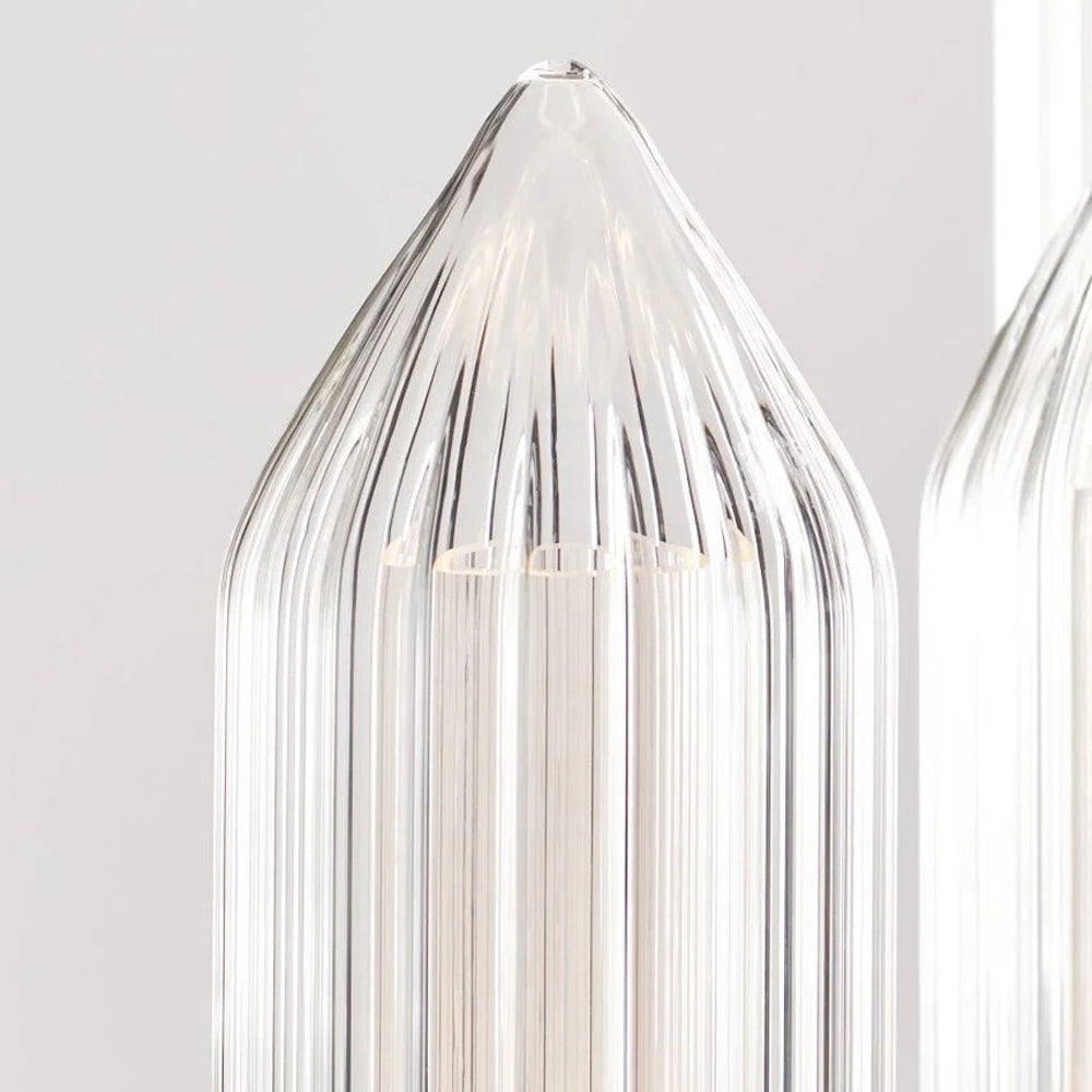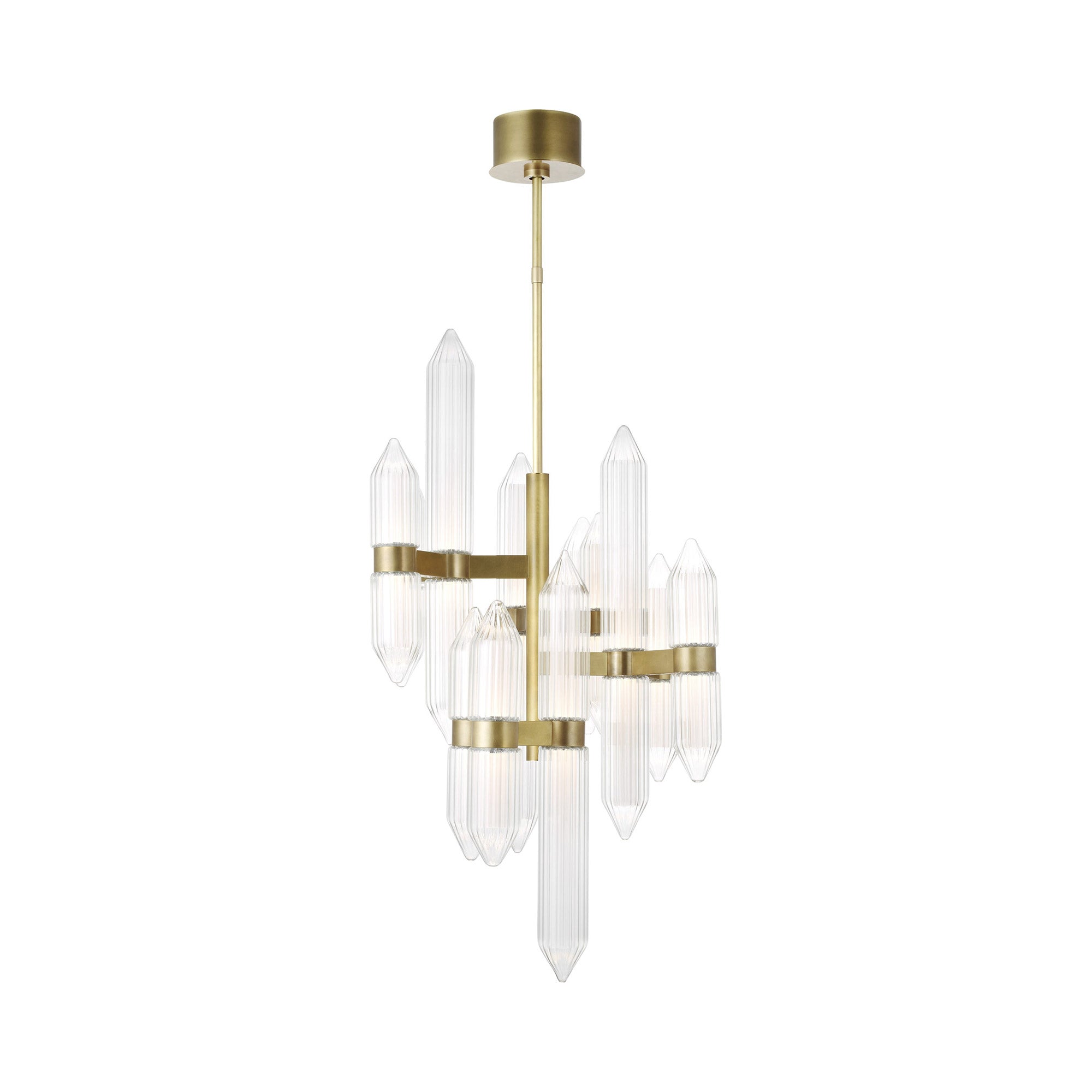 Vintage inspirations peek through the updated sensibility of the impeccably designed Langston LED Chandelier from Visual Comfort Modern. Gorgeous in a contemporary home that brims with sophistication, the chandelier features a trio of crystal clusters, each with elongated, ribbed forms with pointed ends and LED light that glow from within to create wonderful ambiance. Stunning over a formal dining table or elegant entryway.