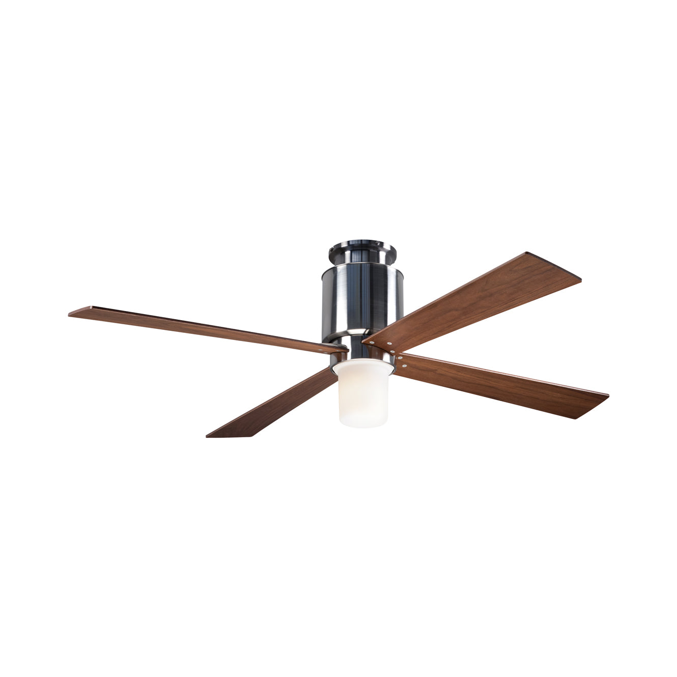 Update a contemporary space with the Lapa LED Flush Mount Ceiling Fan from Modern Fan Company and enjoy the benefit of energy-efficient lighting along with room cooling. This four-blade fan features construction of stamped and spun steel construction on an AC motor that reverses to push warm air downward. Mount on flat ceilings only.