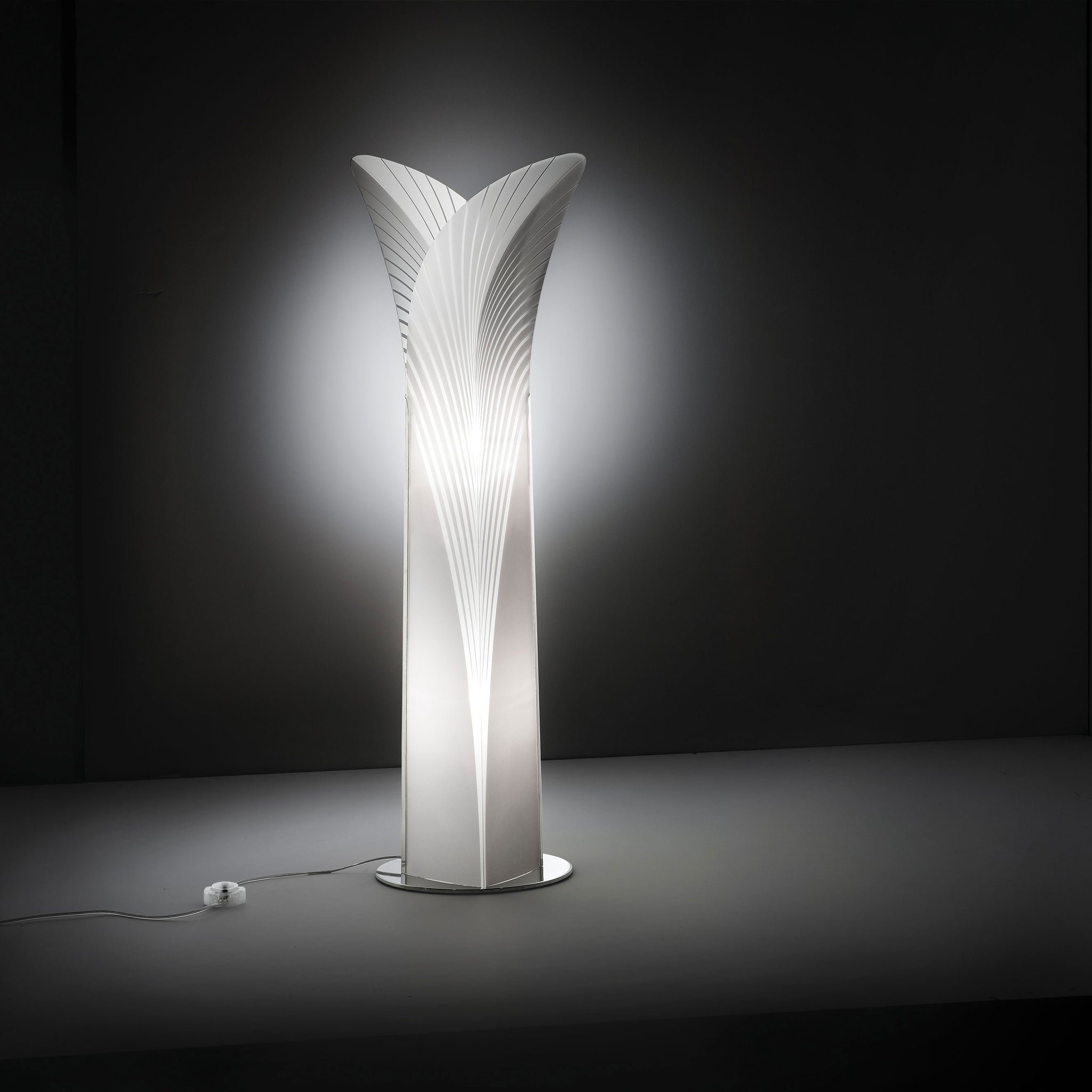 Botanical details highlight the tall, sculptural silhouette of the Las Palmas Floor Lamp from Slamp.