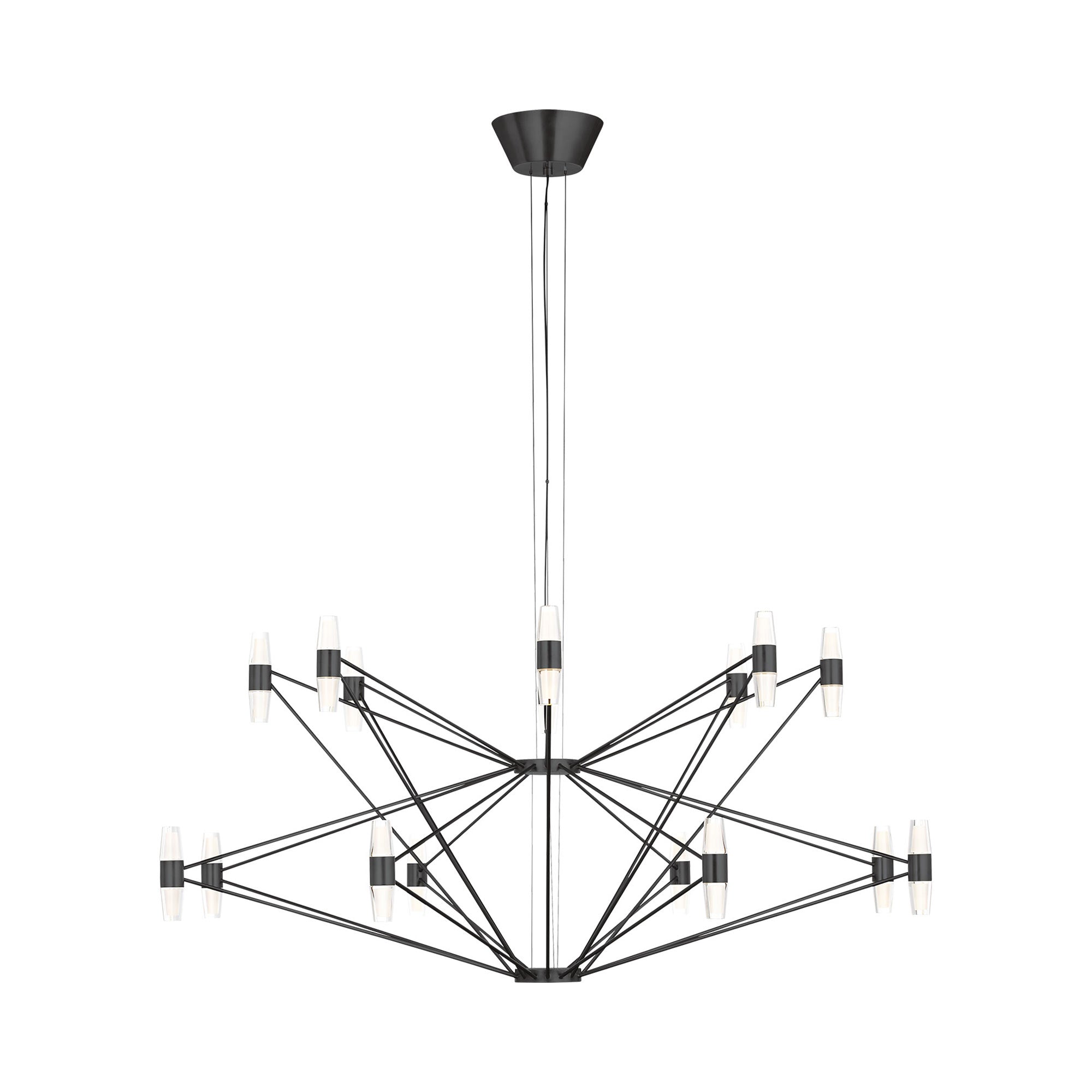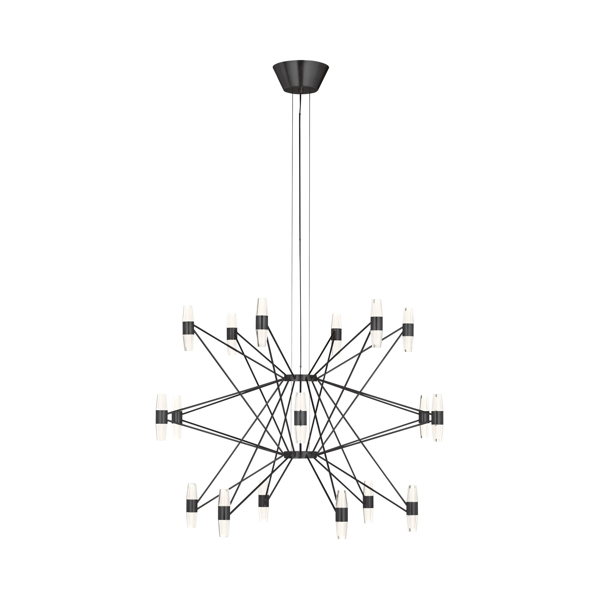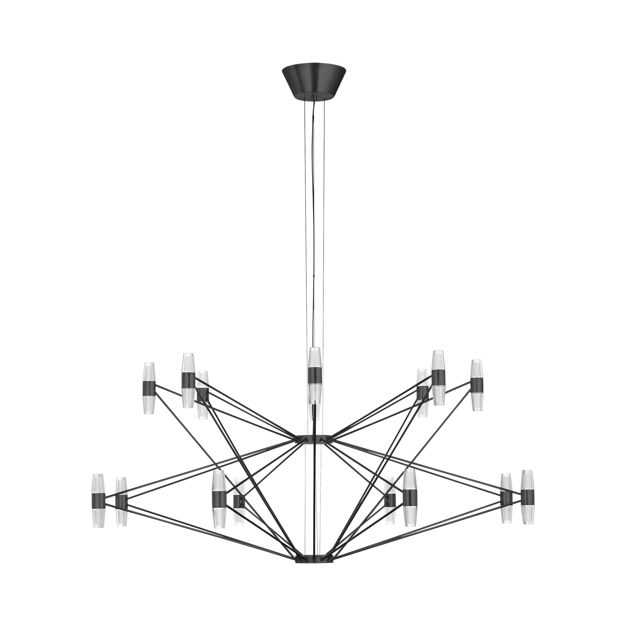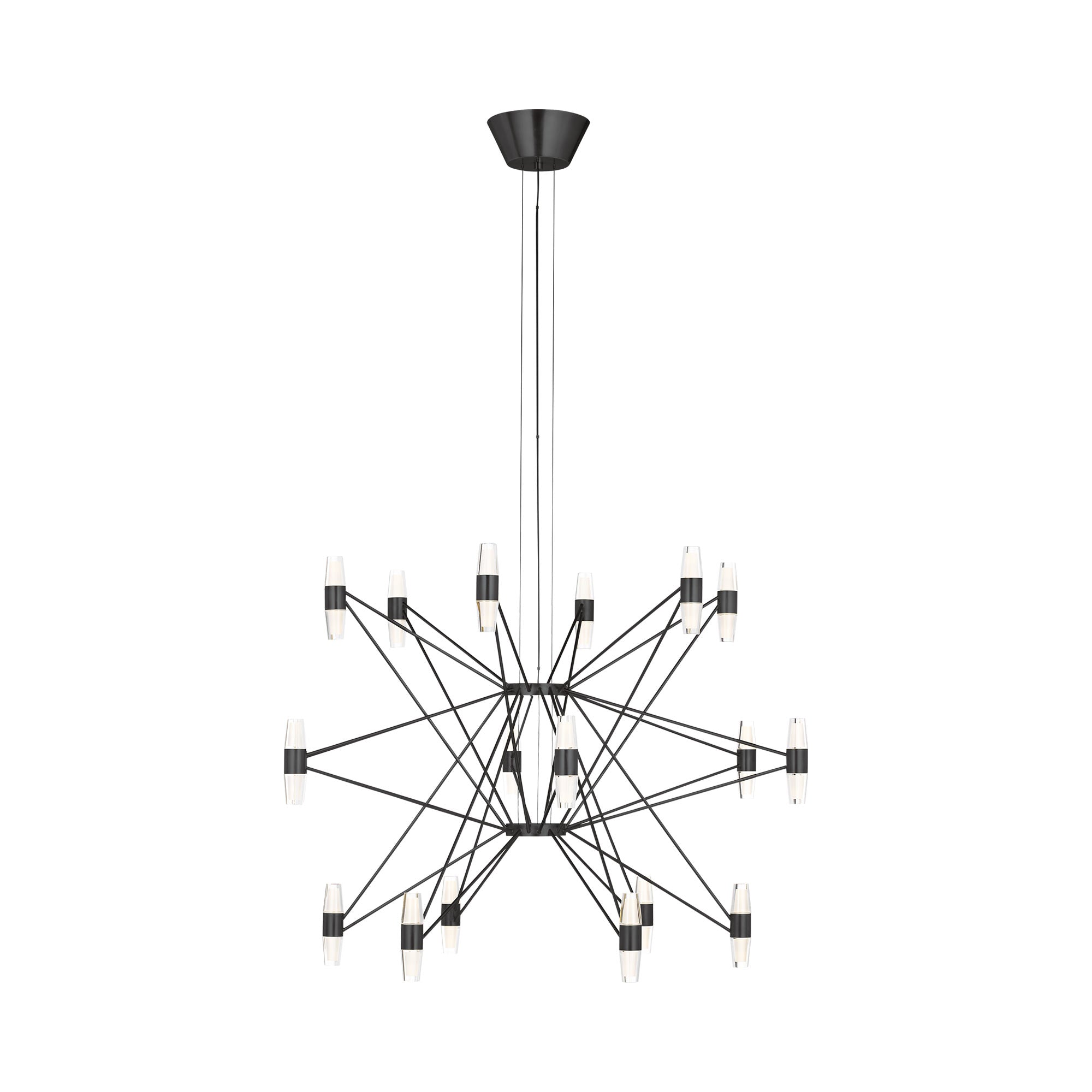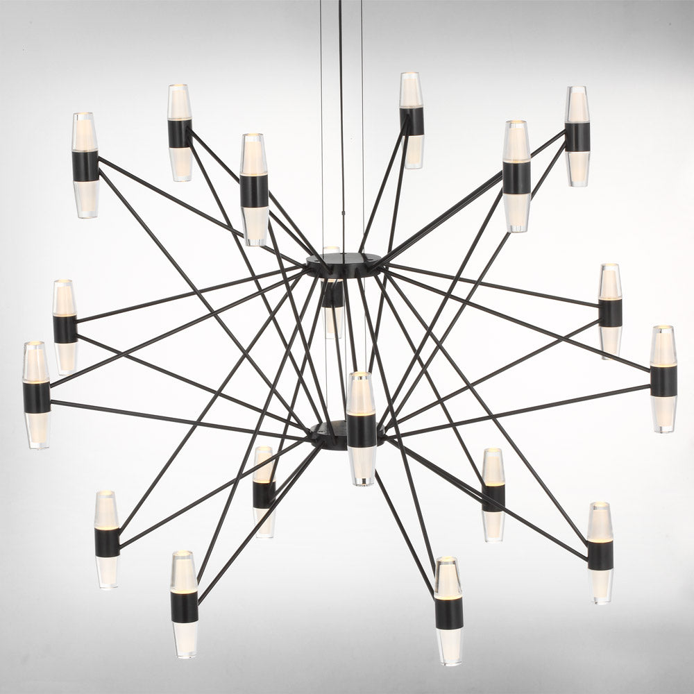 The telemetry of the stars provides chic inspirations for the intriguing silhouette of the Lassell LED Chandelier from Visual Comfort Modern. Sleek straight lines connect dual-sides lights, creating stunning light and shadow effects over a dining table or in your foyer.