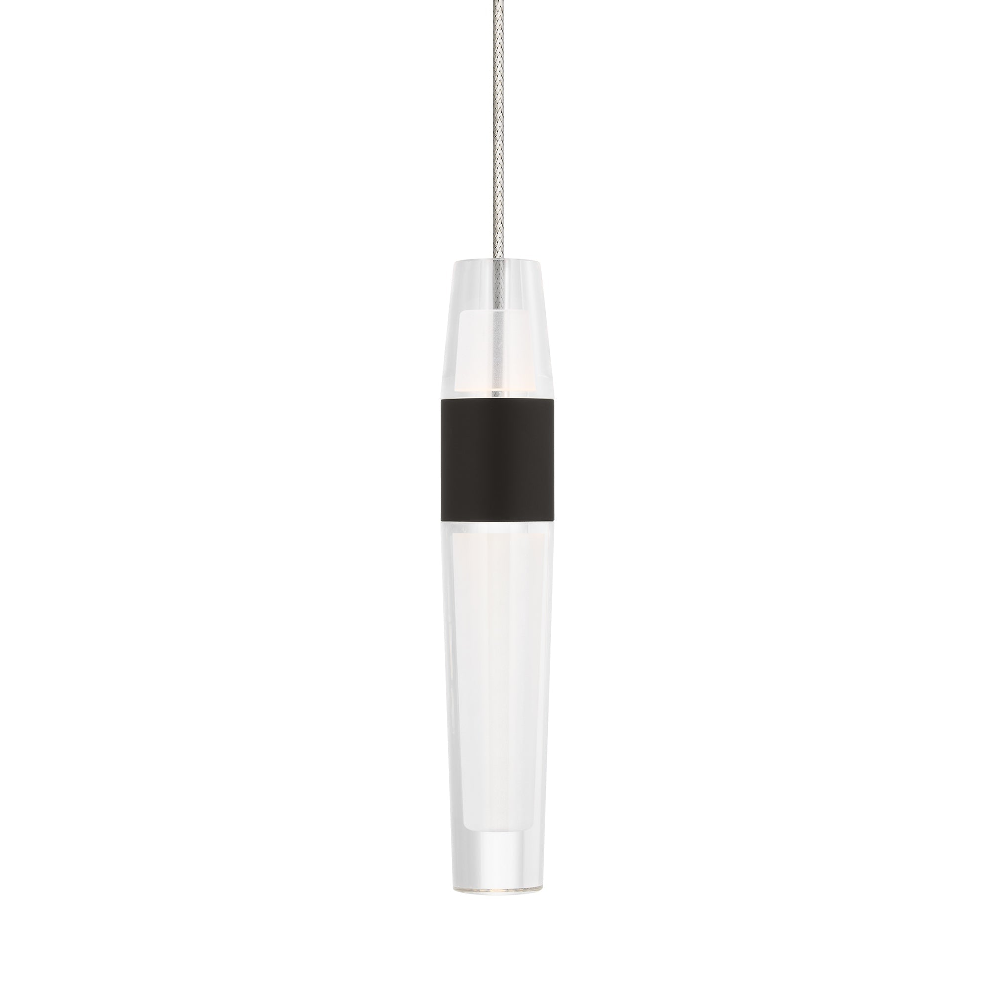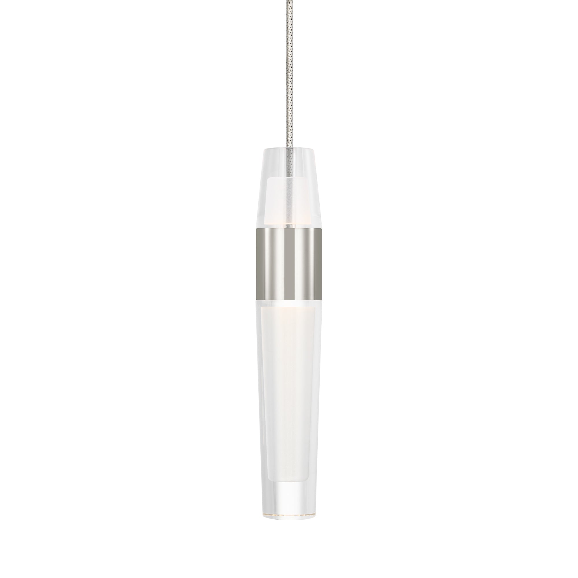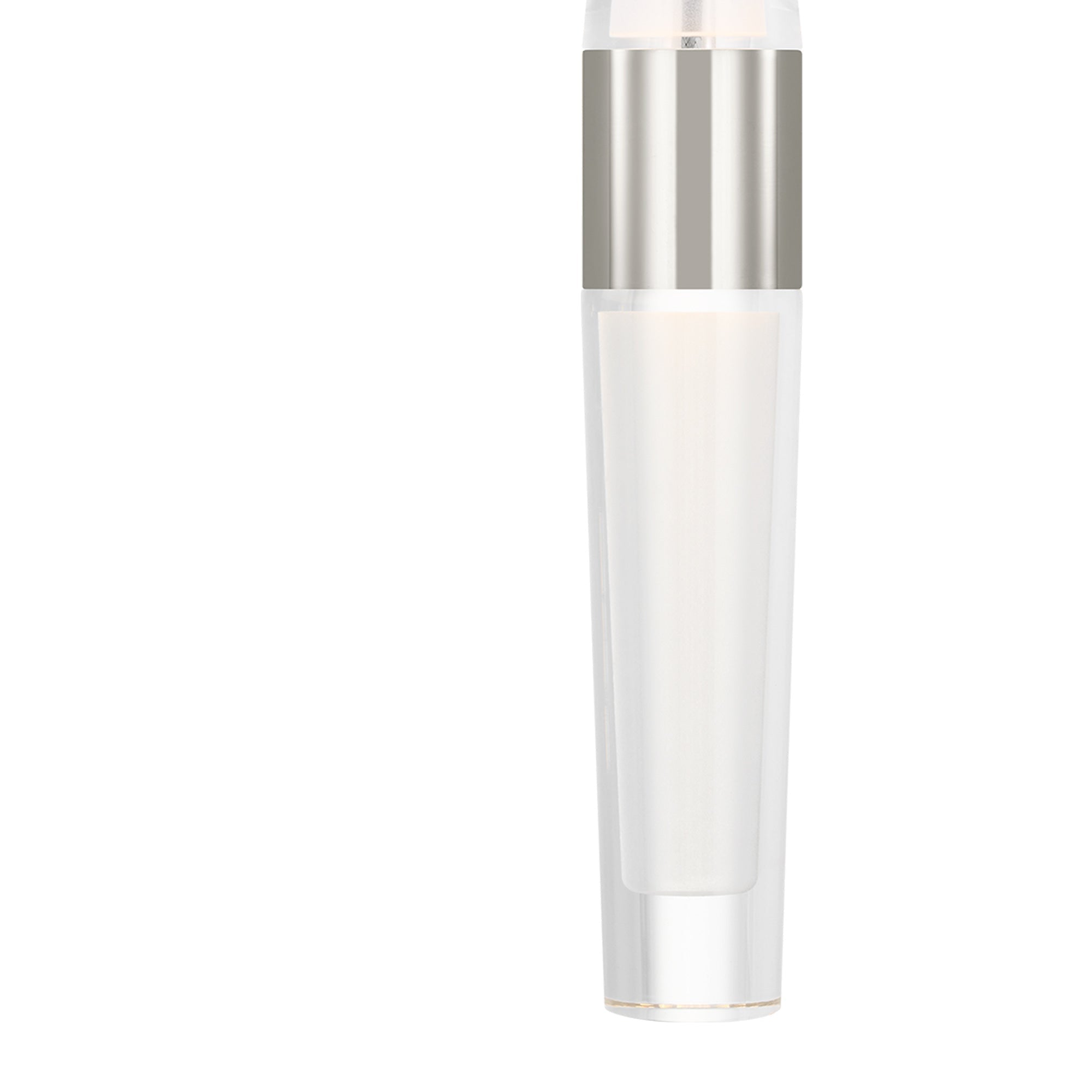Laser etched crystal brings icy elegance to this Lassell Mini LED Pendant Light from Visual Comfort Modern. It slim, elongated silhouette is paired with a wide center collar, creating contrast and depth over a kitchen island, in a powder room and elsewhere in your home.