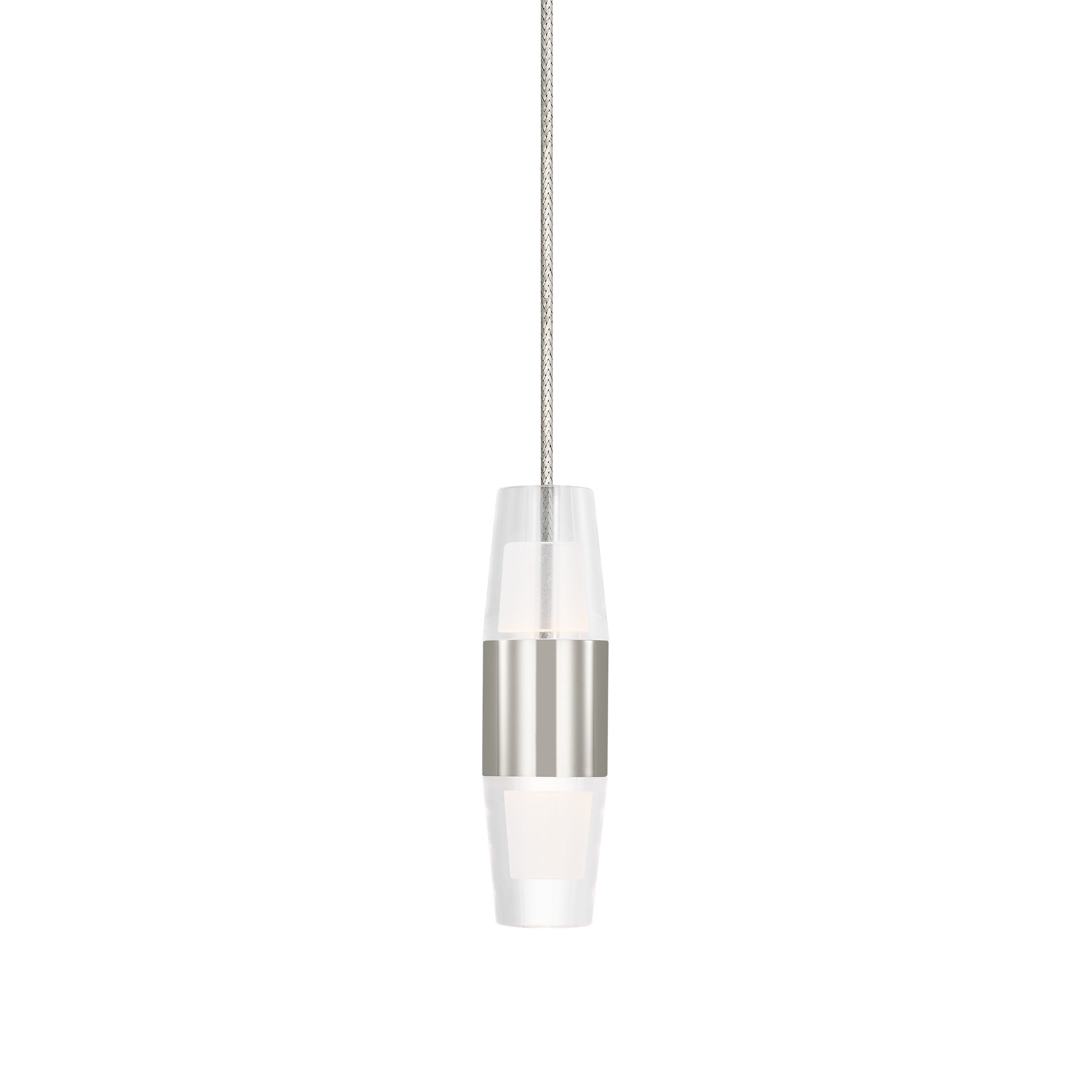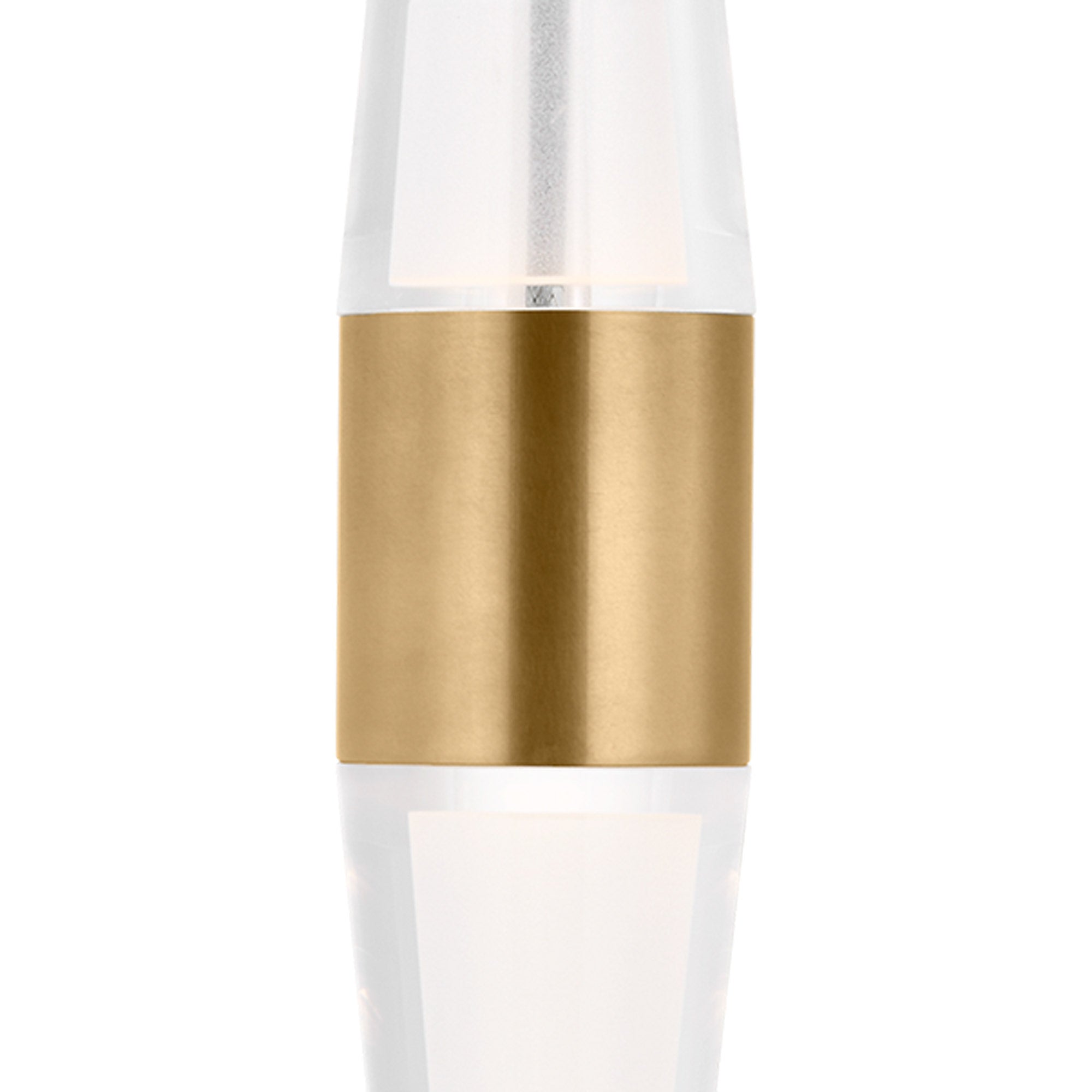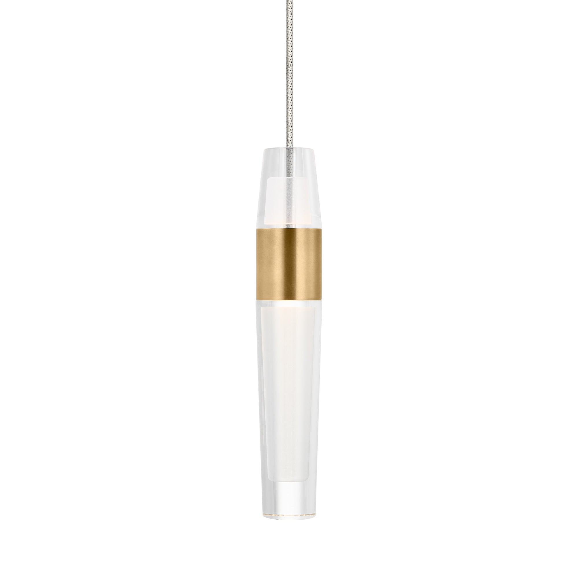 Laser etched crystal brings icy elegance to this Lassell Mini LED Pendant Light from Visual Comfort Modern. It slim, elongated silhouette is paired with a wide center collar, creating contrast and depth over a kitchen island, in a powder room and elsewhere in your home.