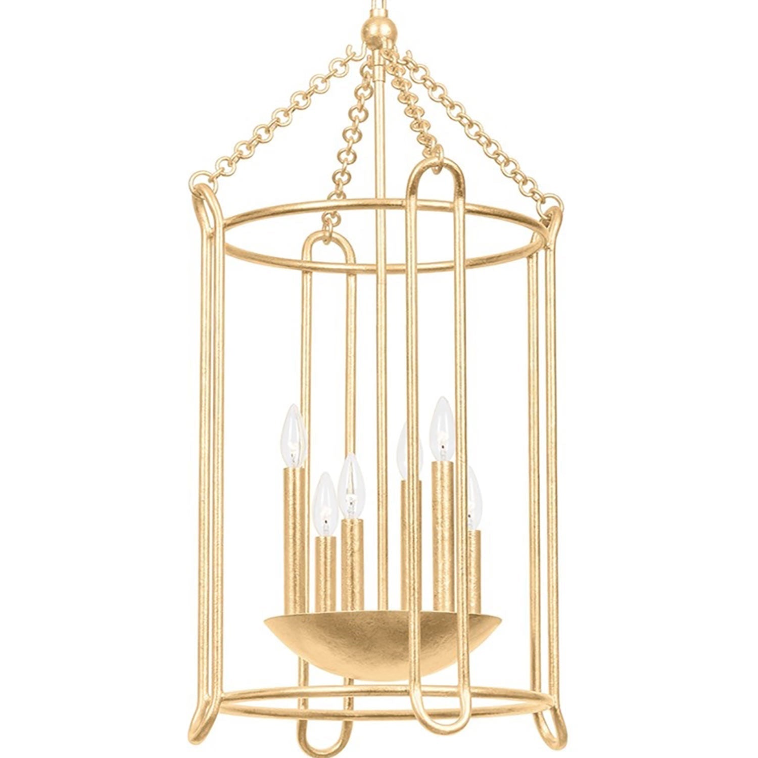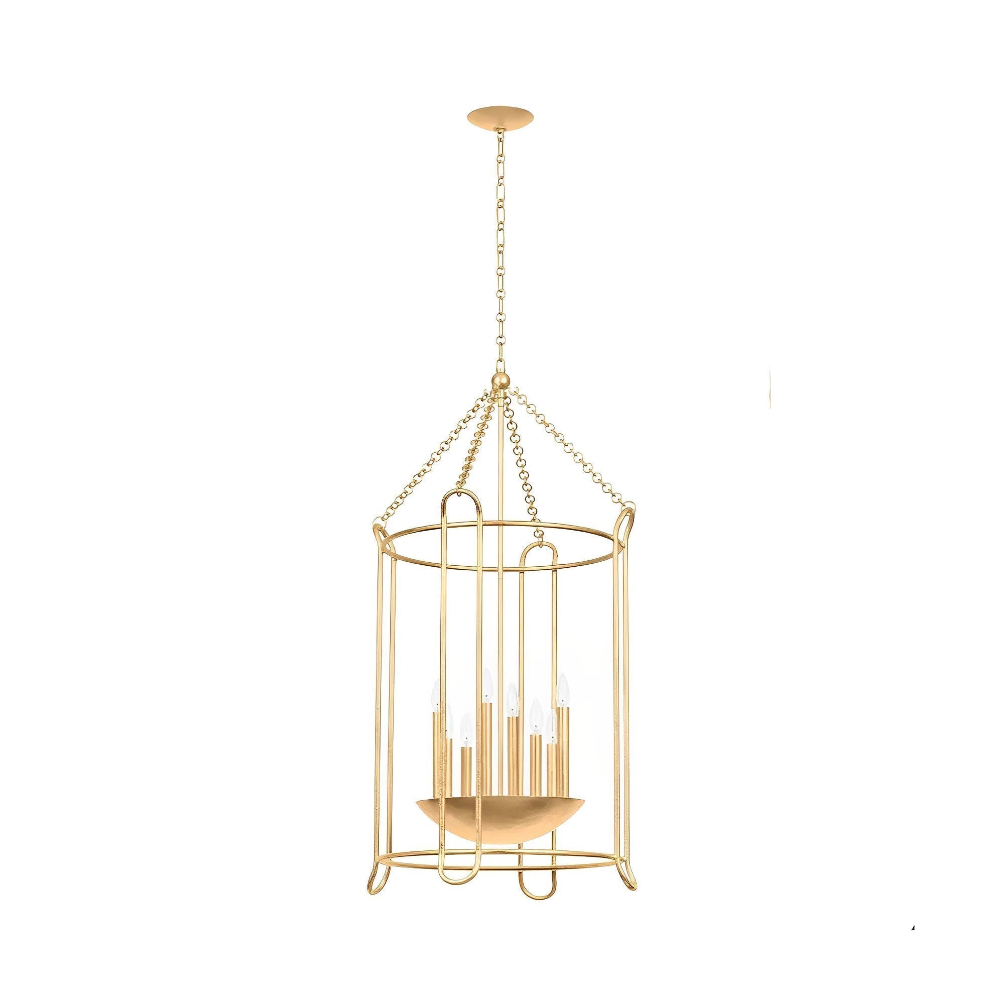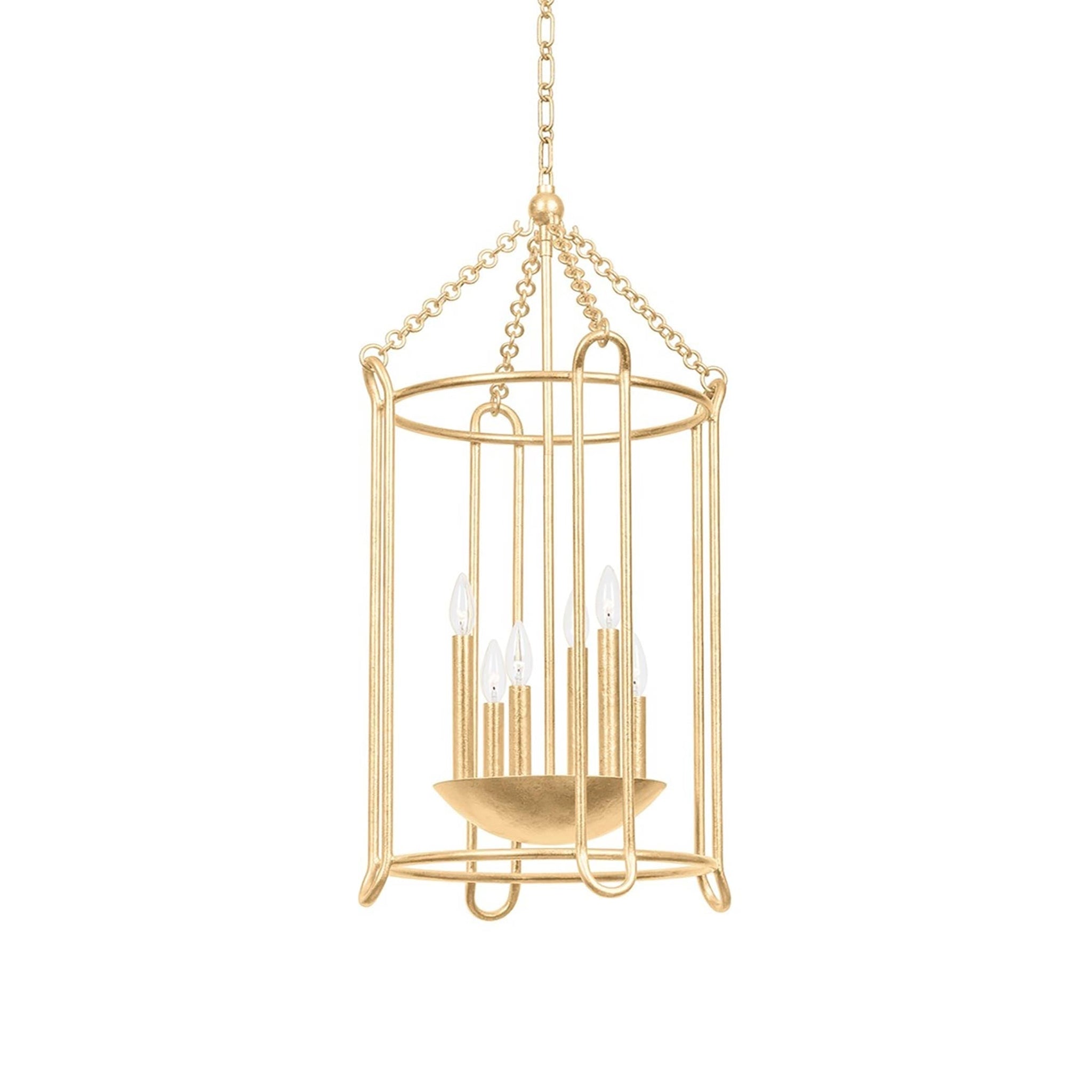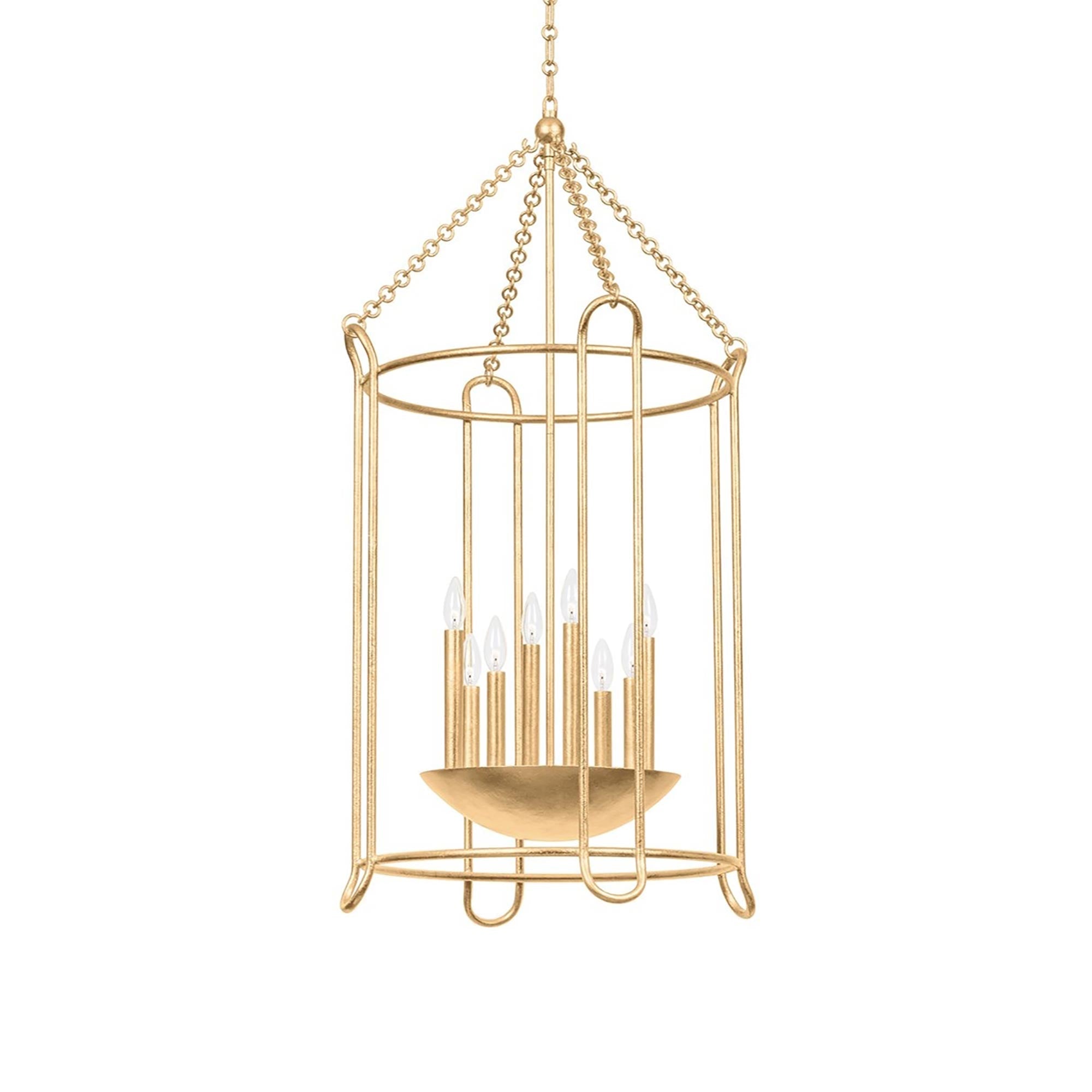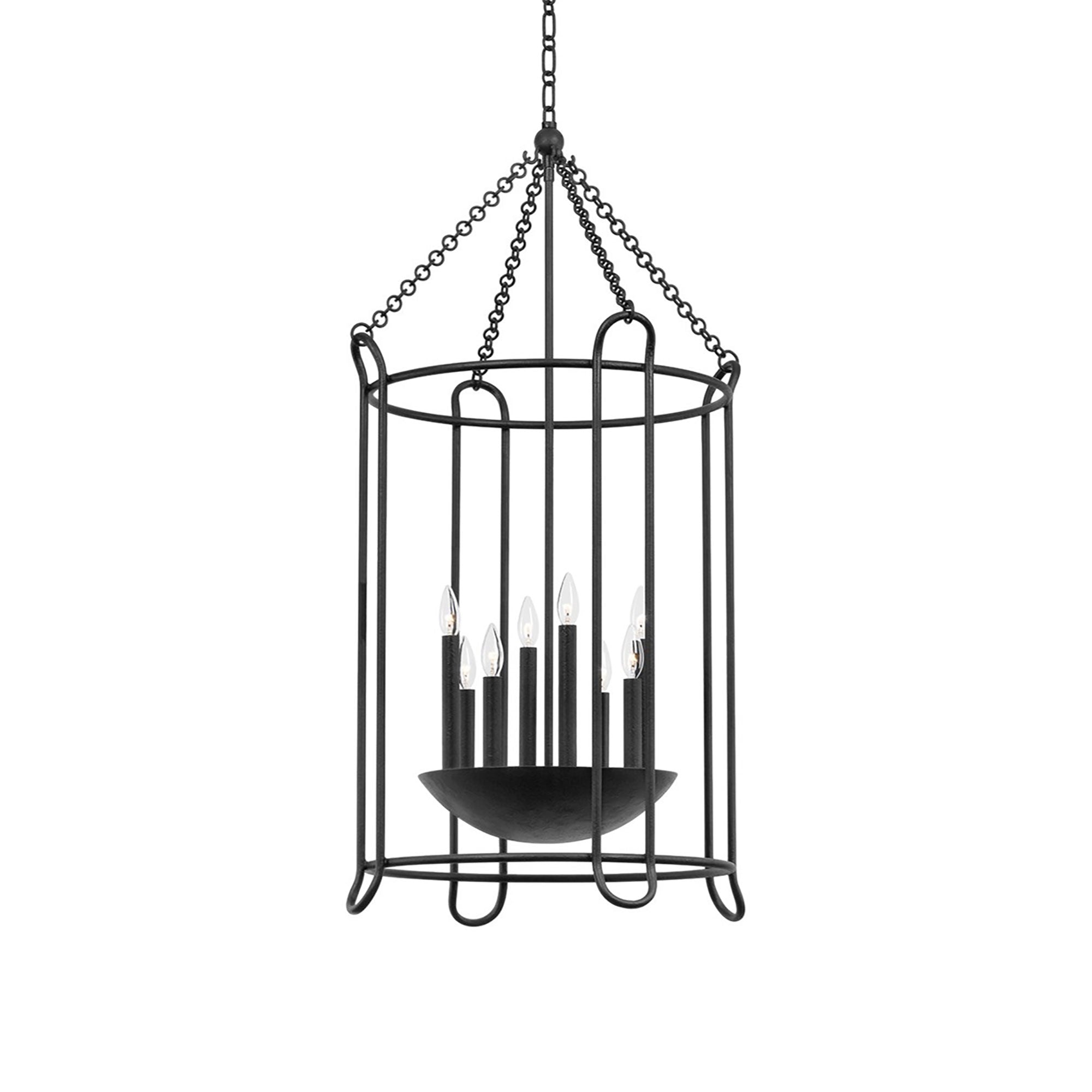 The Lassen Pendant Light from Troy Lighting offers an industrial-inspired spin on conventional lantern and cage framing. Open metalwork forms the backdrop of a fixture with both contemporary and transitional appeal, perfect for laid-back room designs. Tempting candelabra-style lights cluster in a center dome, as gritty chain-link suspension enhances its more rugged motif.