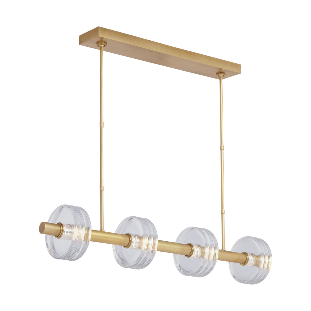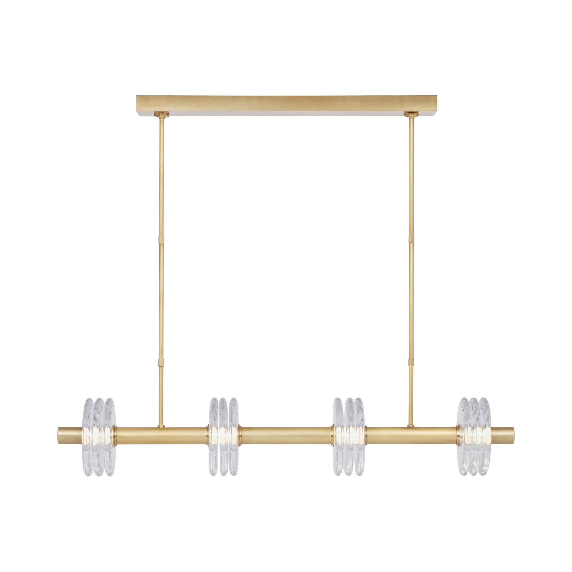 Italian glass discs create a stunning beaded detail for the sophisticated Laurel LED Linear Pendant Light from Visual Comfort Modern. Meticulously handcrafted by Italian artisans, this pendant is a superb work of art that brightens and enlivens over a kitchen island or dining table. Its linear silhouette is enhanced with a warm natural brass finish that pairs perfectly with elegant decor.