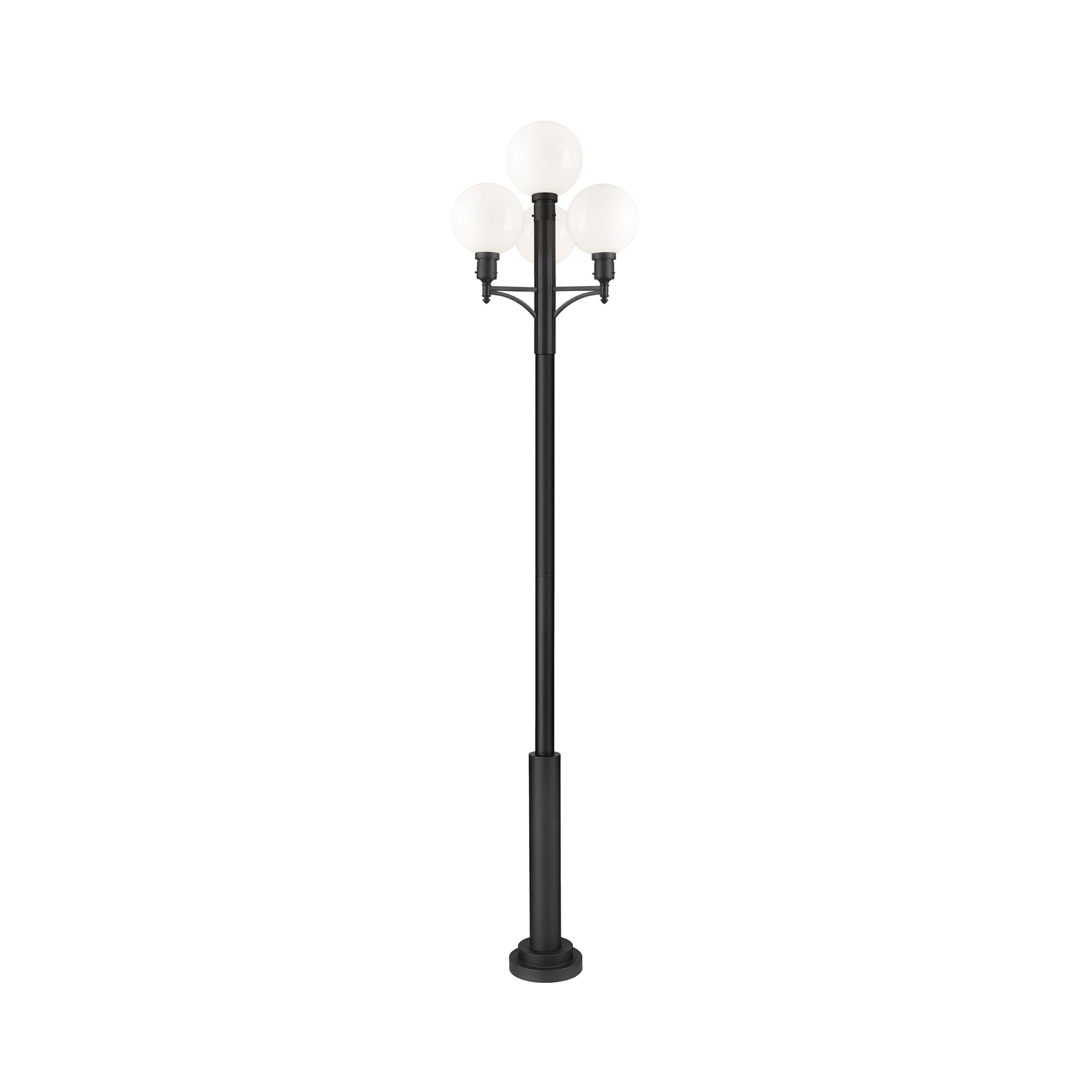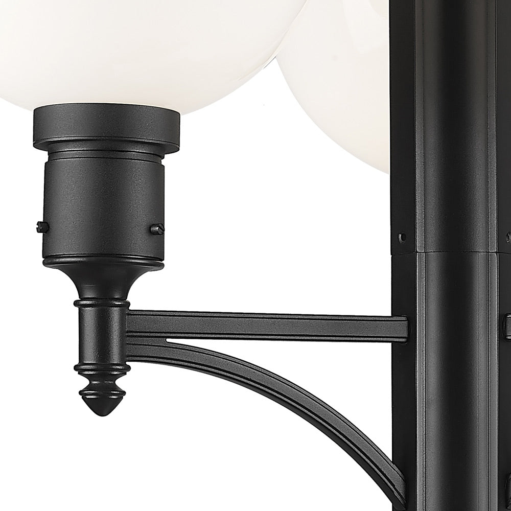 A quartet of opal glass spheres create soft, inviting allure for the Laurent Outdoor Mounted Post Light from Z-Lite. Delivering the impeccable elegance of a full moon, the fixture stands tall and strong with a metal post and frame, all in a black finish. Decorative embellishments cast a refined touch, perfect for curb appeal and lovely illumination.
