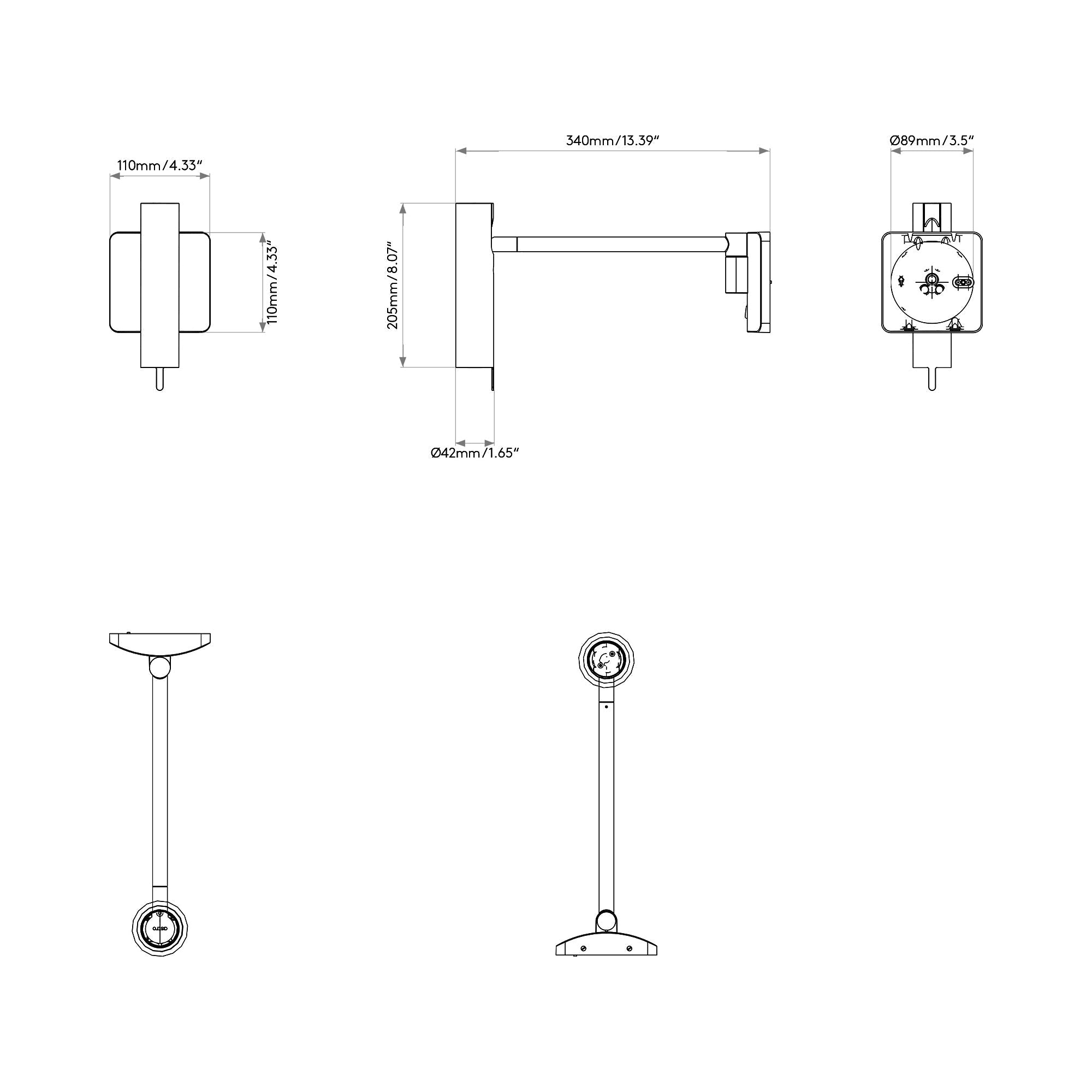 - Backplate: 4.33"W X 4.33"H