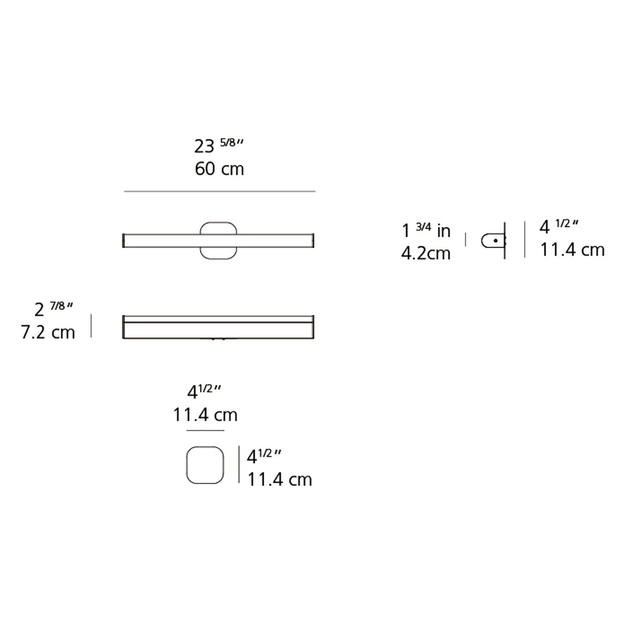 - Small: 23.63"W X 1.75"H; 2.88" Extension