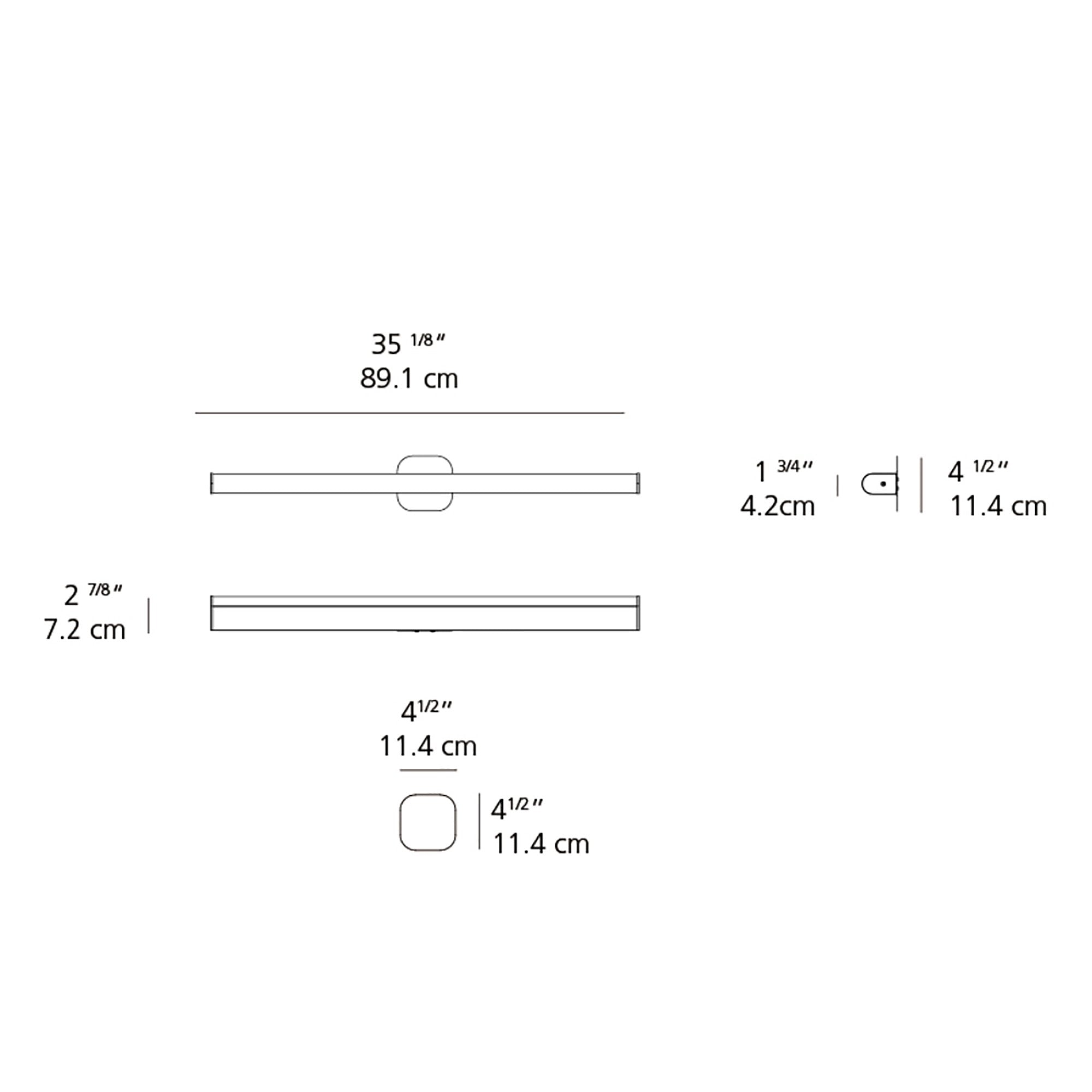 - Medium: 35.13"W X 1.75"H; 2.88" Extension