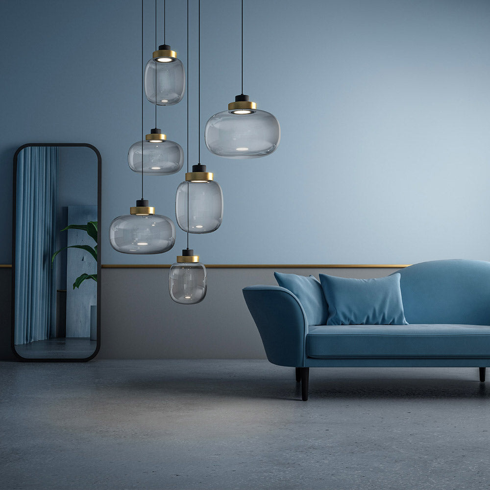 A spectacular cluster of glass forms invoke vintage charm as the Legier LED Multi-Light Pendant Light from Tooy repackages an industrial motif with purposeful softening elements. Light glows through variously shaped shades, capped with metal holders and suspended from iconic cables. An obvious strength of lighting is functional, matching the artisan and proportional silhouette of dangling elements.