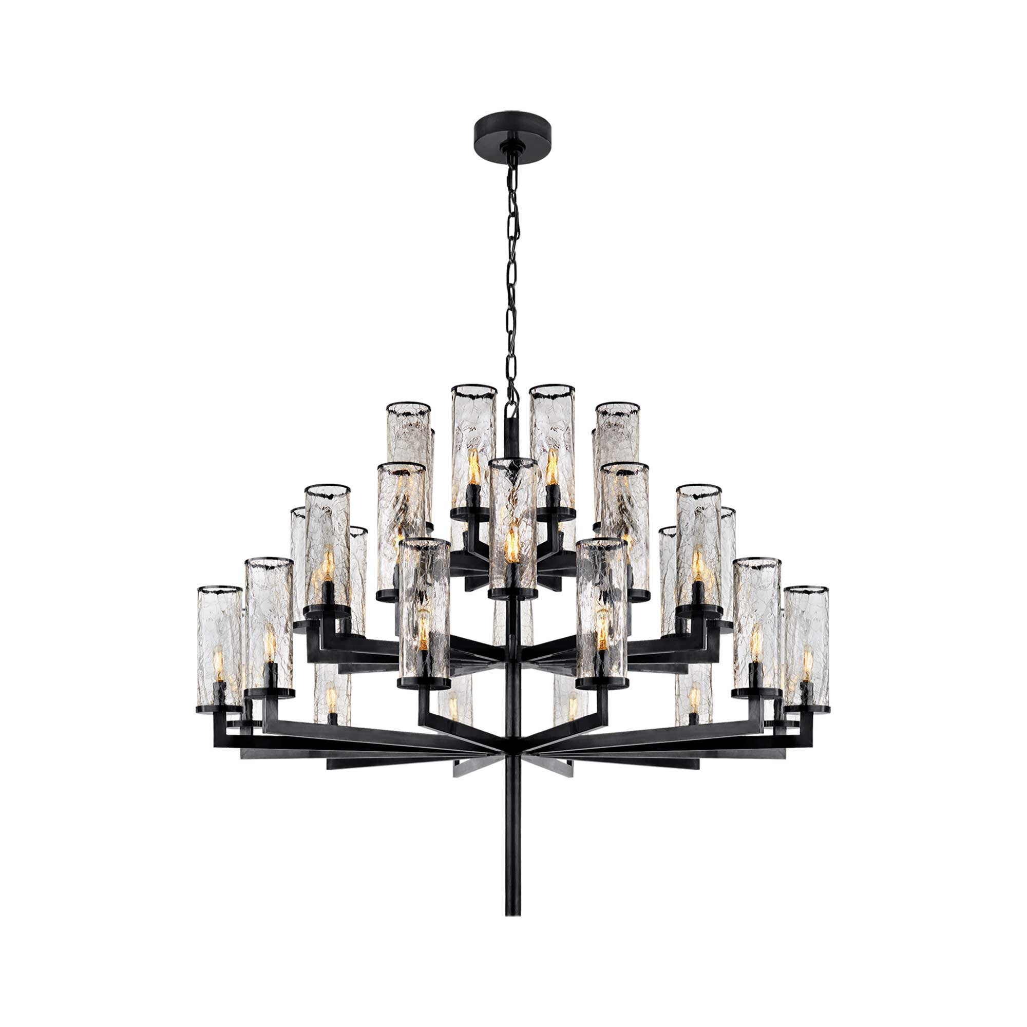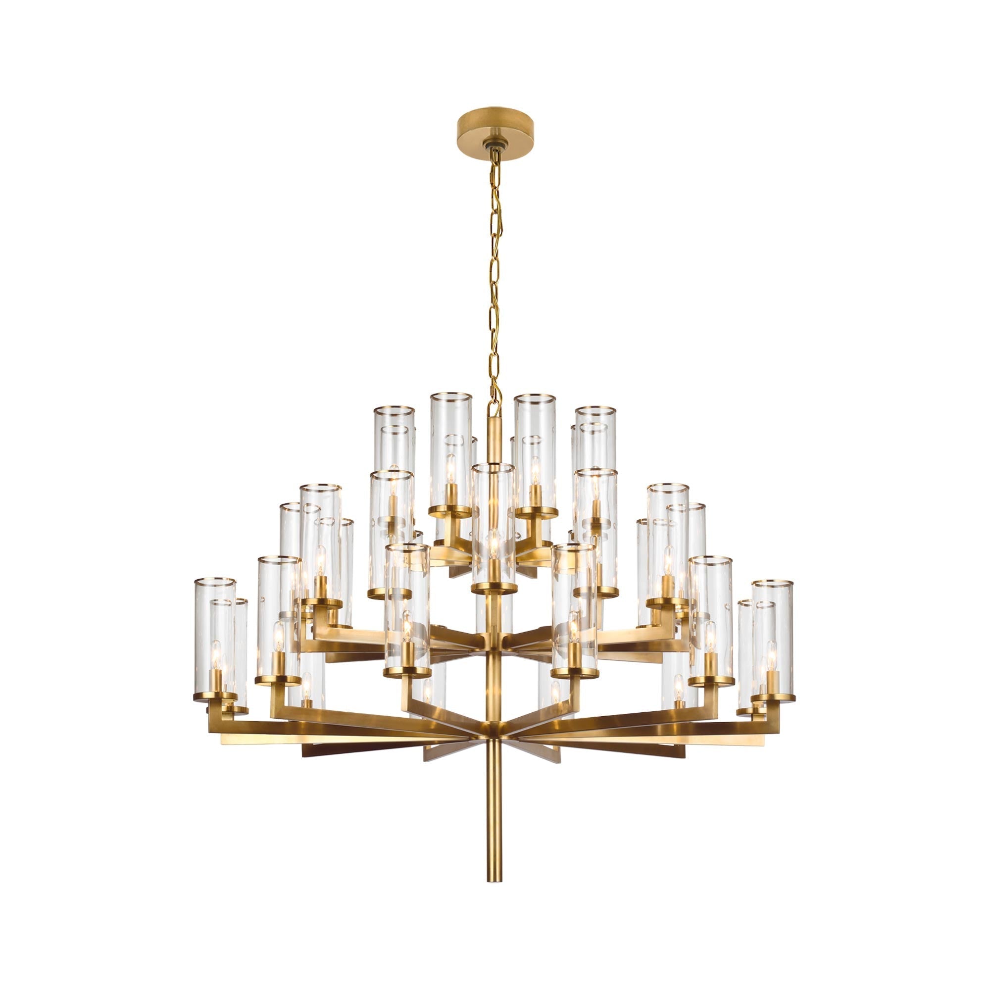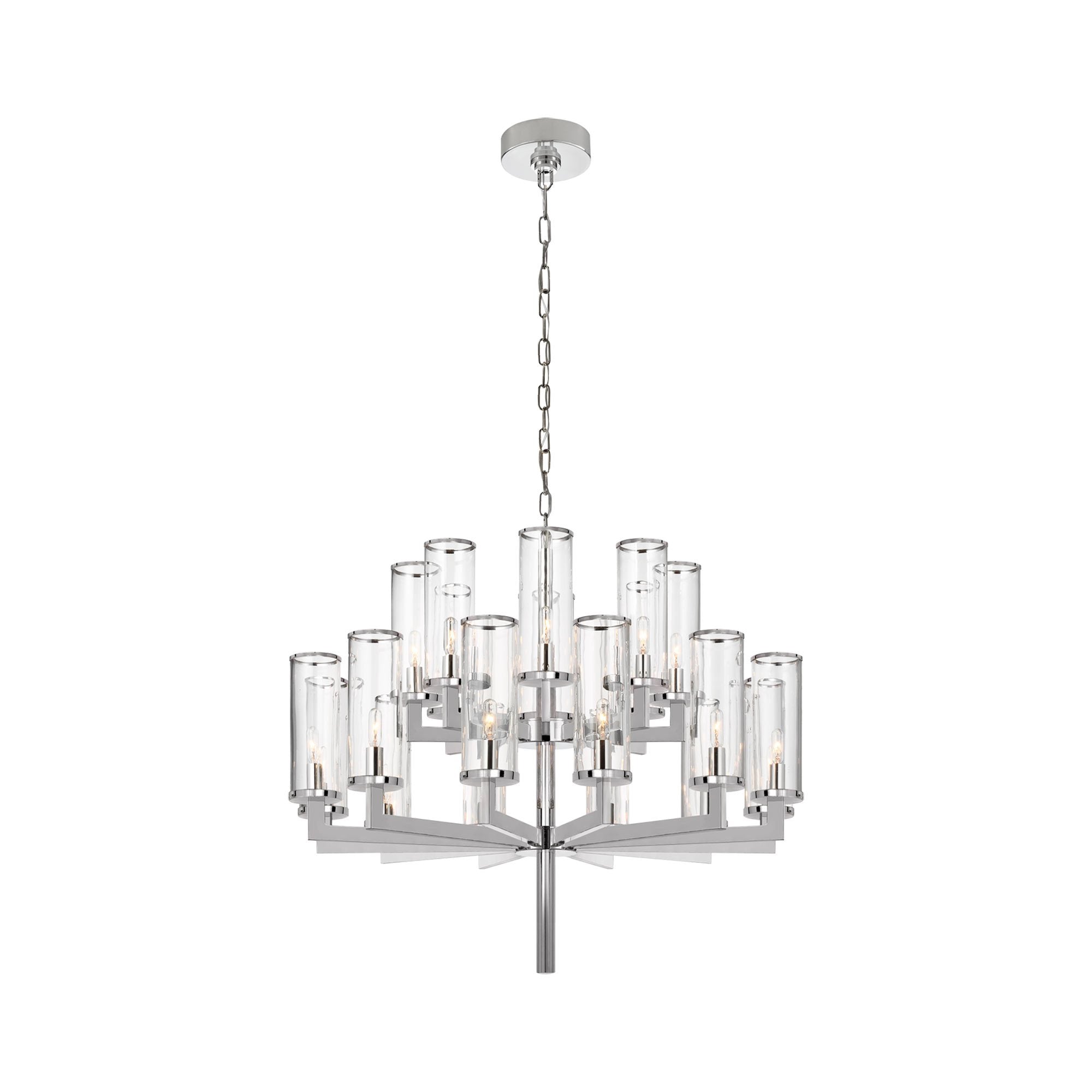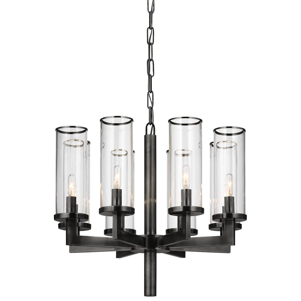 Blending elements of a classic candelabra with a modern sensibility, the Liaison Chandelier from Visual Comfort Signature creates a beautiful focal point. Tall cylinders of glass surround each light, perfectly accentuating a clean, classic silhouette.