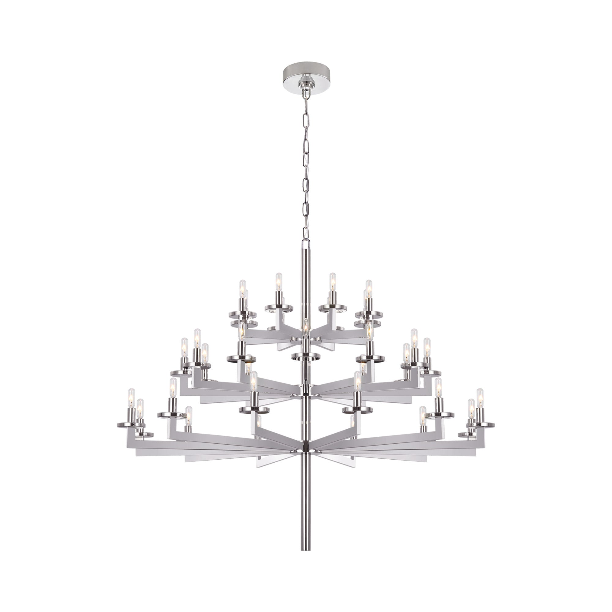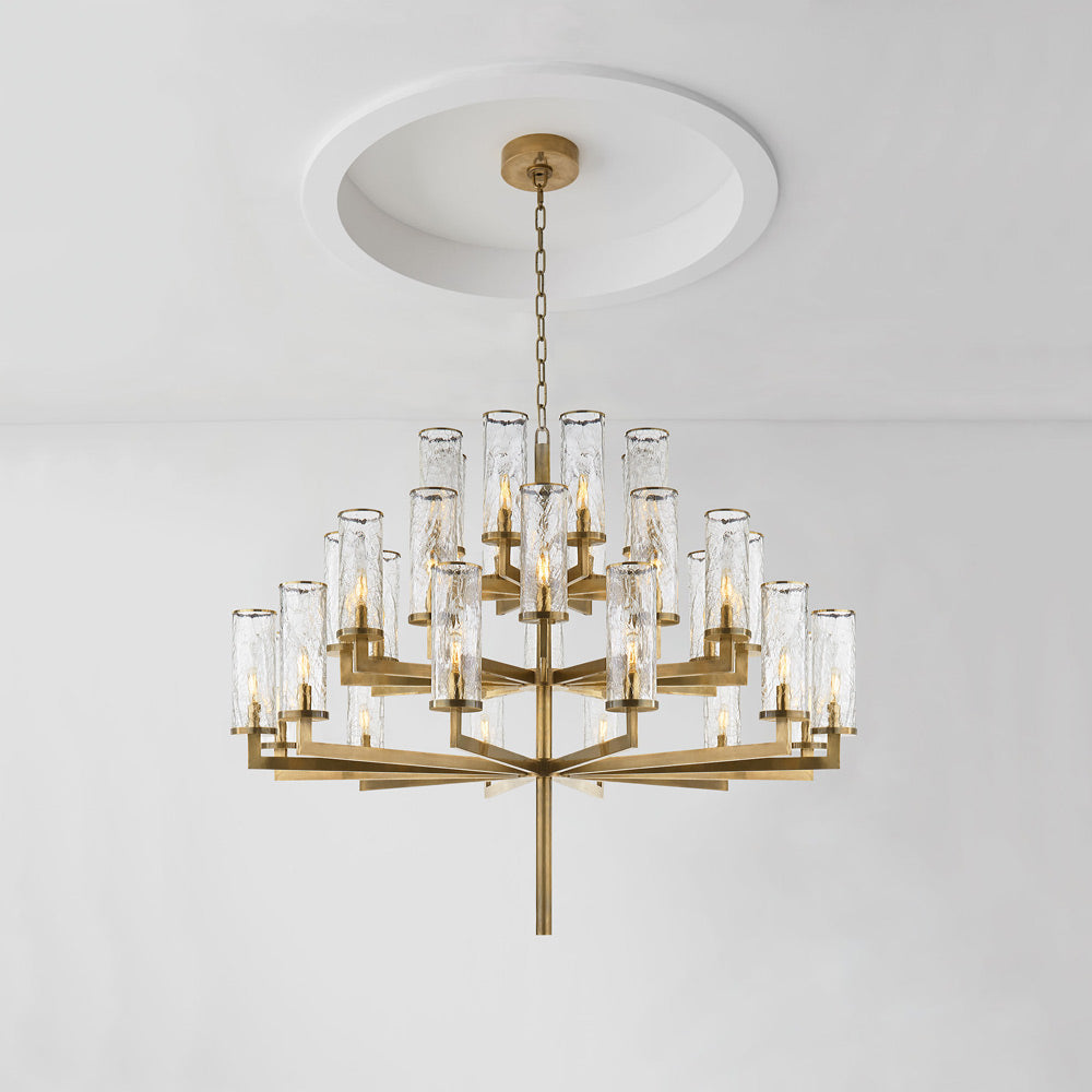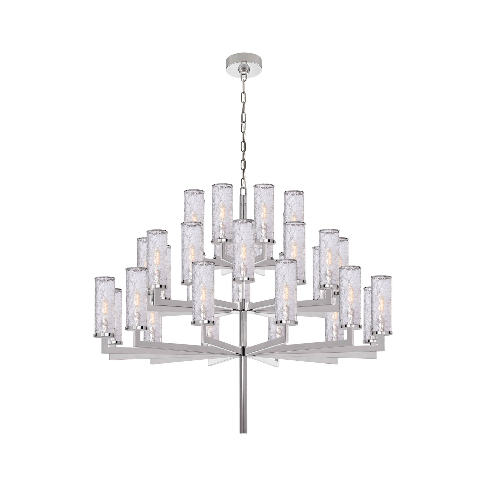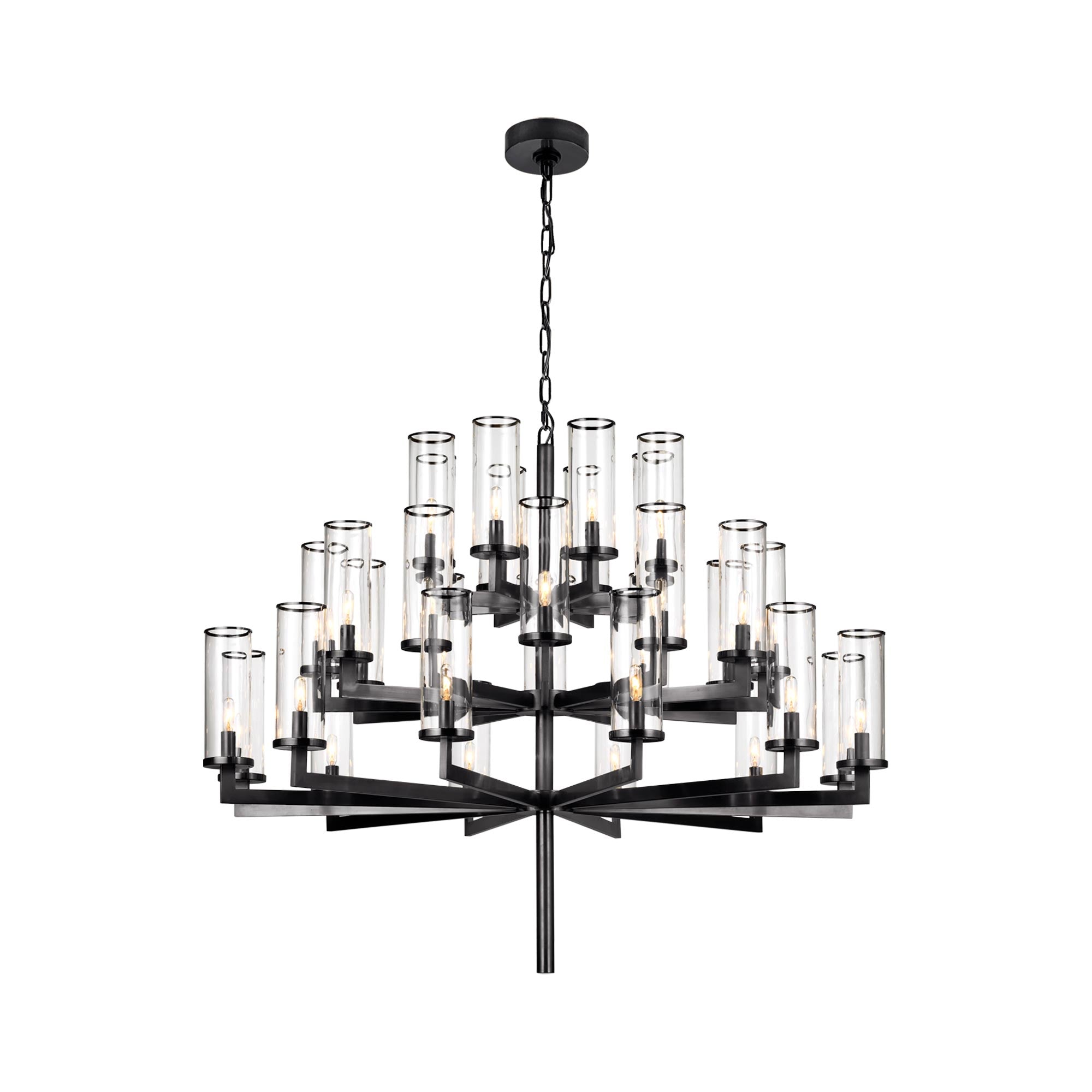 Blending elements of a classic candelabra with a modern sensibility, the Liaison Chandelier from Visual Comfort Signature creates a beautiful focal point. Tall cylinders of glass surround each light, perfectly accentuating a clean, classic silhouette.