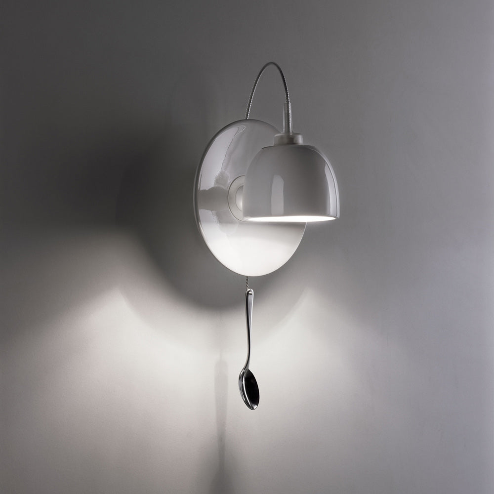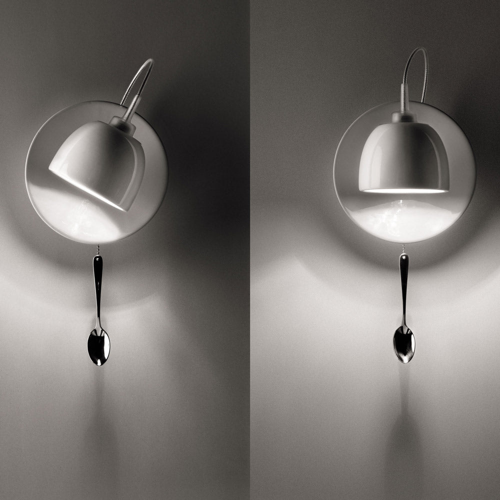 With dining implements centering its artisan inspiration, the Light Au Lait Wall Light from Ingo Maurer delivers no shortage of cheerful energy and a tribute to pop art. Stoneware pieces include a plate and swiveling cup that directs light targeting, as a solo stainless steel spoon icon serves as a cheeky pull switch. Kitchens and dining areas take on a new aesthetic with this fixture.