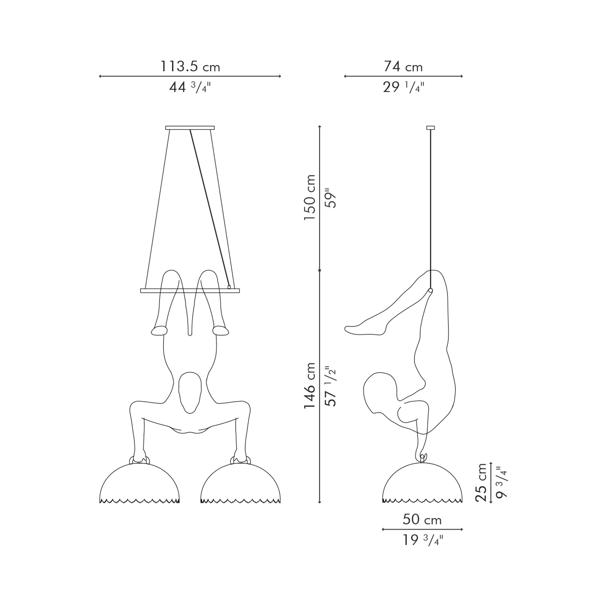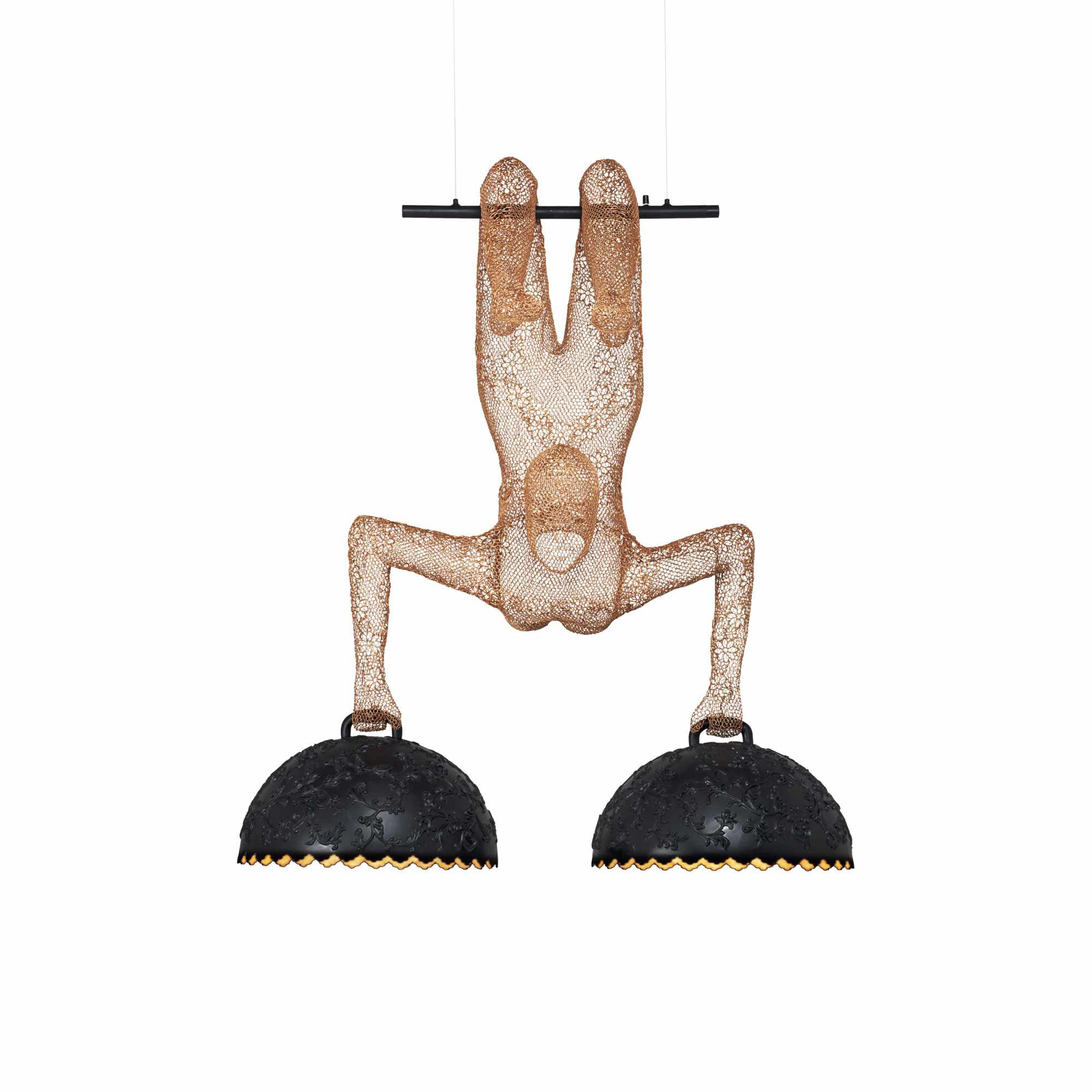 The spontaneity and elegance of an aerialist is perfectly captured in the Limbo Trapeze Chandelier from Kenneth Cobonpue. Handwoven gossamer wires create a lattice that becomes a human form, with a pair of dome shades clasped in hands to create a sense of balance and offer downward illumination that's perfect for a whimsical kitchen or dining room.