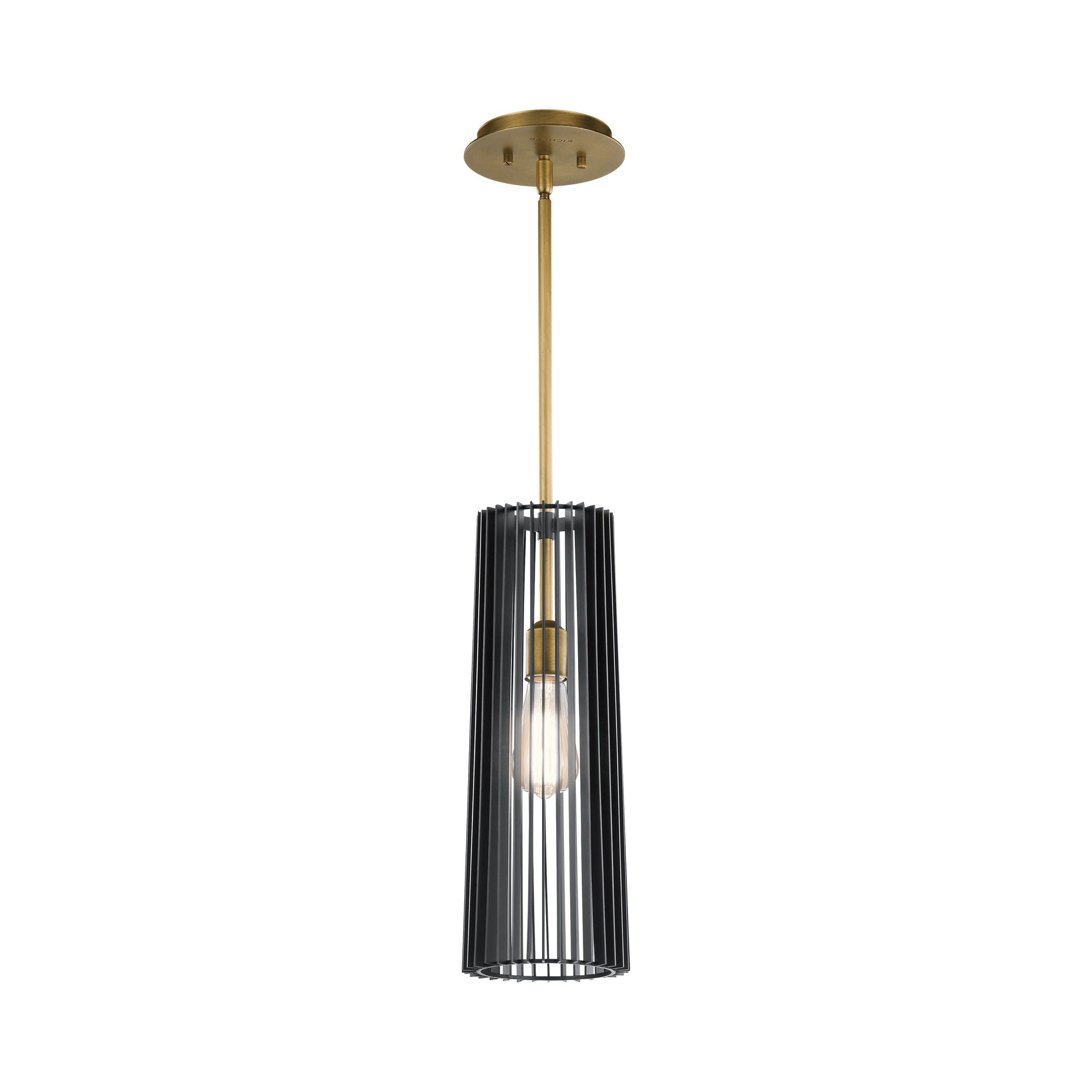 The Natural Brass finish on this Linara Pendant Light, is like jewelry to the Matte Black metal slatted shade. A refreshing twist on contemporary and midcentury modern décor.