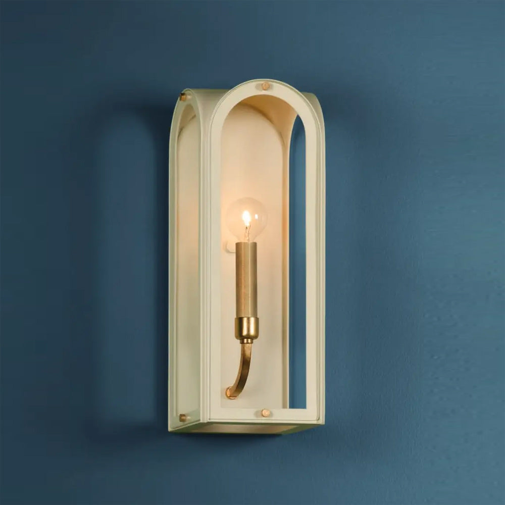 Traditional lantern aesthetics translate to a fresh new look in interior lighting as the Lincroft Wall Light from Hudson Valley Lighting plays it safe with just enough glam to make a statement. Soft sand finish metal cage framing showcases a chic candelabra light fashioned of rich vintage gold leaf metal. This wall light becomes a focal point in any hallway or living area.