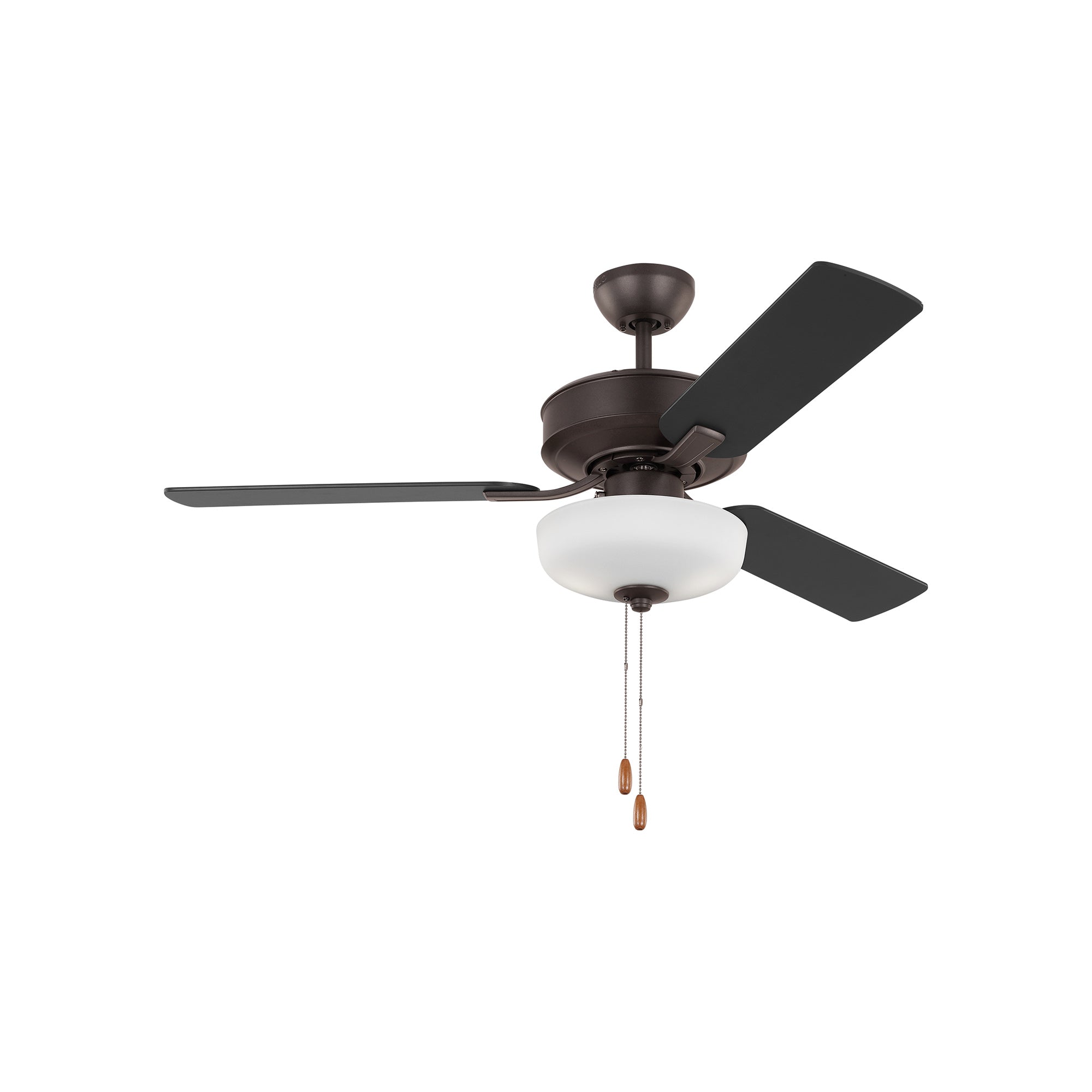 Tap into classic vintage style with the Linden LED Ceiling Fan from Generation Lighting and add dimension as well as comfortable air circulation to living rooms and bedrooms. Metal housing and a dome canopy is artfully shaped, with a sleek white glass bowl shade and three-speed reversible motor activated with an iconic pull-chain design.