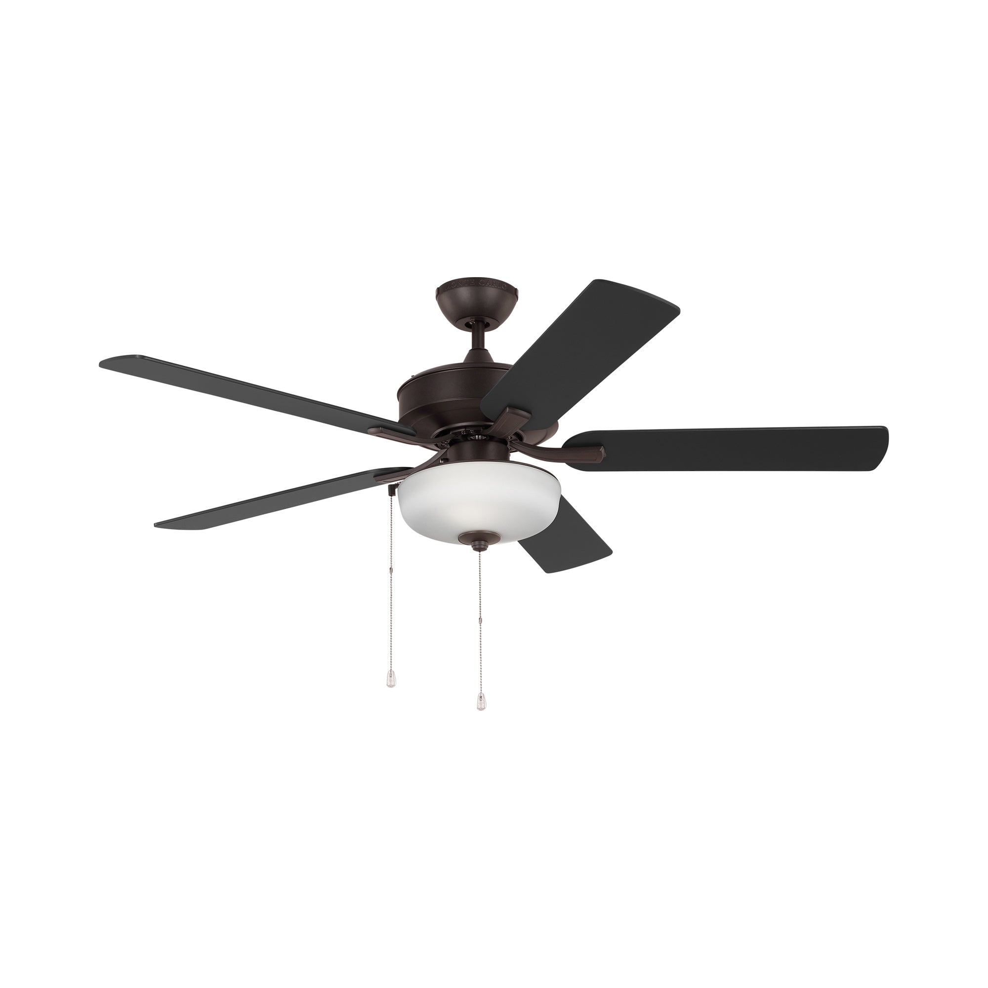 Repurpose a charming modern vintage vibe with the Linden Outdoor LED Ceiling Fan from Generation Lighting. Classic features turn stylish with intricate elements forming on metal housing, with a dome canopy and energy-efficient light kit including a white glass shade. Activate forward and reverse blade motion with a pull-chain mechanism.