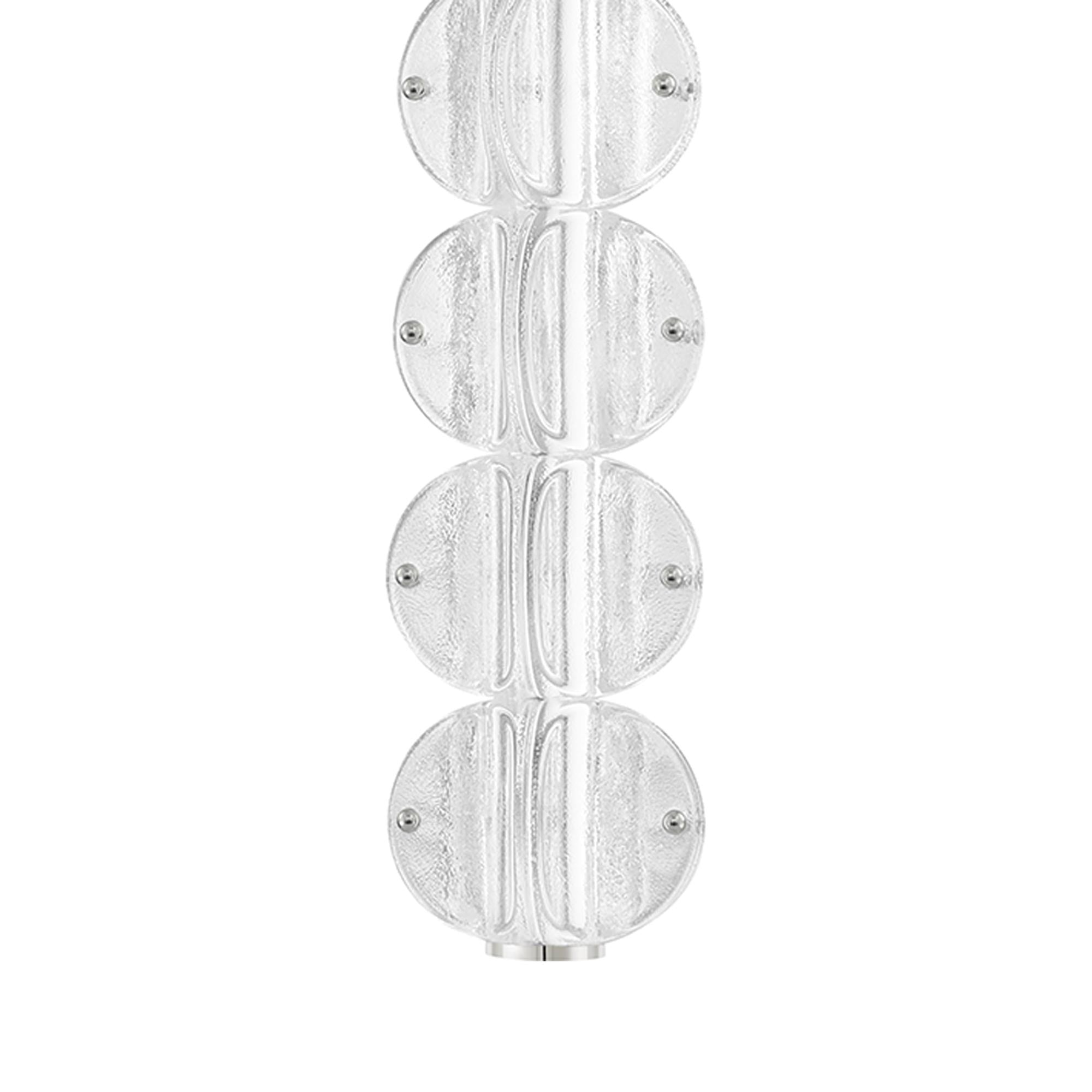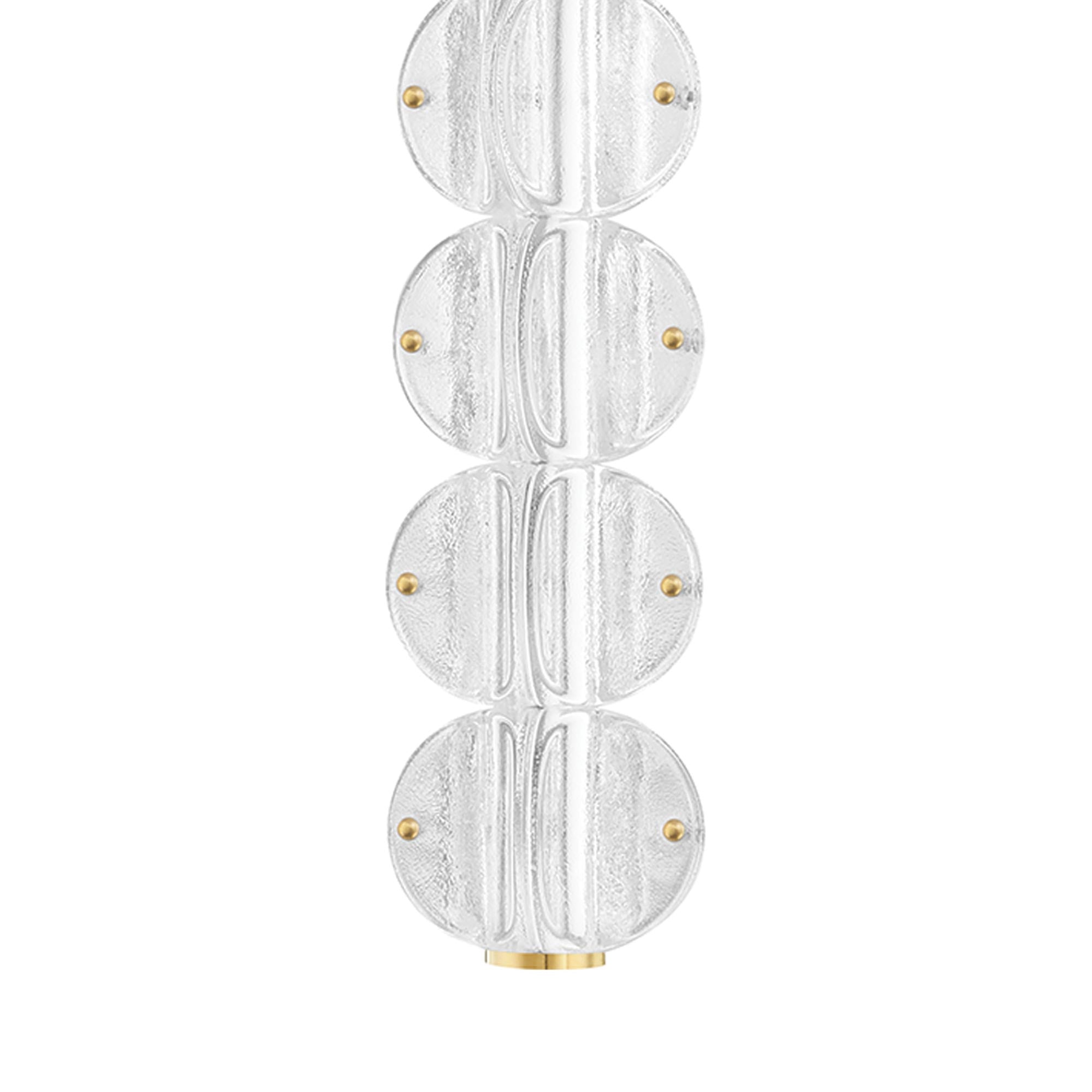 The Lindley LED Pendant Light from Hudson Valley Lighting delivers soft, energy-efficient illumination through etched glass pieces aligned delicately from a slender metal frame.
