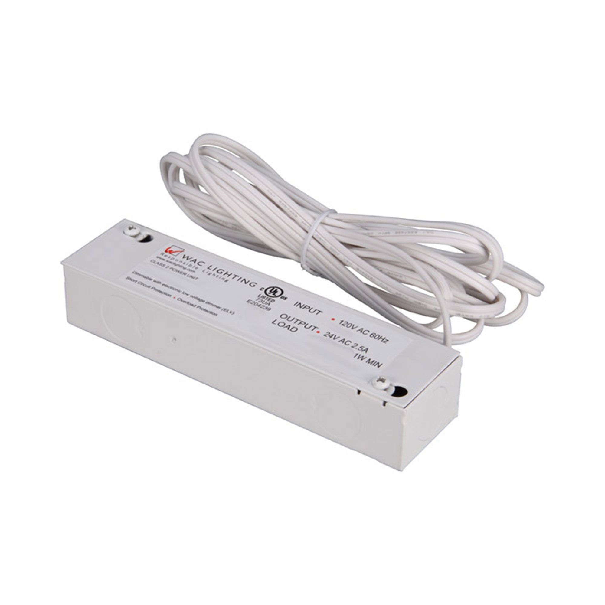 With built-in auto reset, soft start, and short and overload circuit features, the Line and Straight Edge 120V/24V Enclosed Remote Class 2 Transformer from WAC Lighting is an excellent choice. Purchase a separate electronic low-voltage dimmer to create variable lighting levels.