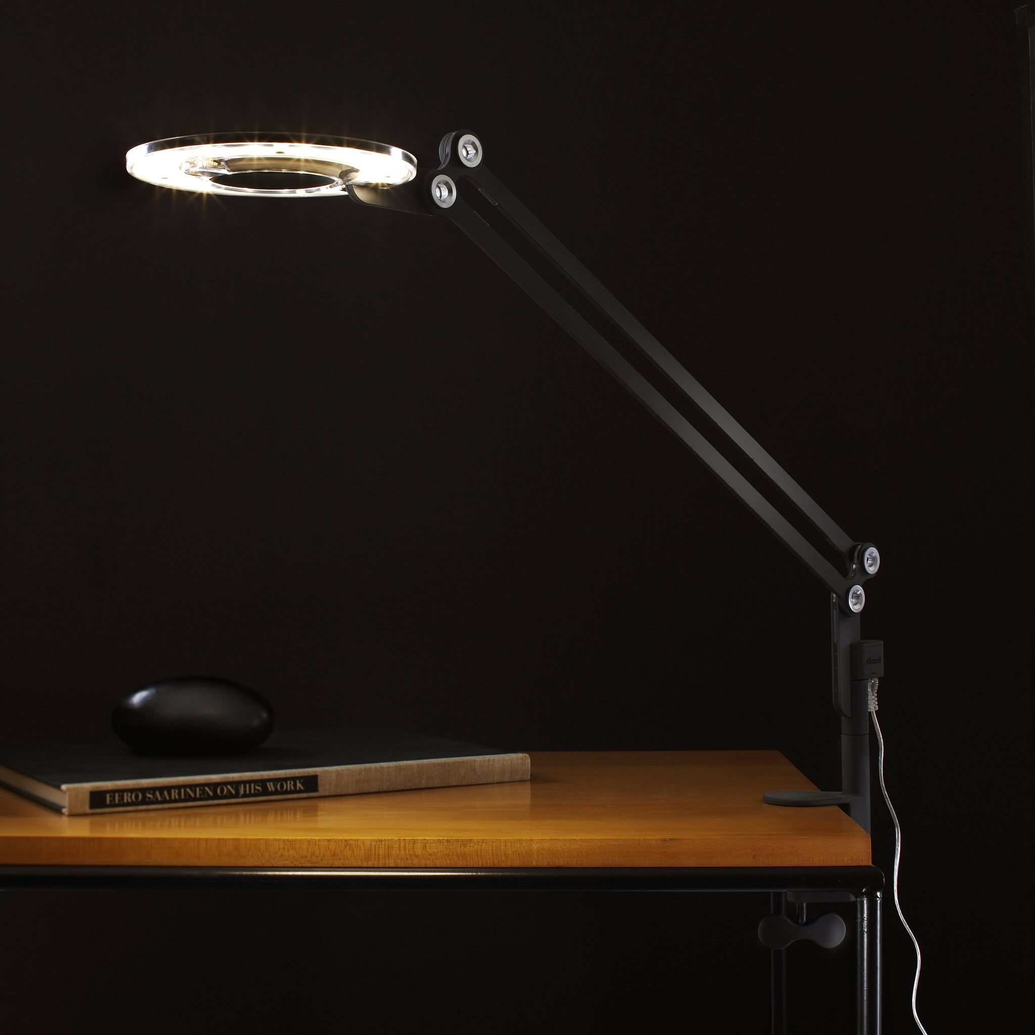 A stunning blend of industrial and modern styles navigate a new aesthetic in the Link LED Lamp from Pablo. Task lighting becomes integral décor with an LED lamp offering energy-efficient lighting in a disc-shaped module. Adjustable positions work in your favor with a steel frame and either a fixed base or a clamp assembly that attaches to a table or desktop edge.