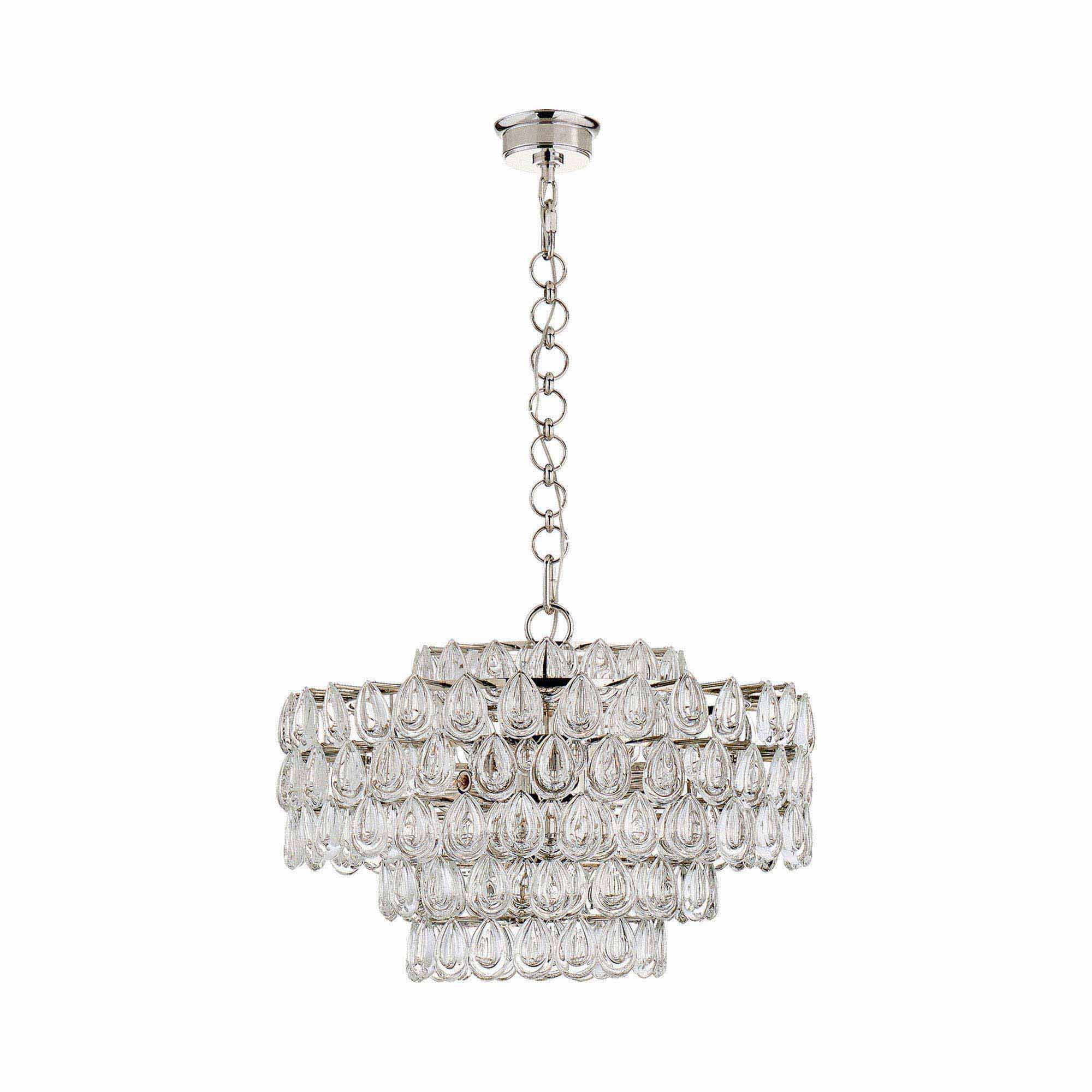 Each teardrop crystal perfectly captures the character of the Liscia Chandelier from Visual Comfort Signature. This piece is positioned to complement spiraling staircases and stylish entryways.