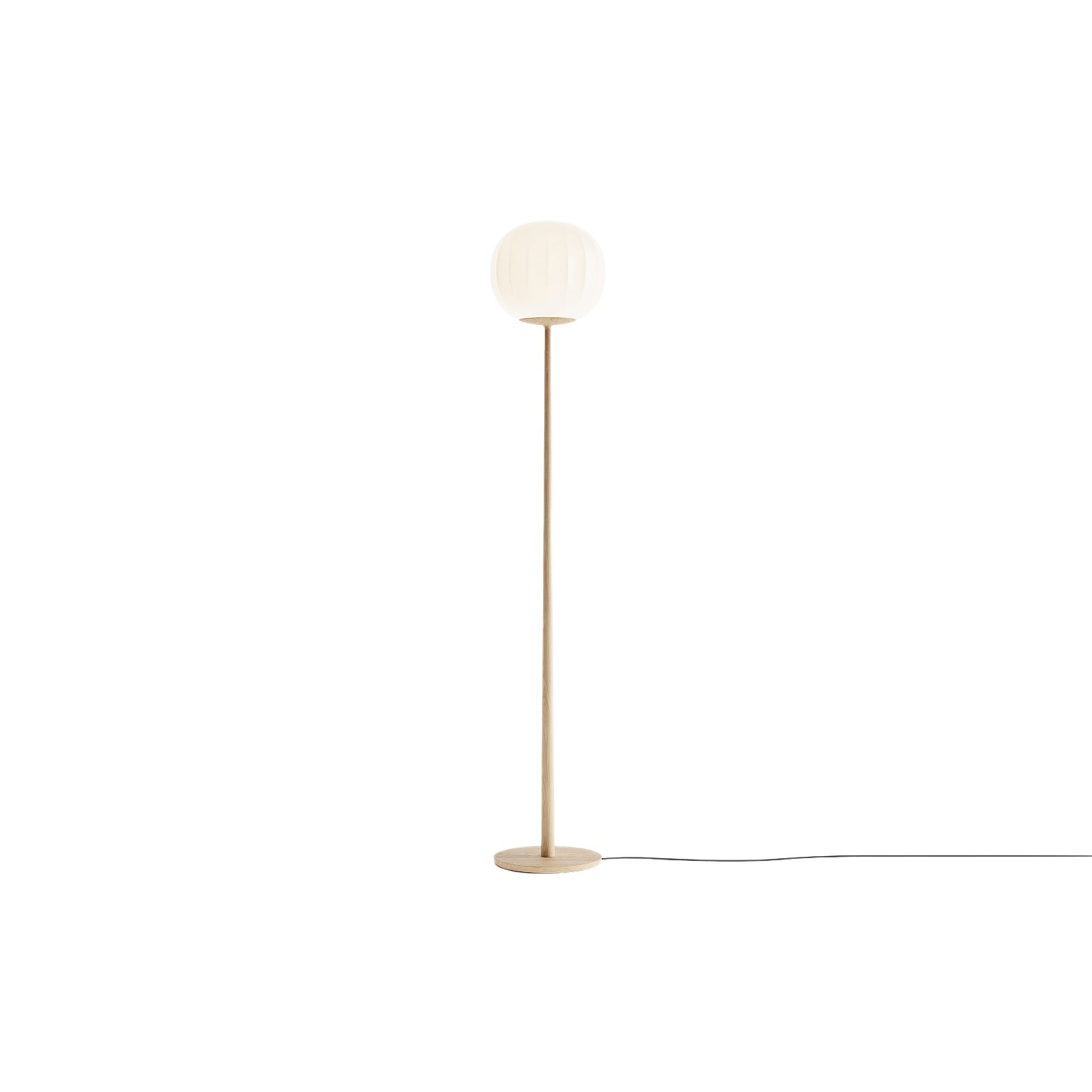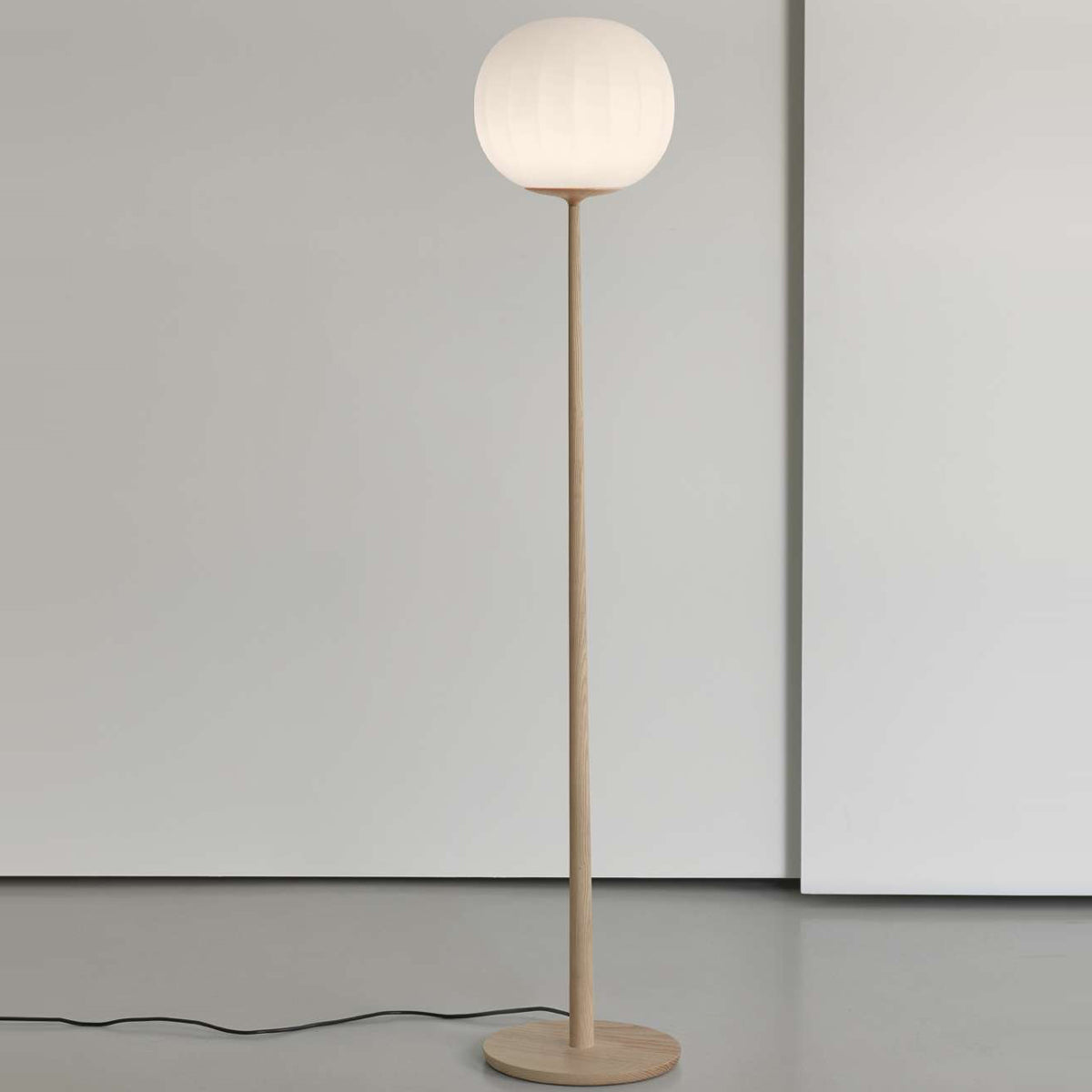 Add a bevy of festivity in lighting with a floor lamp blending old and new design aesthetics and materials. The Lita Floor Lamp from Luceplan repurposes conventional lamp design with a decadent opaline blown glass diffuser that mimics a floating balloon with textural details, perched over a subtly tapered stem maintaining style simplicity.