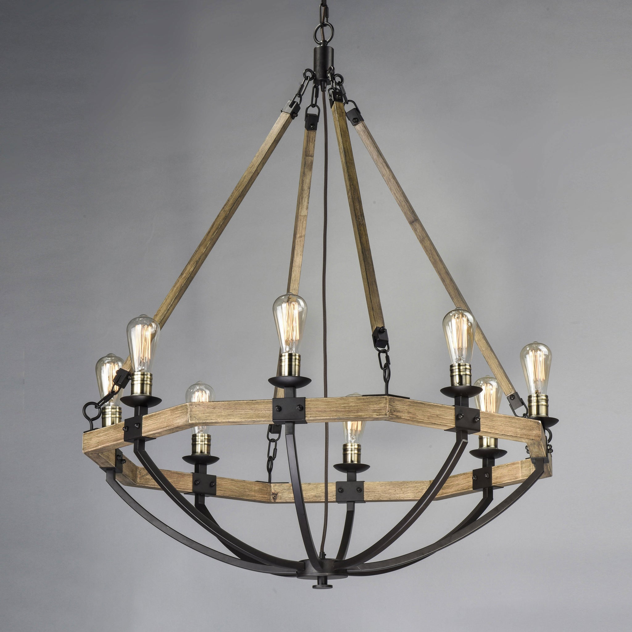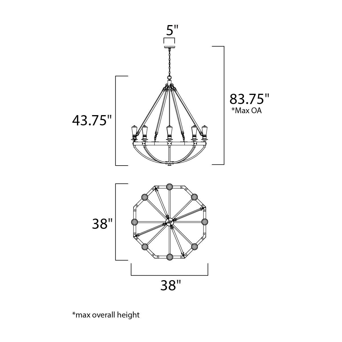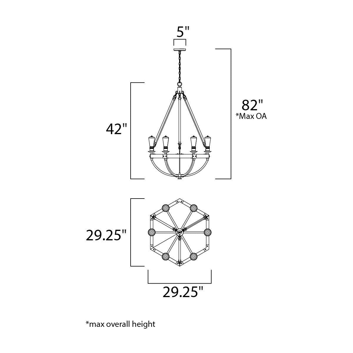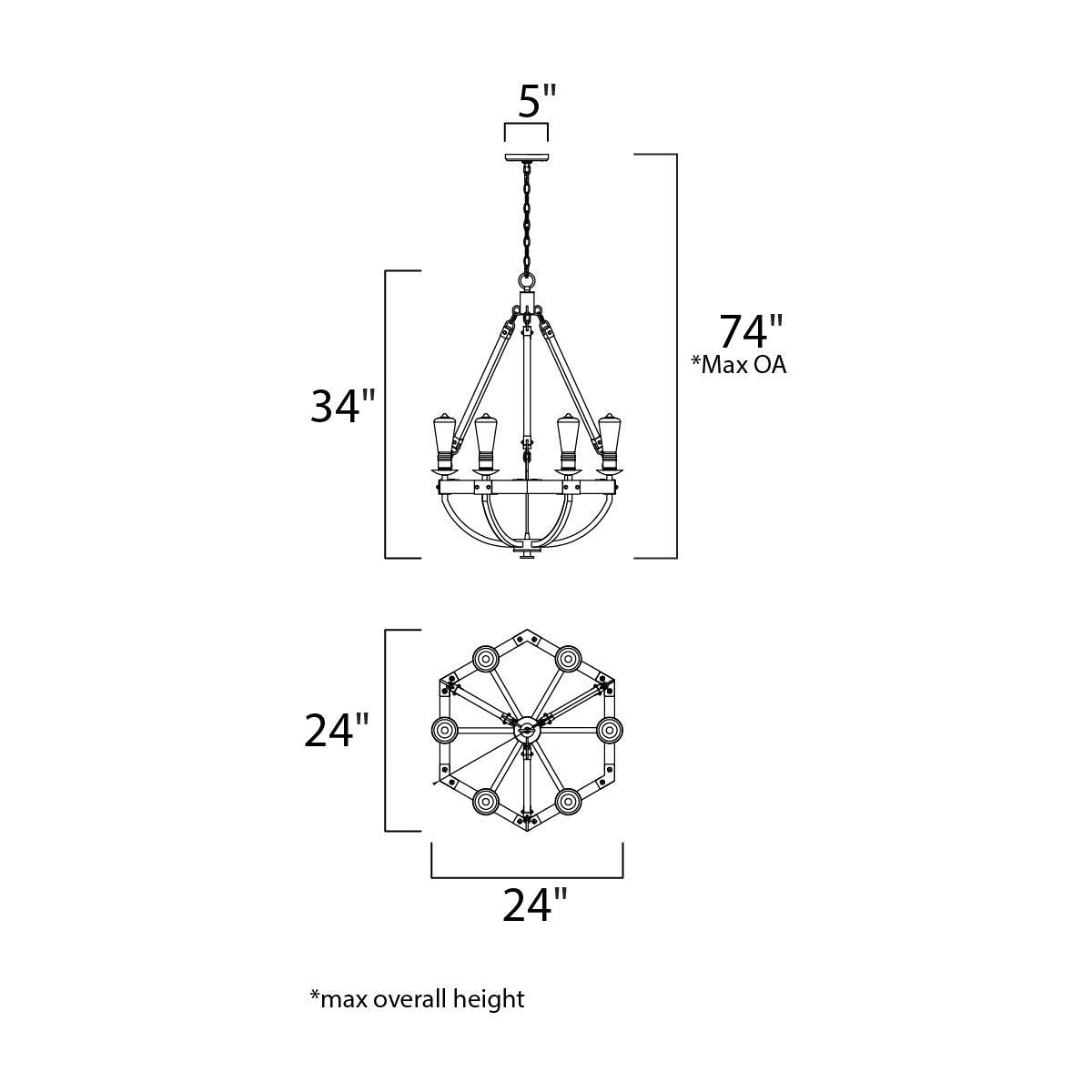 Rustic with weathered accents and finishes, the Lodge Chandelier from Maxim Lighting makes a charming addition to modern farmhouse and traditional dining rooms and foyer spaces.