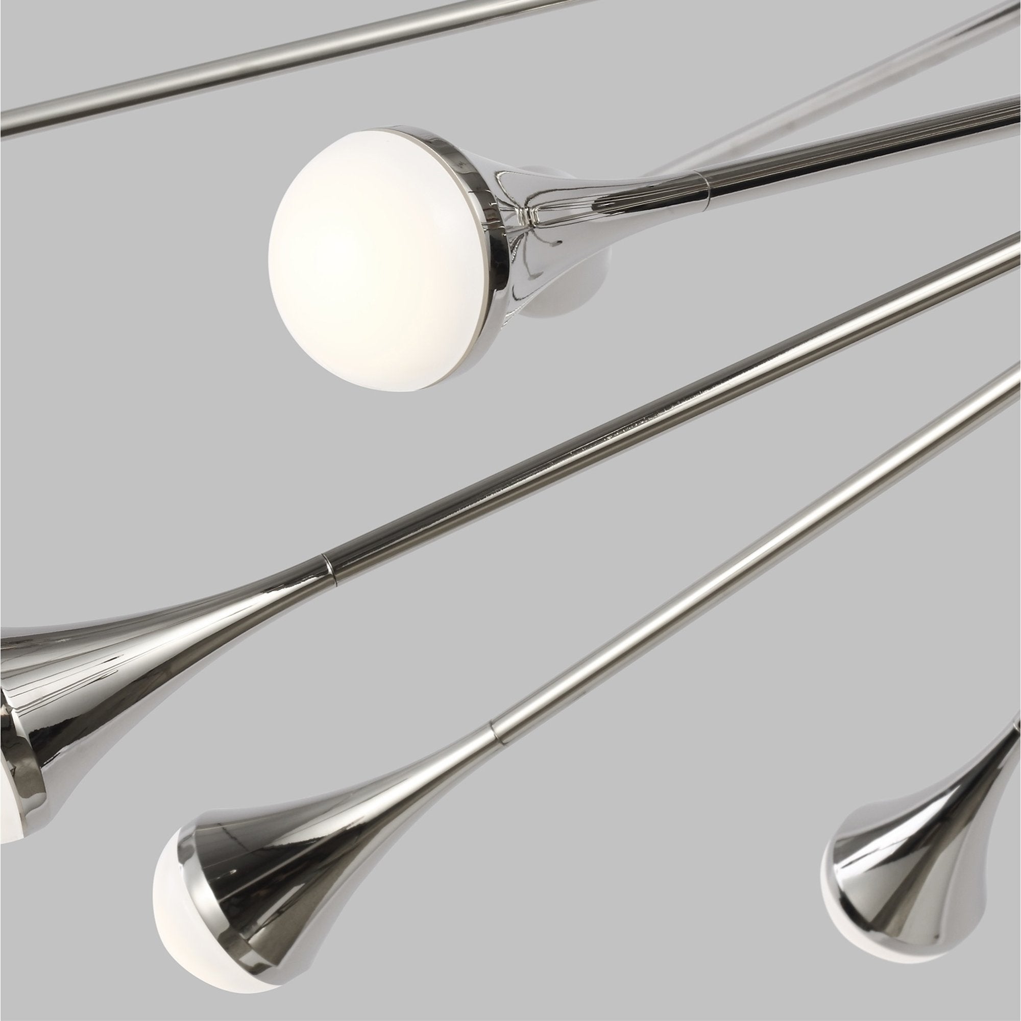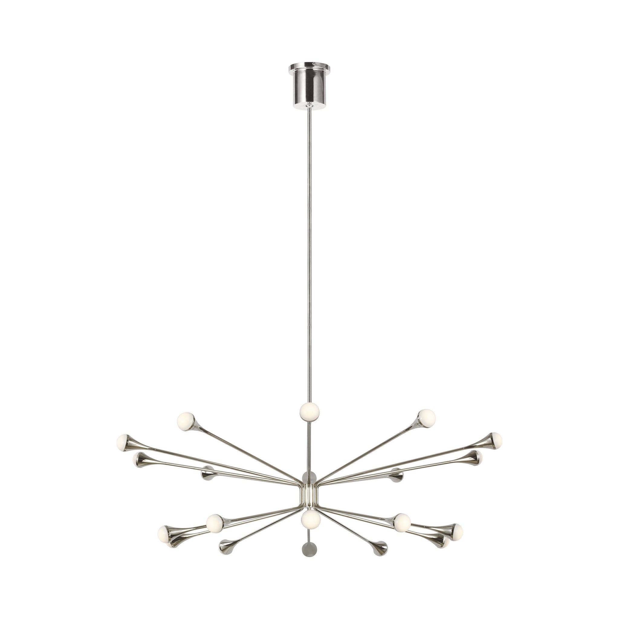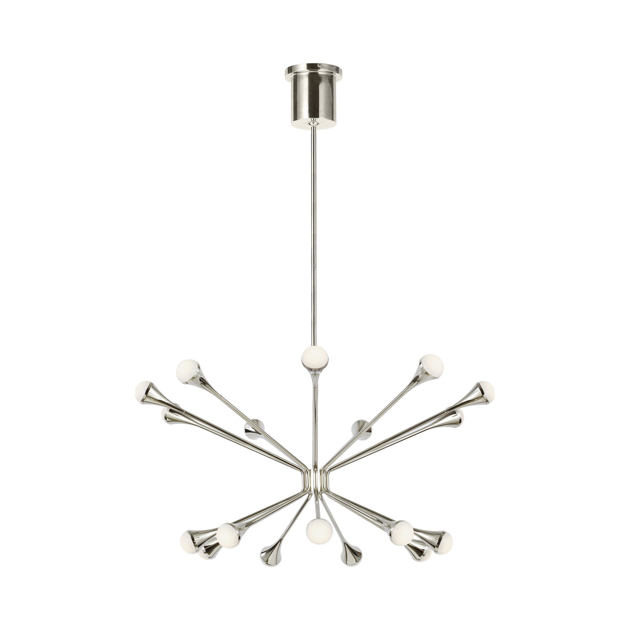 This Mid-Century Modern-inspired family, Lody by Sean Lavin for Visual Comfort Modern, recreates a retro look with contemporary appeal. The Lody LED Chandelier features 18 orbed diffusers mounted to the ends of flared arms to create two rings of up and down LED illumination. Offered in three clean finishes, aged brass, matte black and polished nickel, Lody provides a modern lighting statement for living rooms, dining rooms, foyers along with commercial and hospitality spaces. Complete the look with additional Lody chandelier options, and bath lights. Lamping options are compatible with most dimmers. Refer to the Dimming Chart for more information.