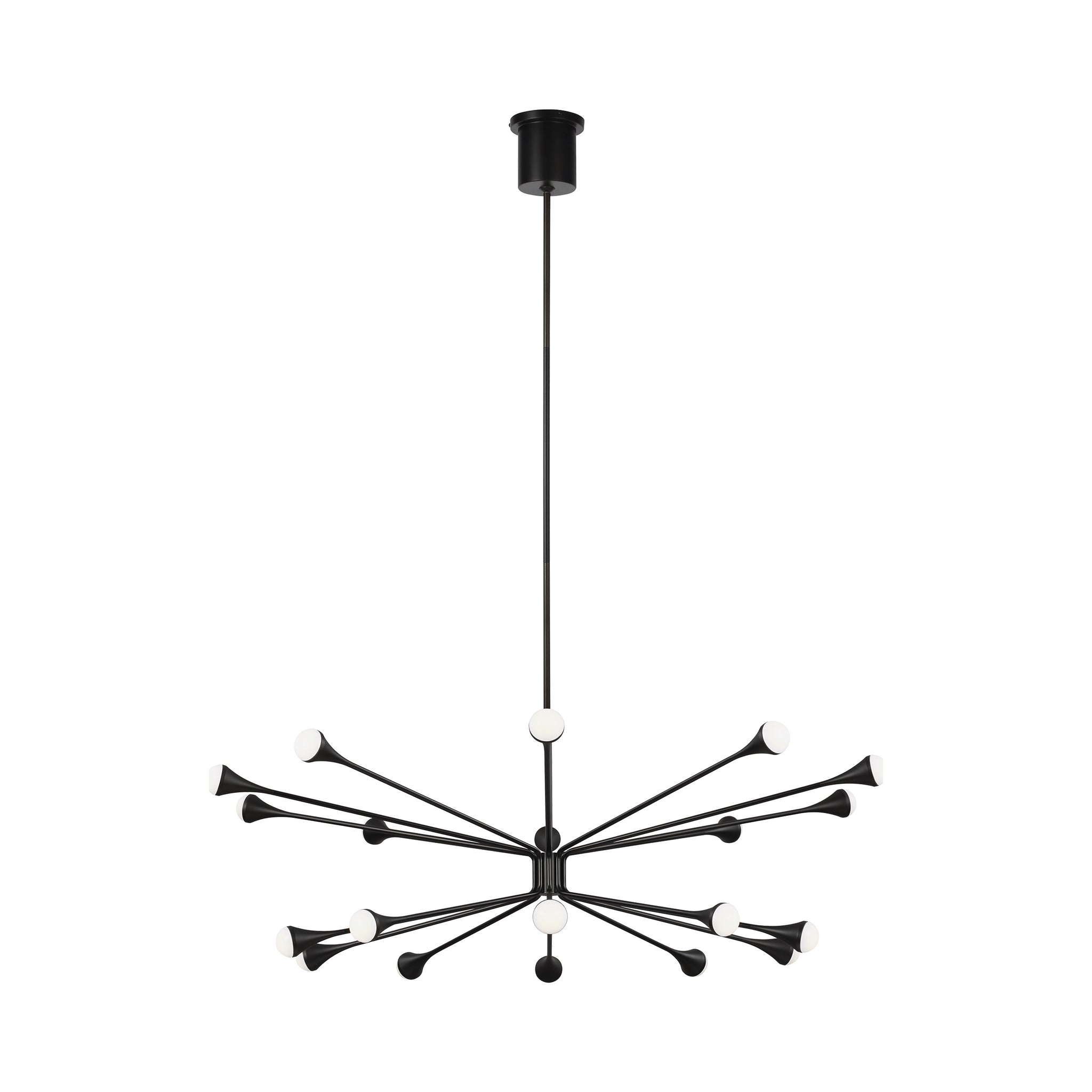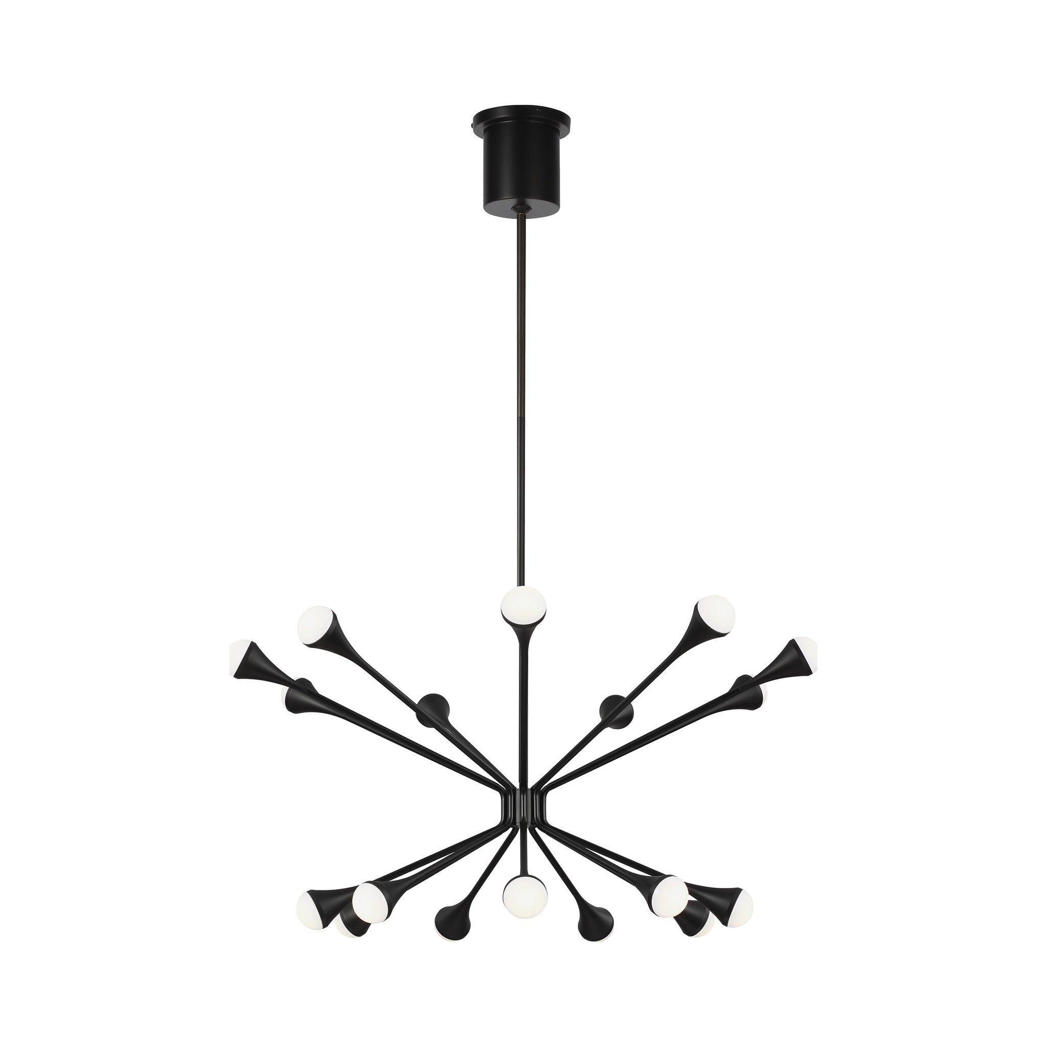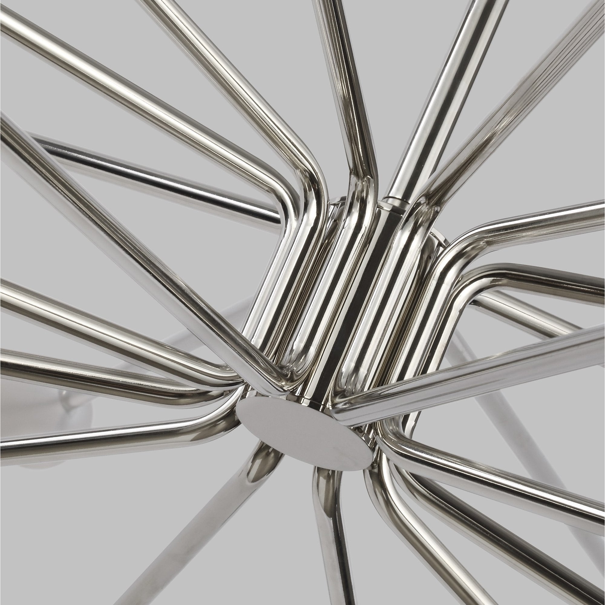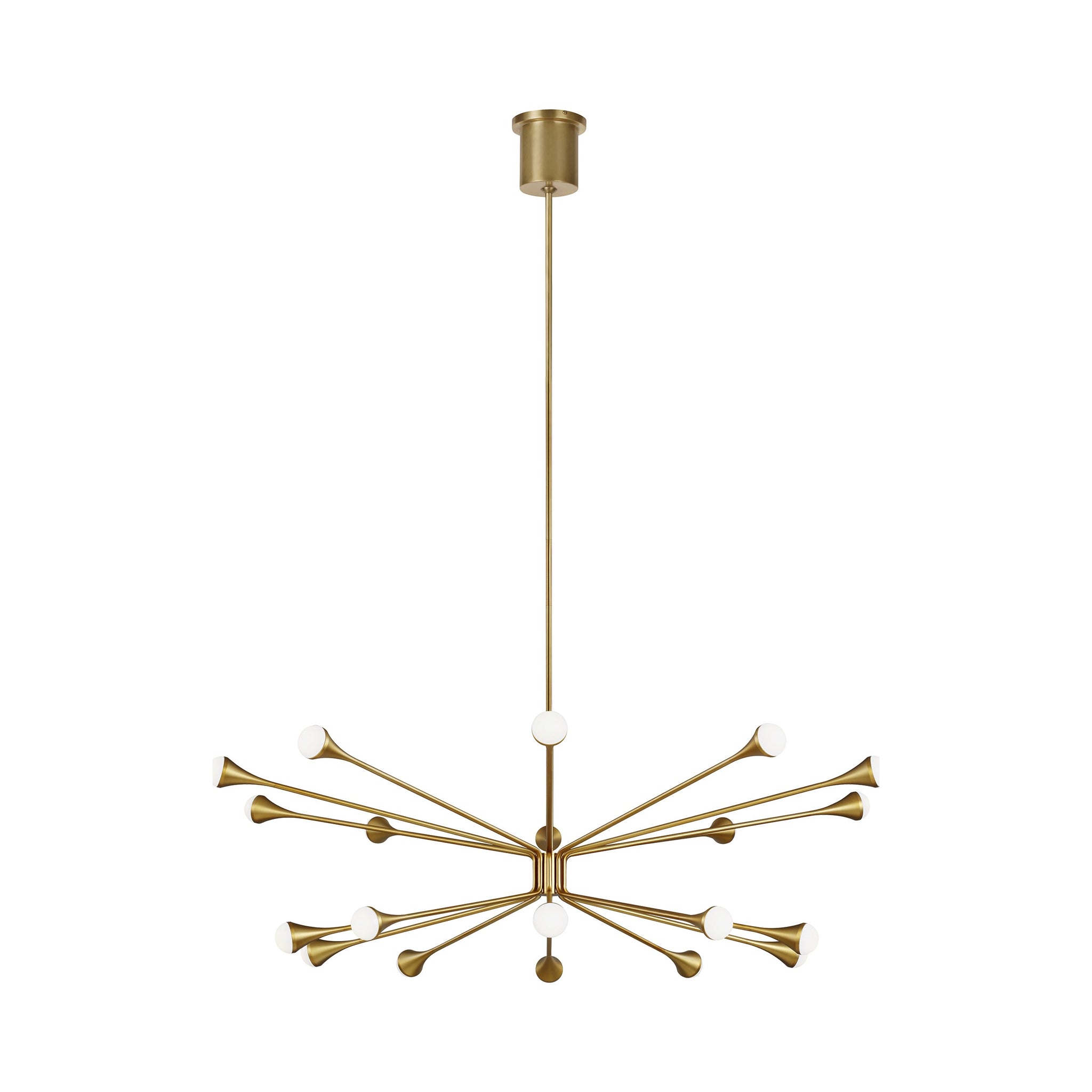This Mid-Century Modern-inspired family, Lody by Sean Lavin for Visual Comfort Modern, recreates a retro look with contemporary appeal. The Lody LED Chandelier features 18 orbed diffusers mounted to the ends of flared arms to create two rings of up and down LED illumination. Offered in three clean finishes, aged brass, matte black and polished nickel, Lody provides a modern lighting statement for living rooms, dining rooms, foyers along with commercial and hospitality spaces. Complete the look with additional Lody chandelier options, and bath lights. Lamping options are compatible with most dimmers. Refer to the Dimming Chart for more information.
