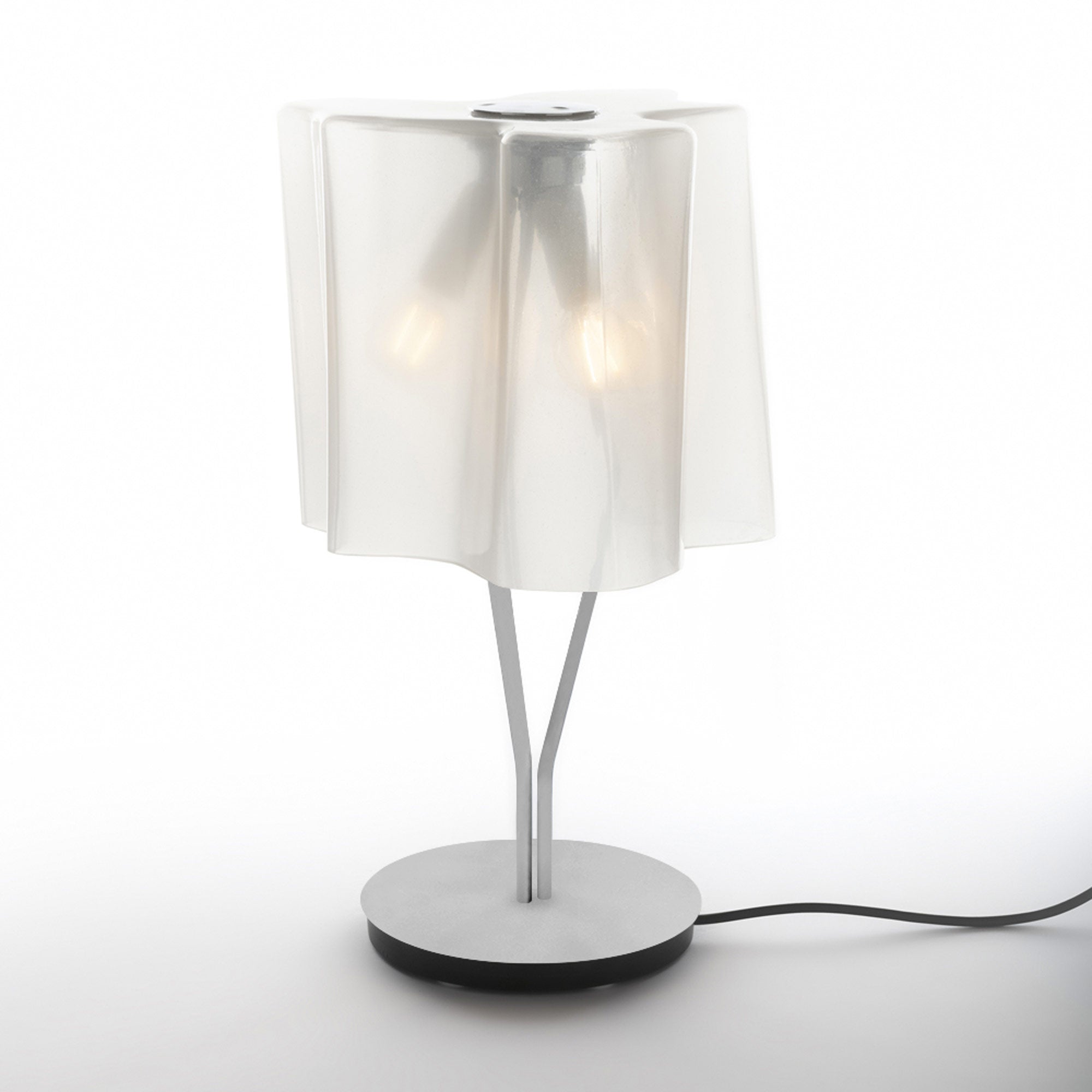 A forked-style stem adds elegant detail to the Logico Table Lamp from Artemide and its striking wavy glass shade.