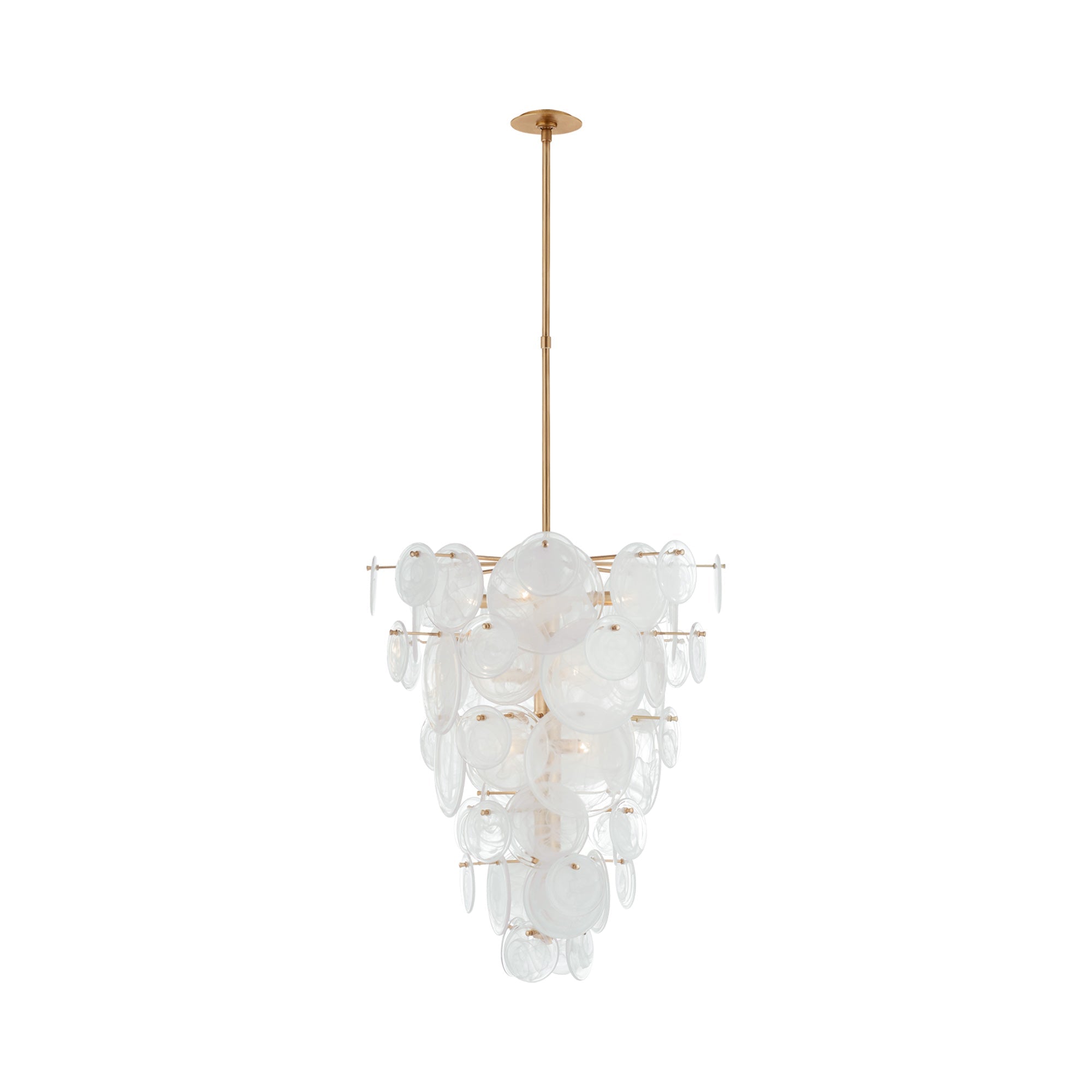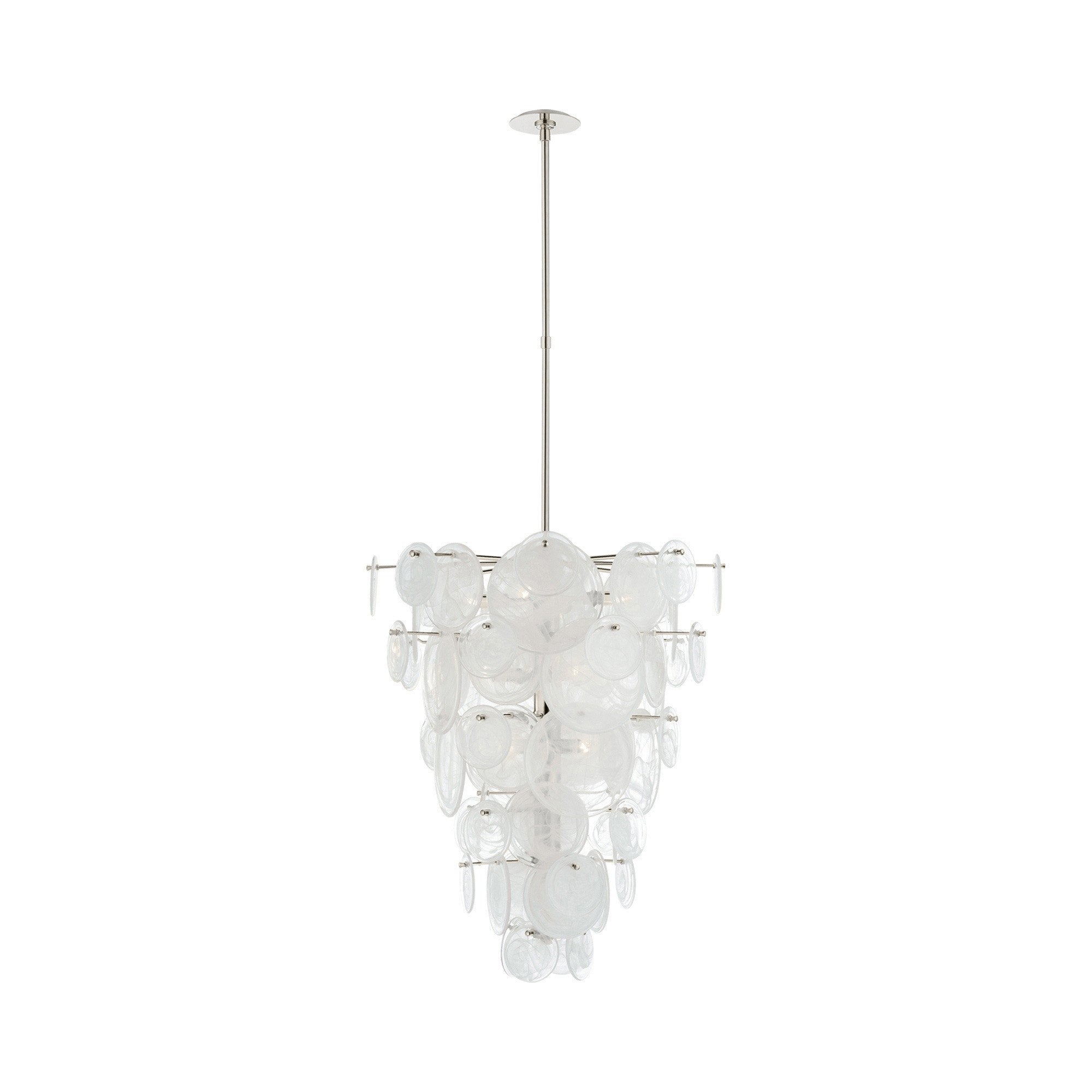 Delicately dangling shell-like accent create an organic elegance in your space. The Loire Cascading Chandelier from Visual Comfort Signature becomes an instant focal point in dining areas, entryways and more.