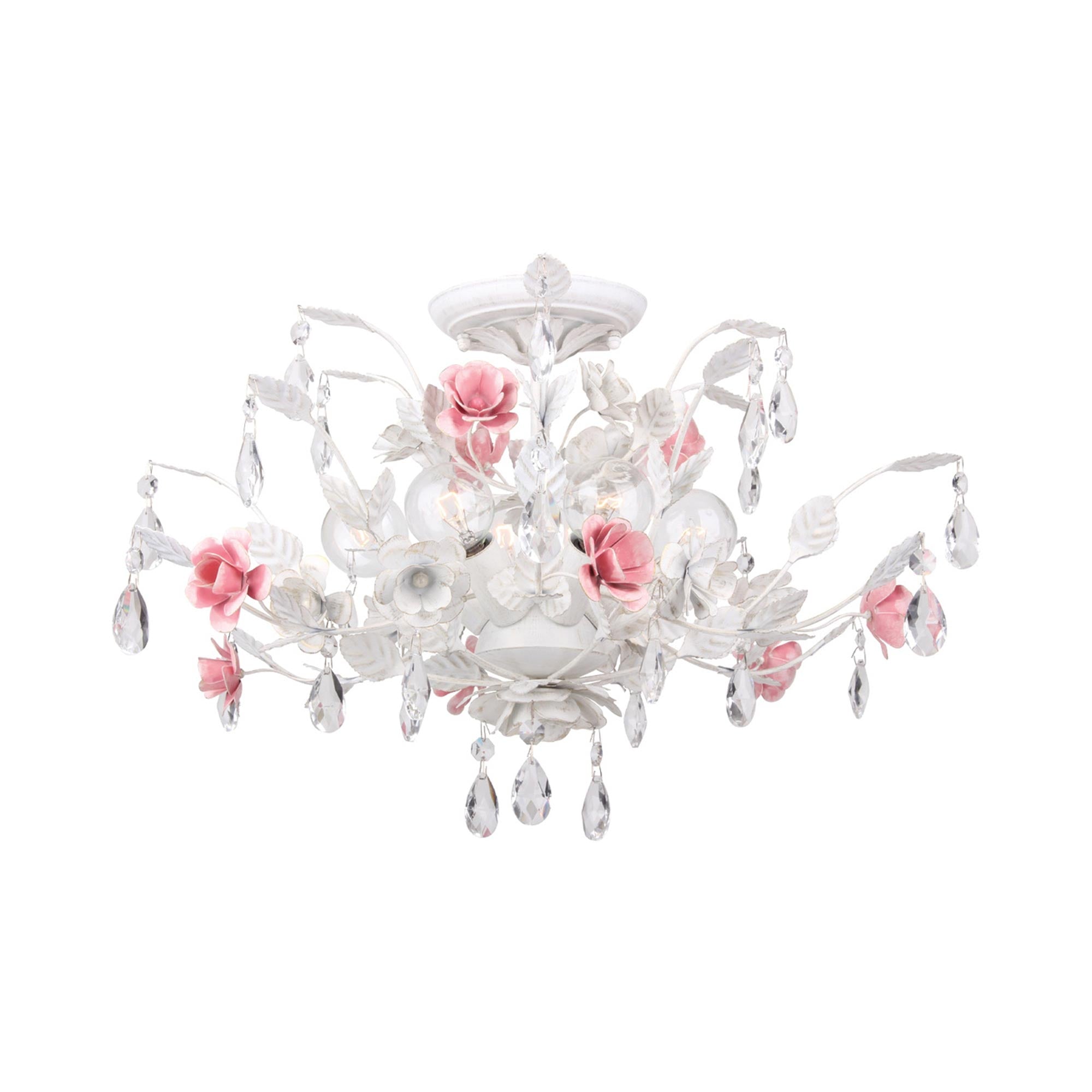 Embrace the alluring charm and natural beauty of flowers as you choose lighting to inspire and illuminate. Traditional kitchens, dining areas, and foyers spring to life with the Lola Semi Flush Mount Ceiling Light from Crystorama, an artisan fixture made especially for unapologetic vintage enthusiasts. Pink blossom accents appear to dress up a glam-inspired milky white finish metal frame, shapely and exquisite.
