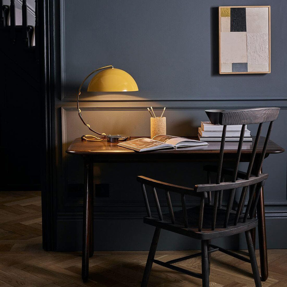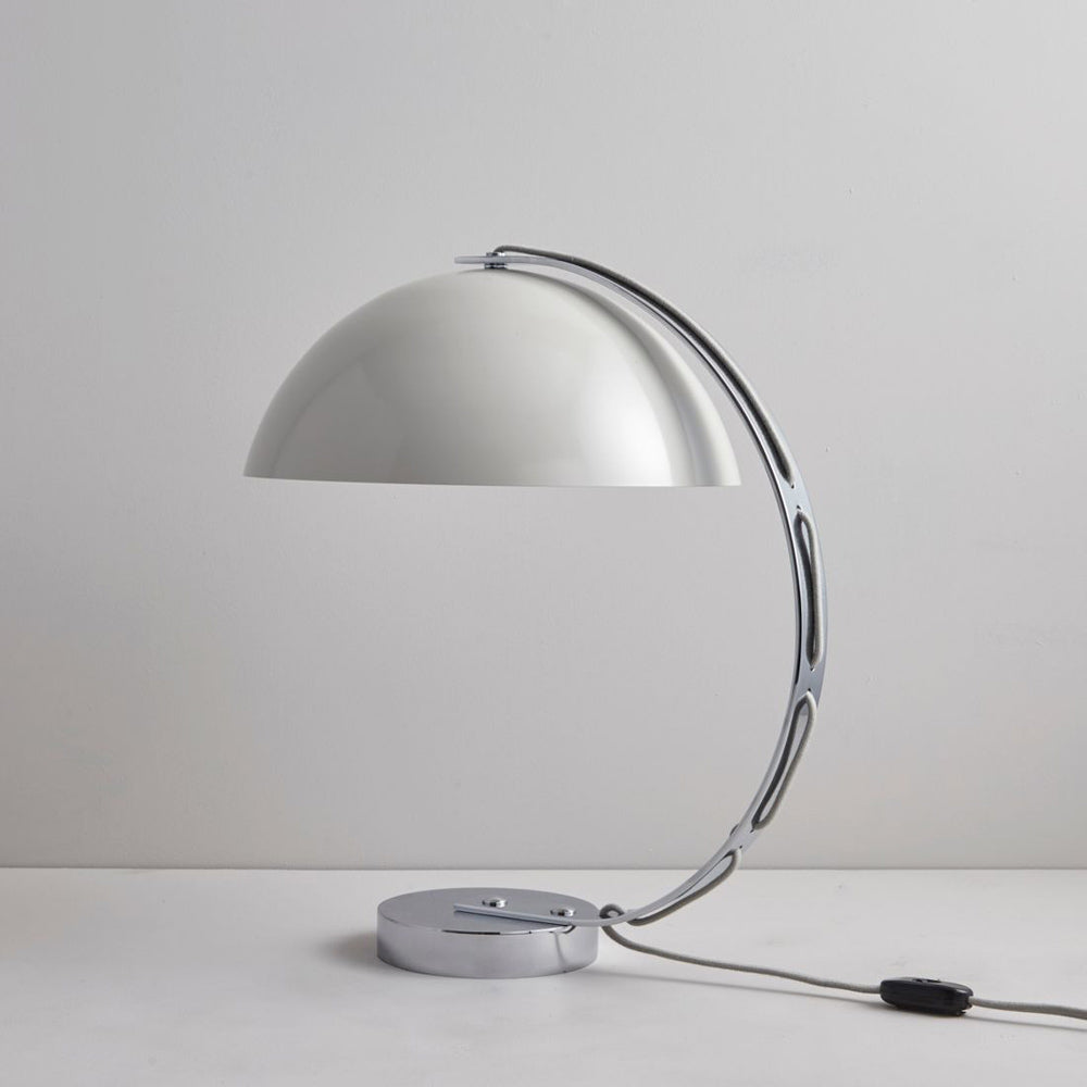 The London Table Lamp from Original BTC updates an iconic retro-inspired design as it glows with ambient illumination at a workspace or on a nightstand. Spun aluminum creates a semi-sphere shade topping an alluringly curved arm. Precise engineering and commitment to quality weaves in purposeful elements embellishing the lighting experience.