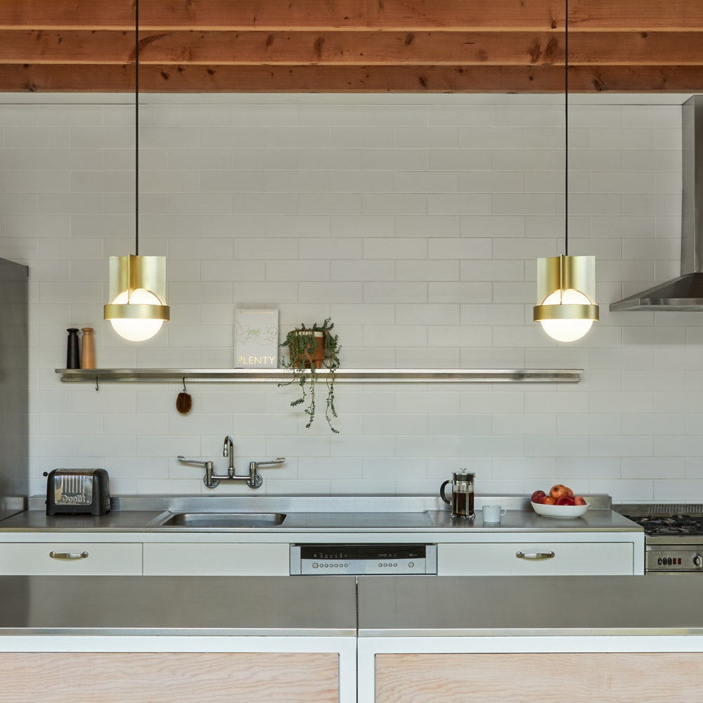 Graceful and refined, the modern Loop Pendant Light from Tala captures the imagination with organic curves and soft finishes. A matte white spherical bulb evokes the full moon, while its bold aluminum framework receives a clean, elegant finish, perfect for kitchens and living areas in your stylish home.