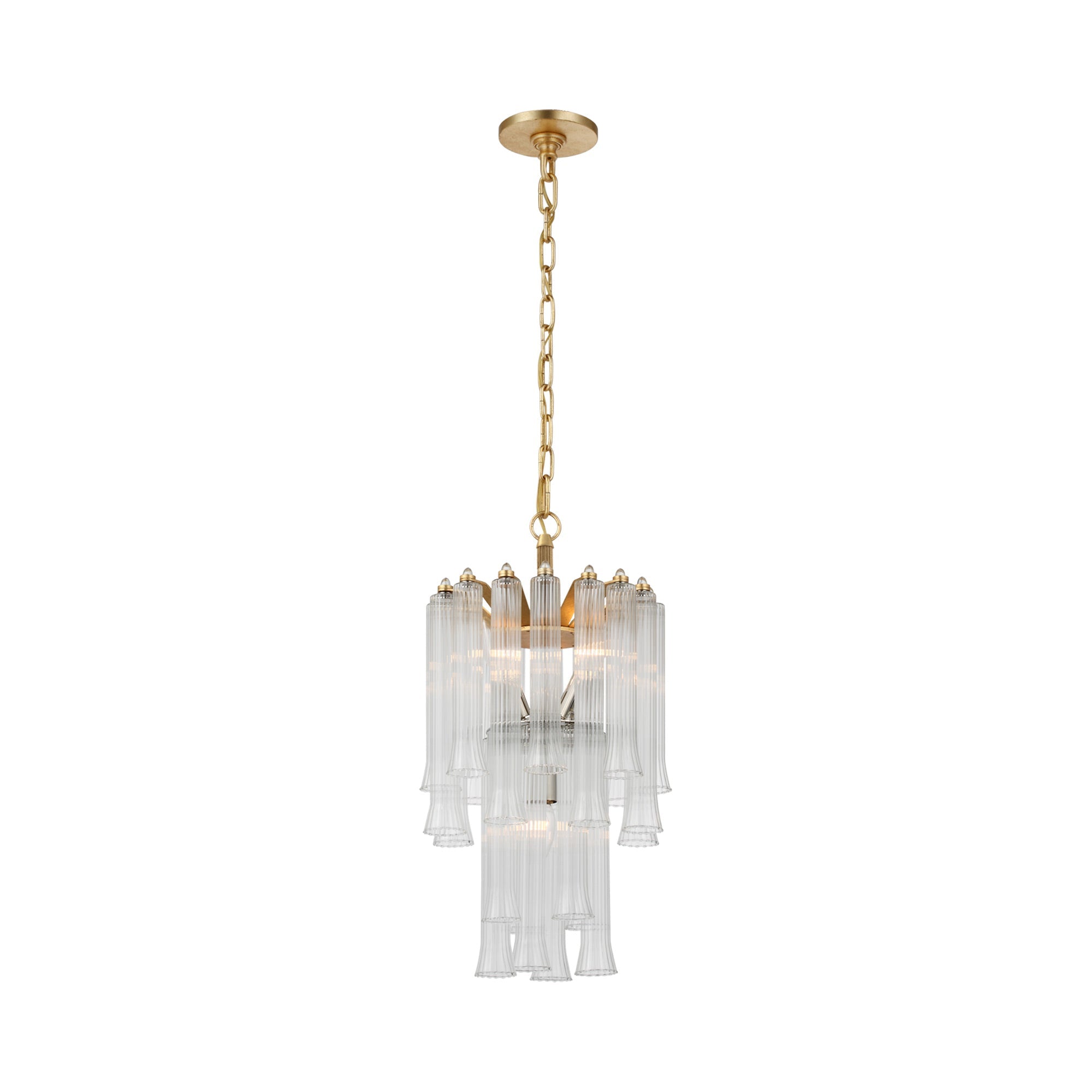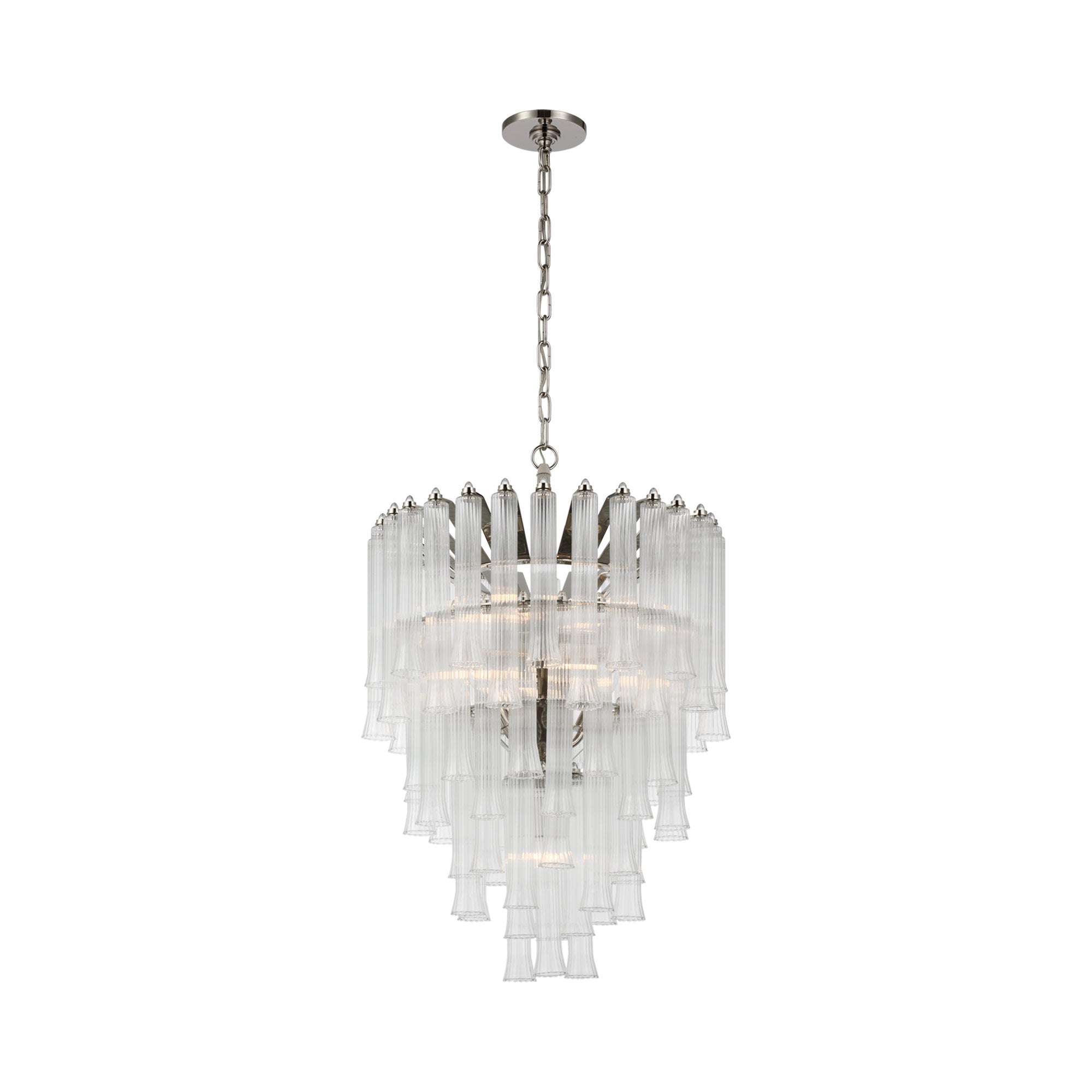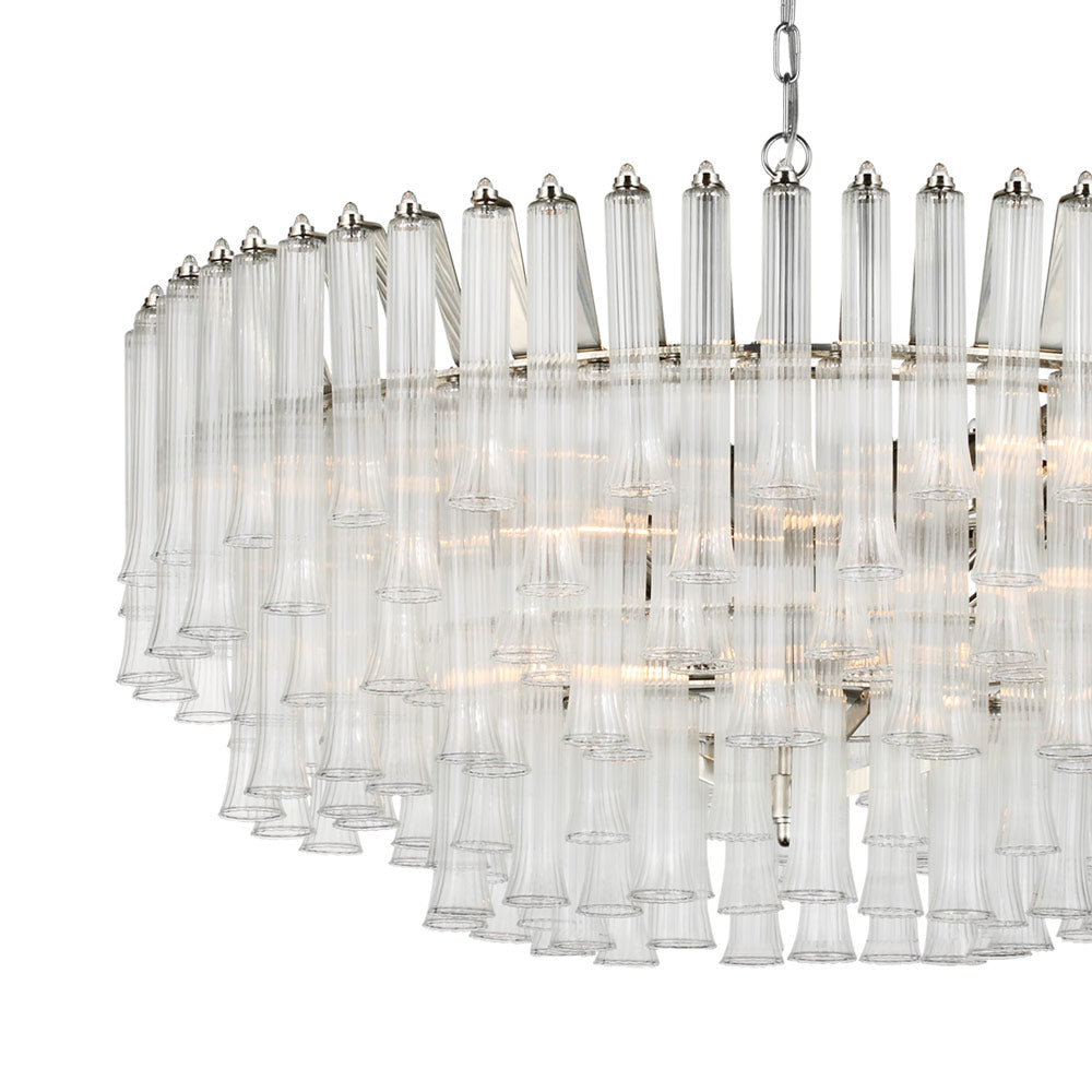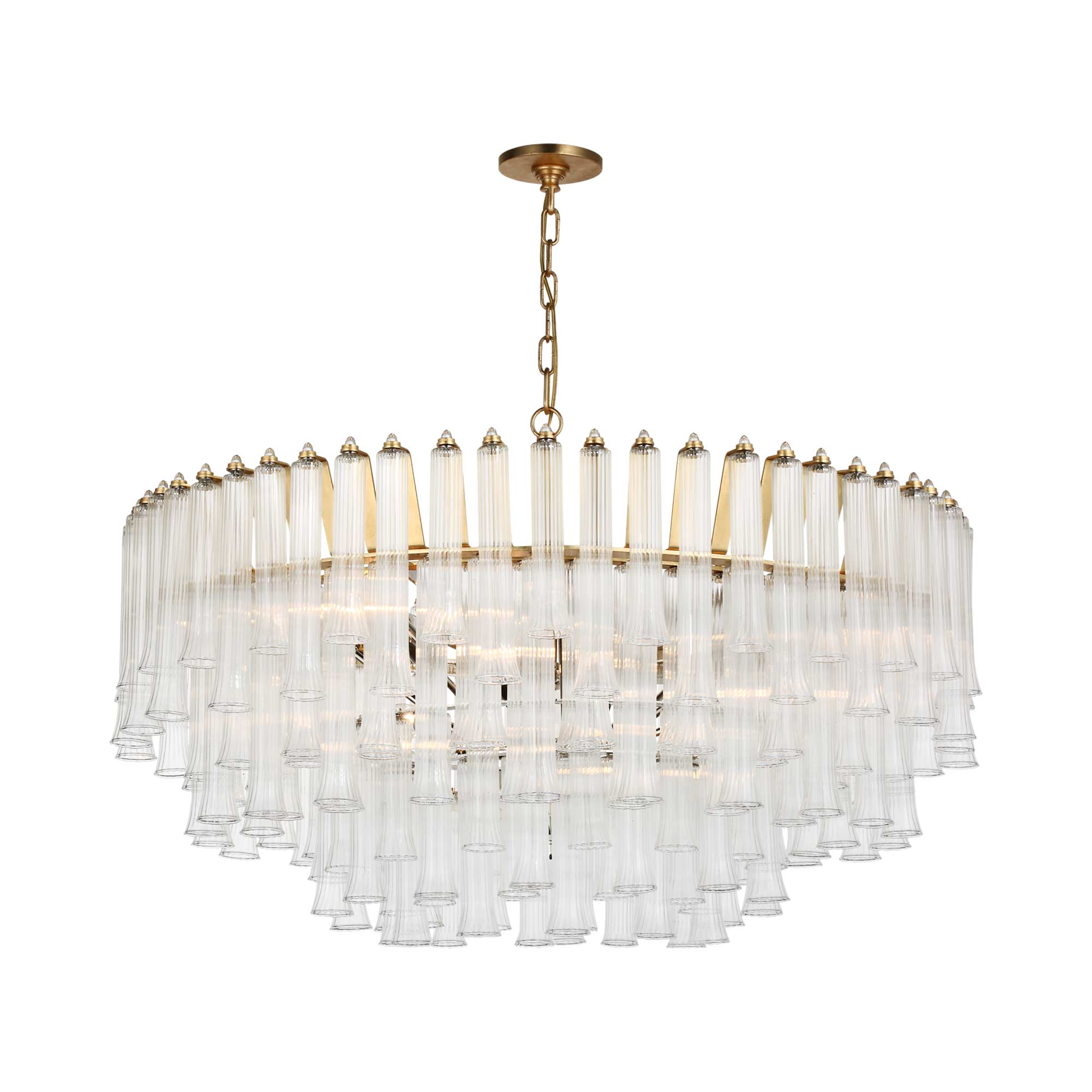 Glam influence drives an artistic design made of chic materials that form a stunning look perfect for a custom space. The Lorelei Chandelier from Visual Comfort Signature offers layers of decadent clear glass in fluted cylinders that deliver angelic beauty, as a metal frame and candelabra sockets turn on the glam effect when this unforgettable fixture is lit or unlit. Add fine art gallery inspiration to an upscale space.
