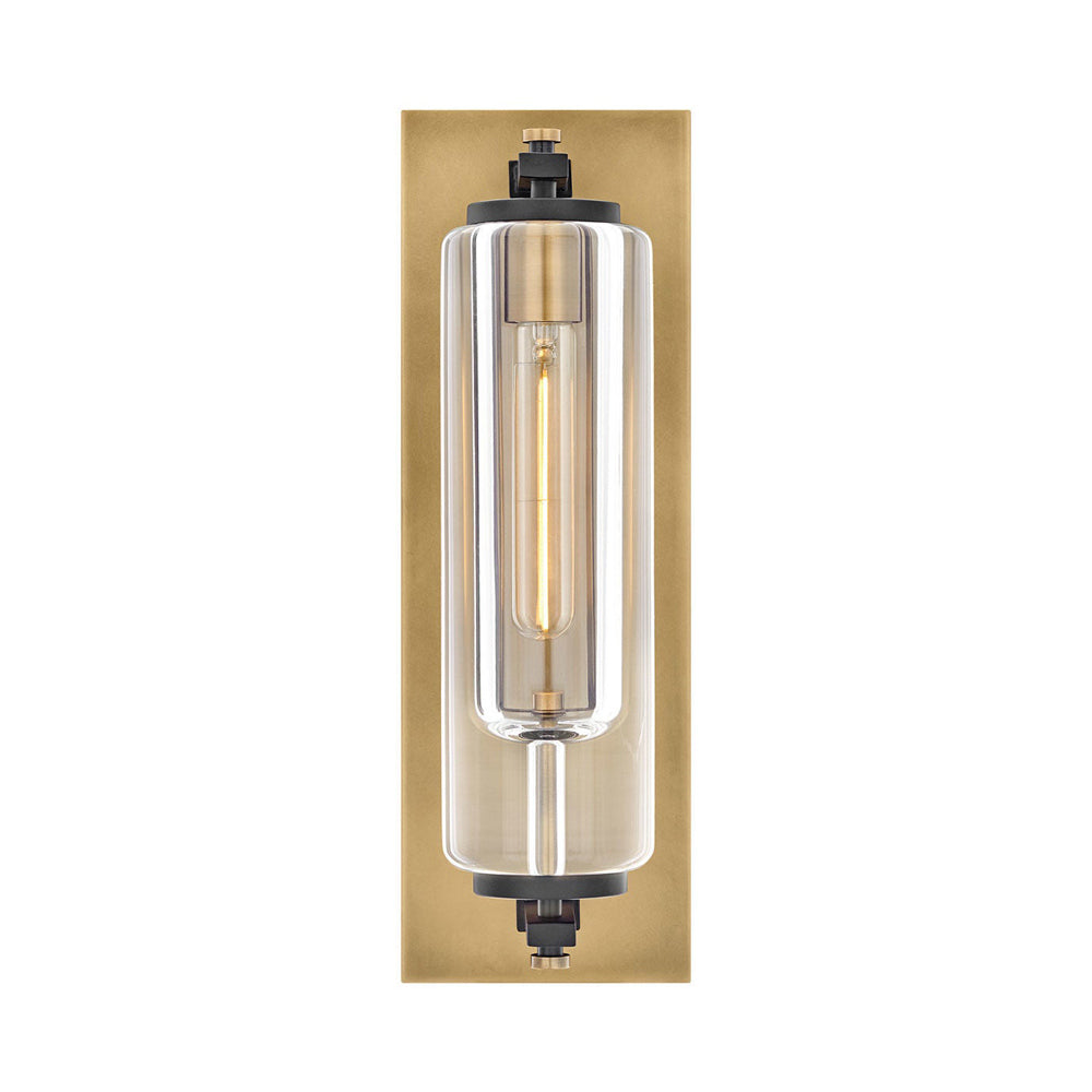 A commanding mix of art and industrial style creates a light fixture with no shortage of drama. The Lourde Outdoor Wall Light from Hinkley brings an unexpectedly decadent attitude with its chic layering of clear glass shades centered on metal framing. Make this exterior light a centerpiece on a custom wall or patio.