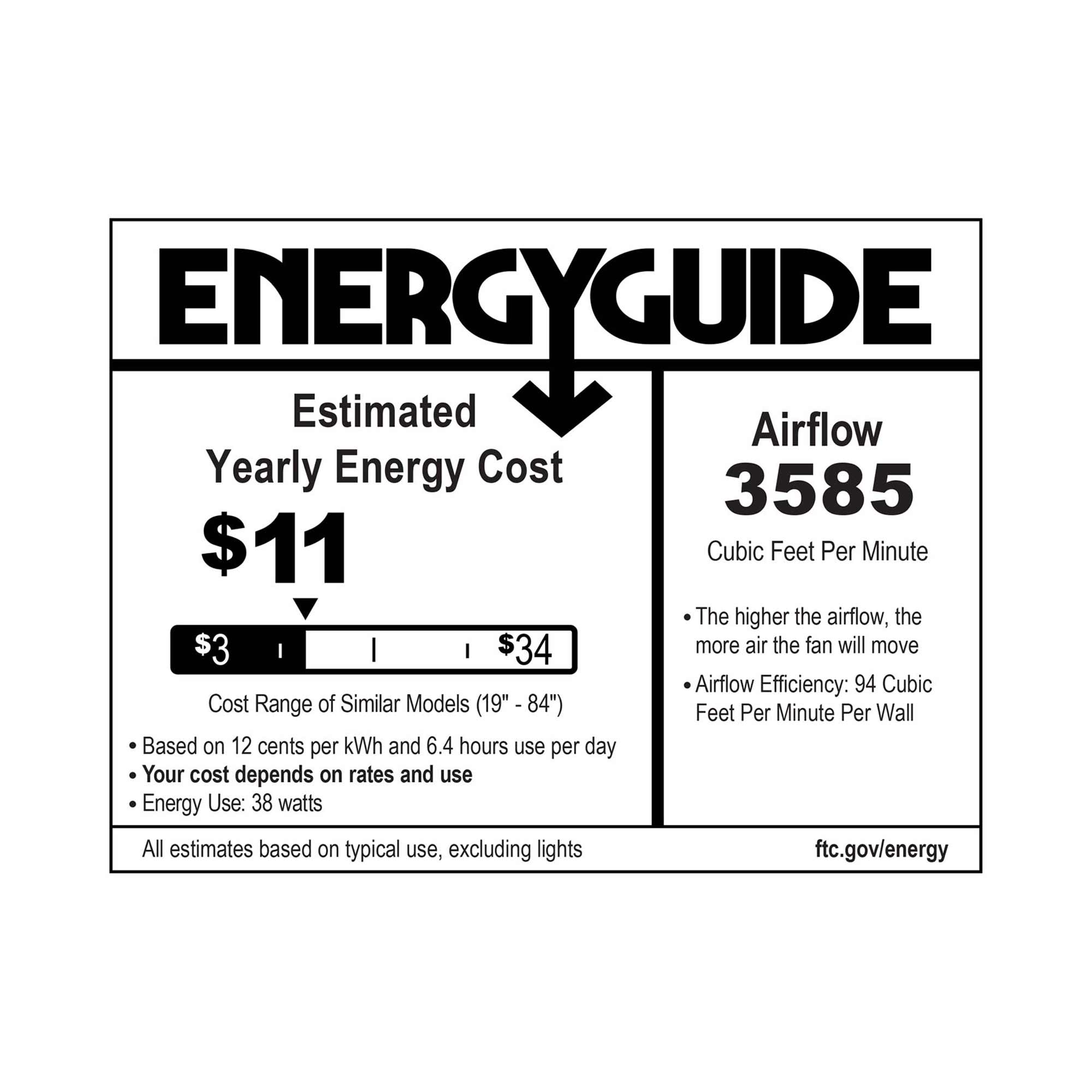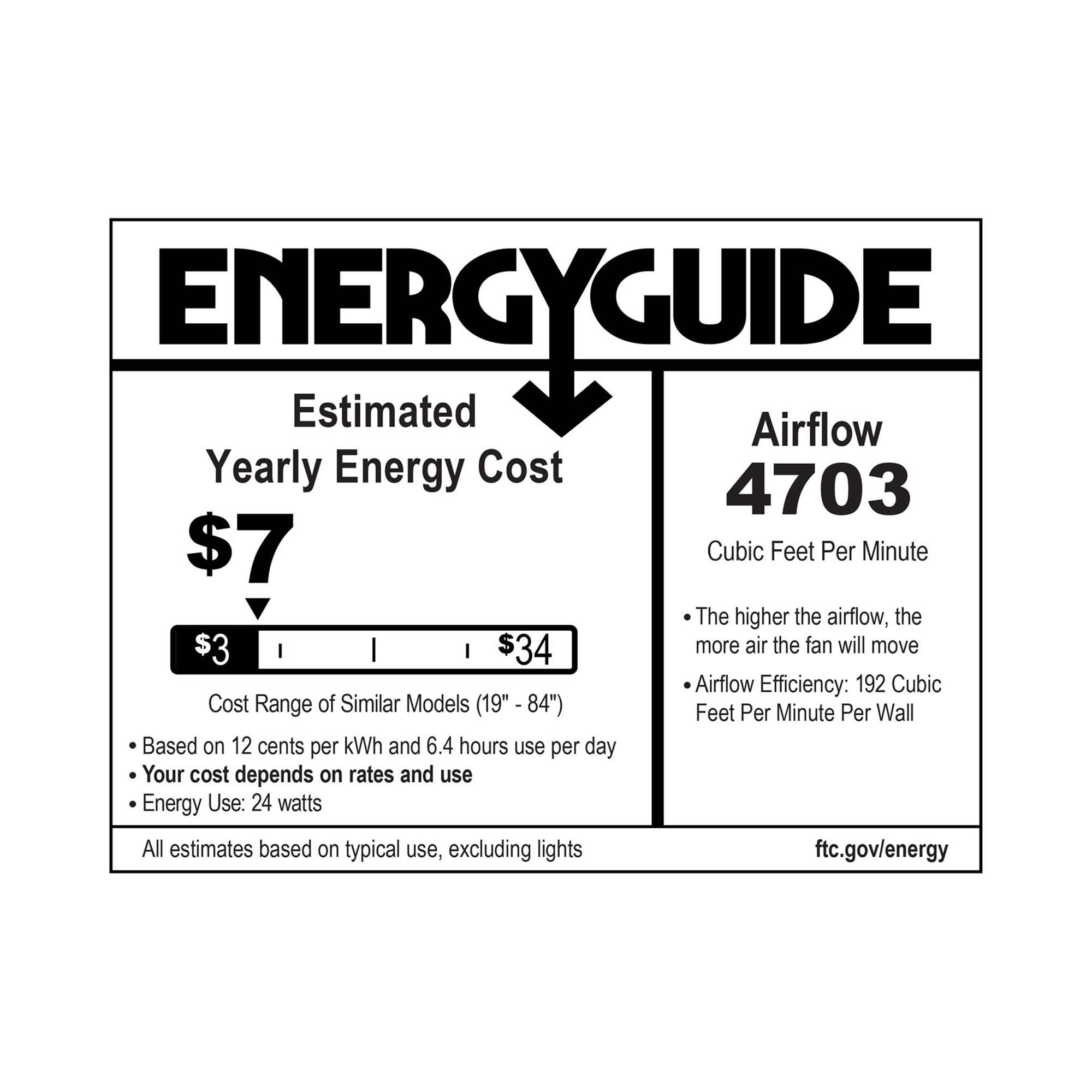 - Airflow Efficiency: 210 CFM/Watts (low) - 83 CFM/Watts (high)