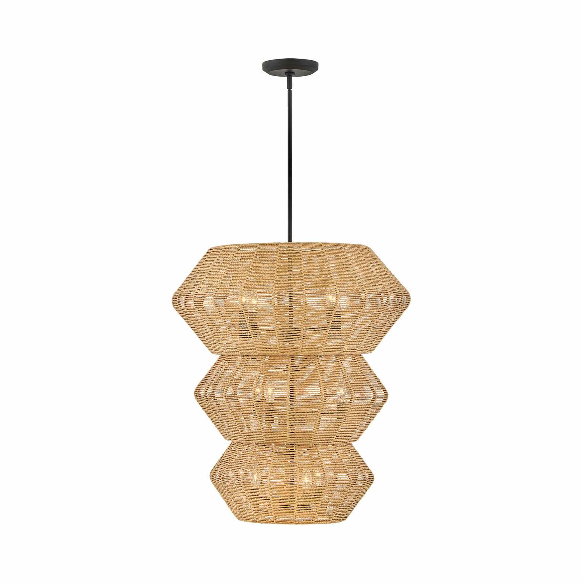 Ponder leaning exotic as you choose lighting for an energy-inspired interior setting. A hint of coastal fare and organic allure creates the Luca Chandelier from Hinkley, a cleverly tiered fixture featuring woven shades that allow ambient light to seep through. Steel construction and framing includes multiple down rods to customize positioning.
