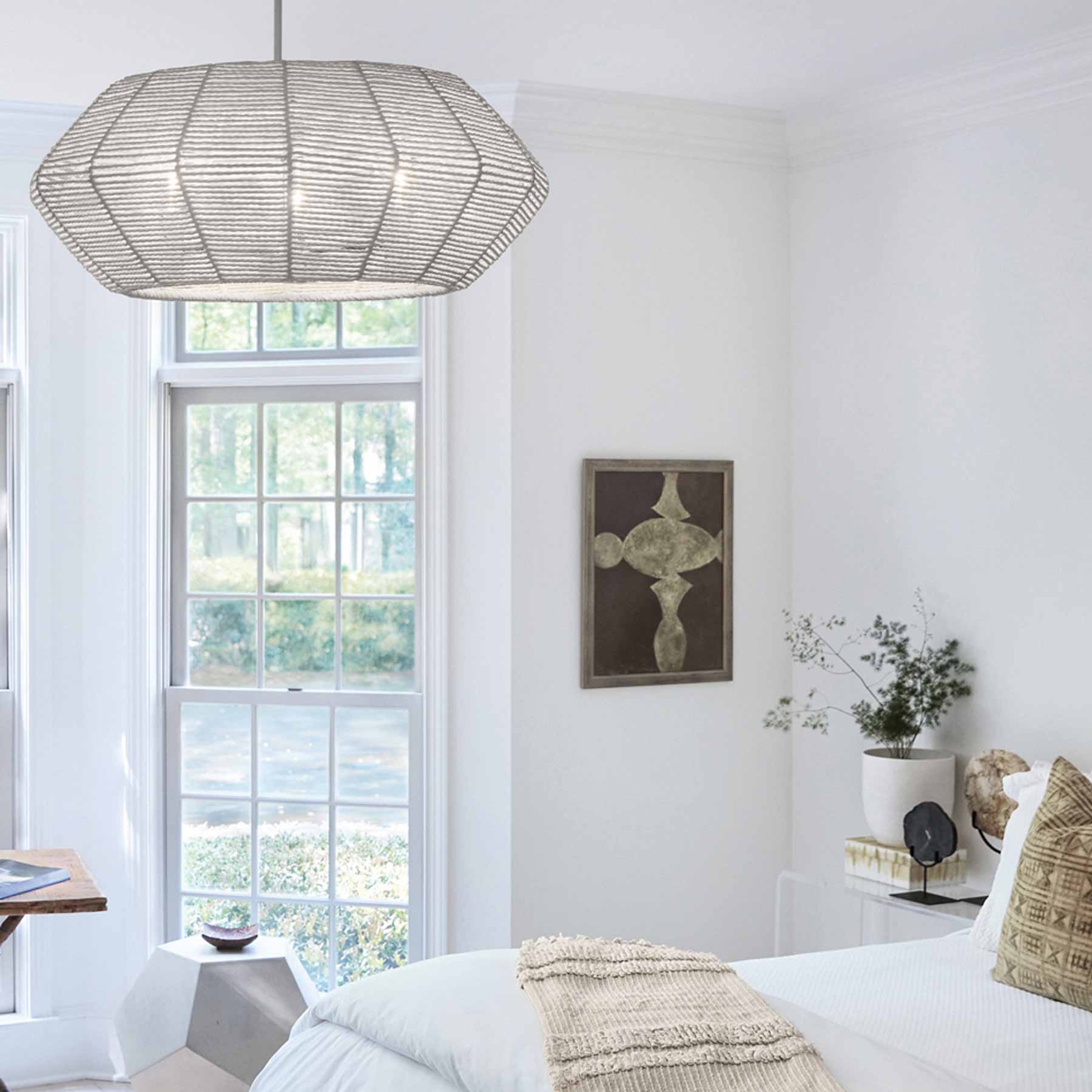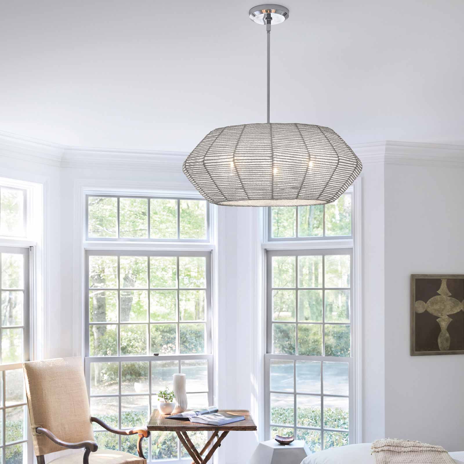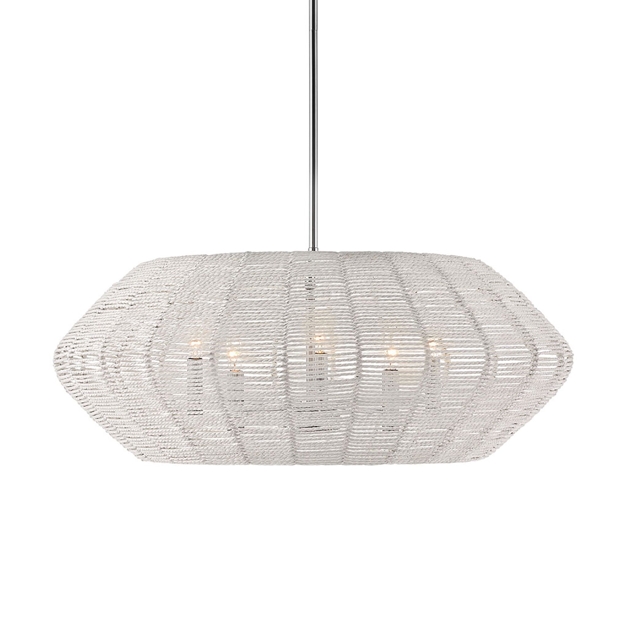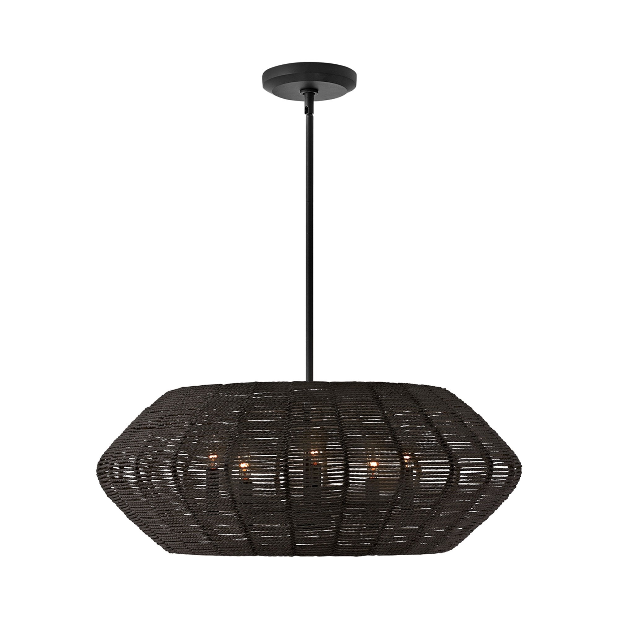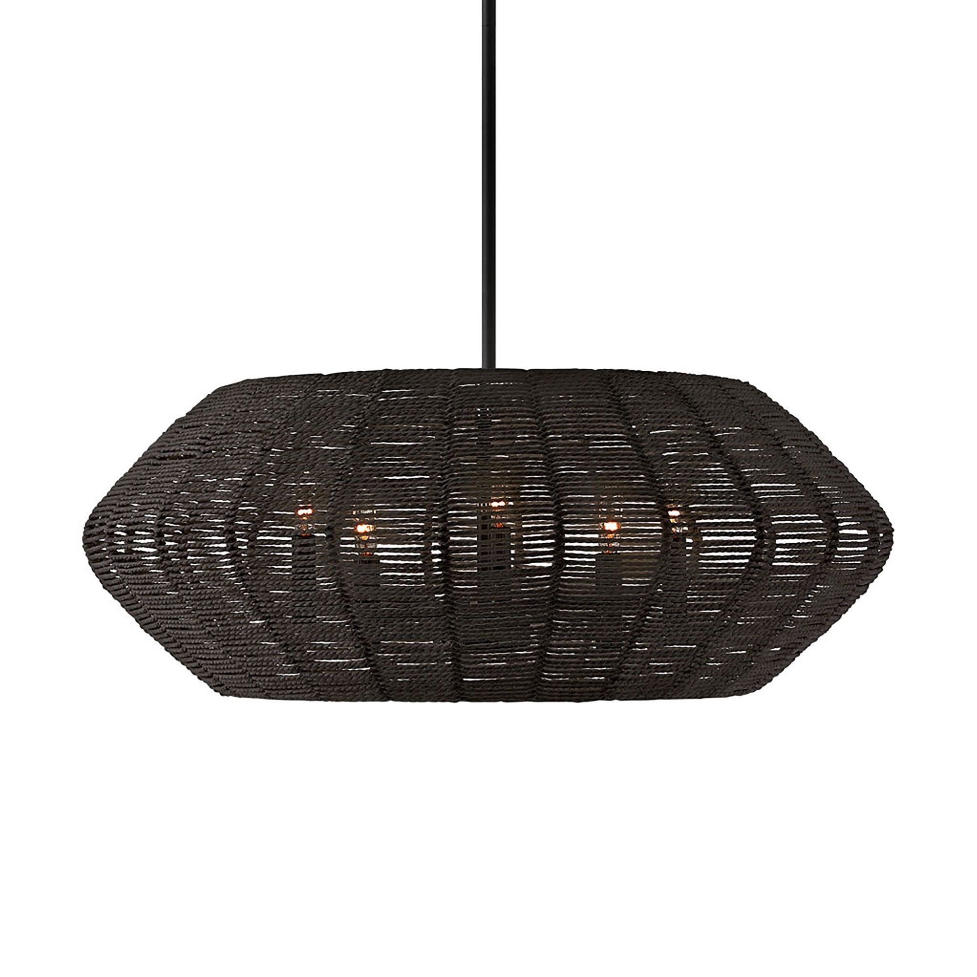 Luca's coastal vibe is permeated with a slightly exotic edge. The bold pendant showcases a robust, woven rattan drum shade, and a full finished cluster for plenty of functional light offered in either Black with Black Rattan shade or Polished Chrome with Natural Rattan shade. Luca is part of the Lisa McDennon Collection.