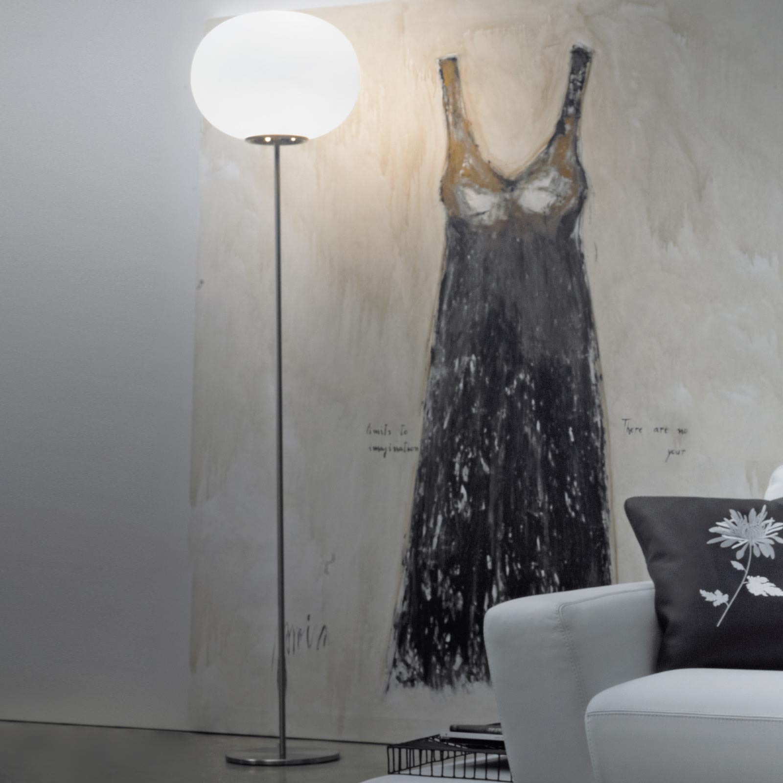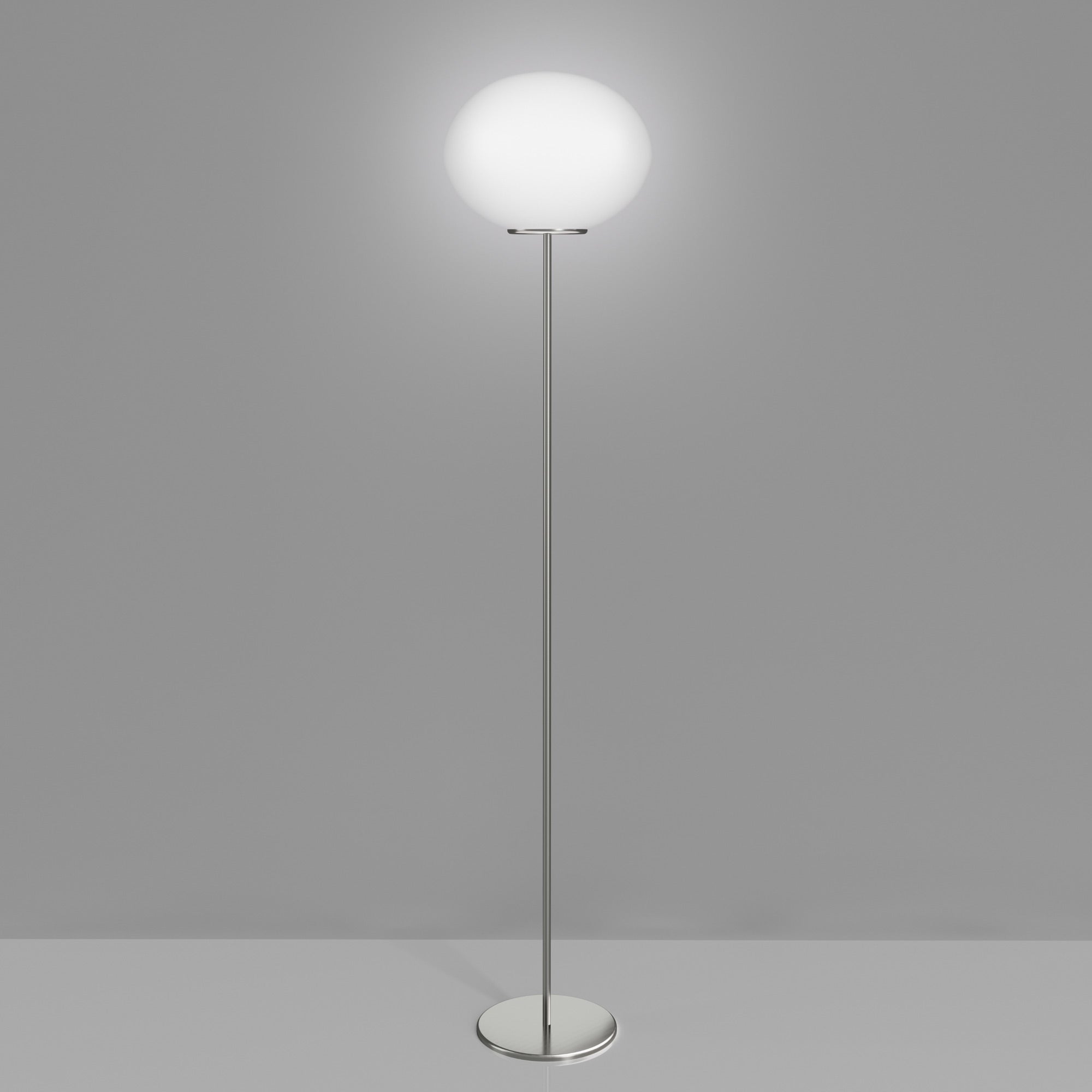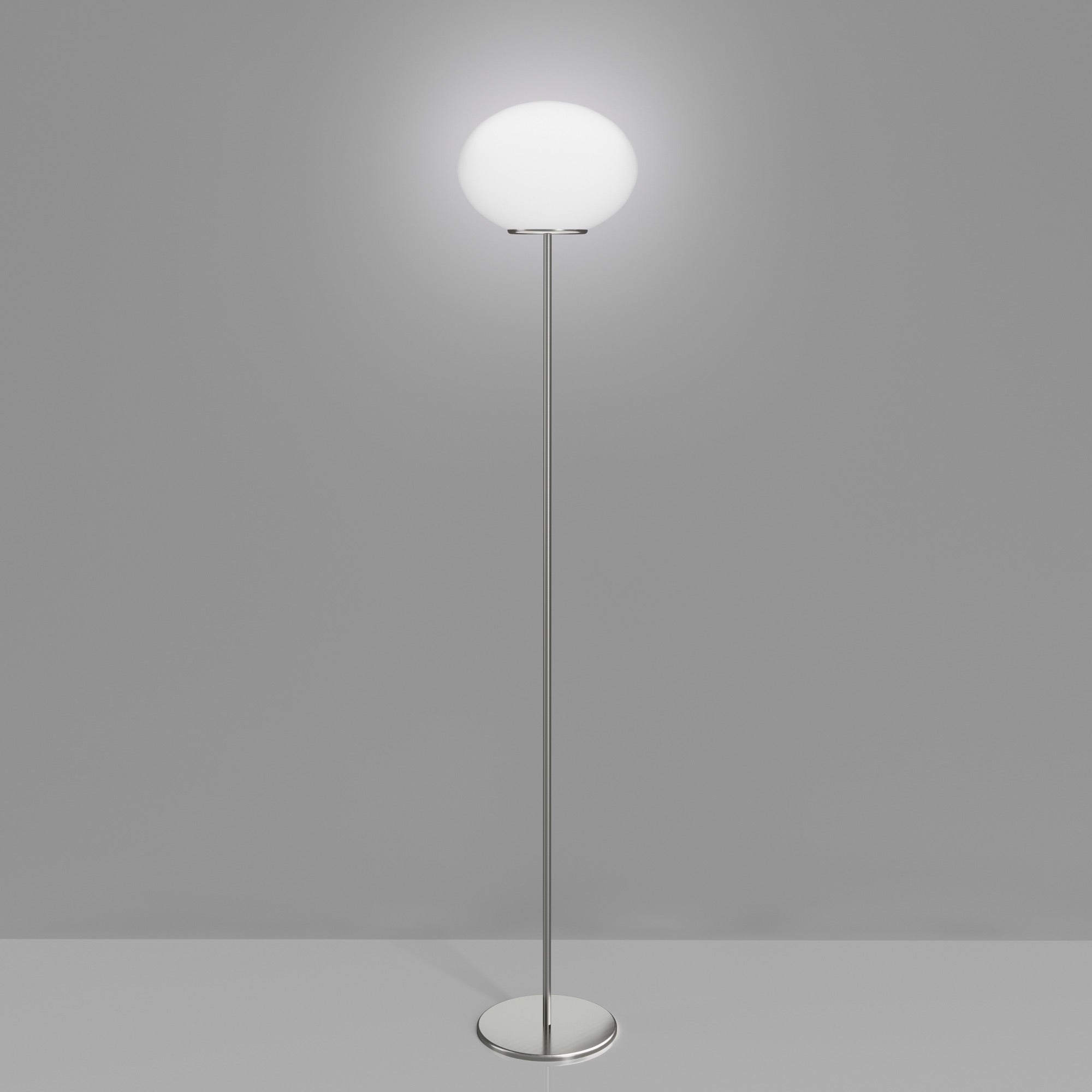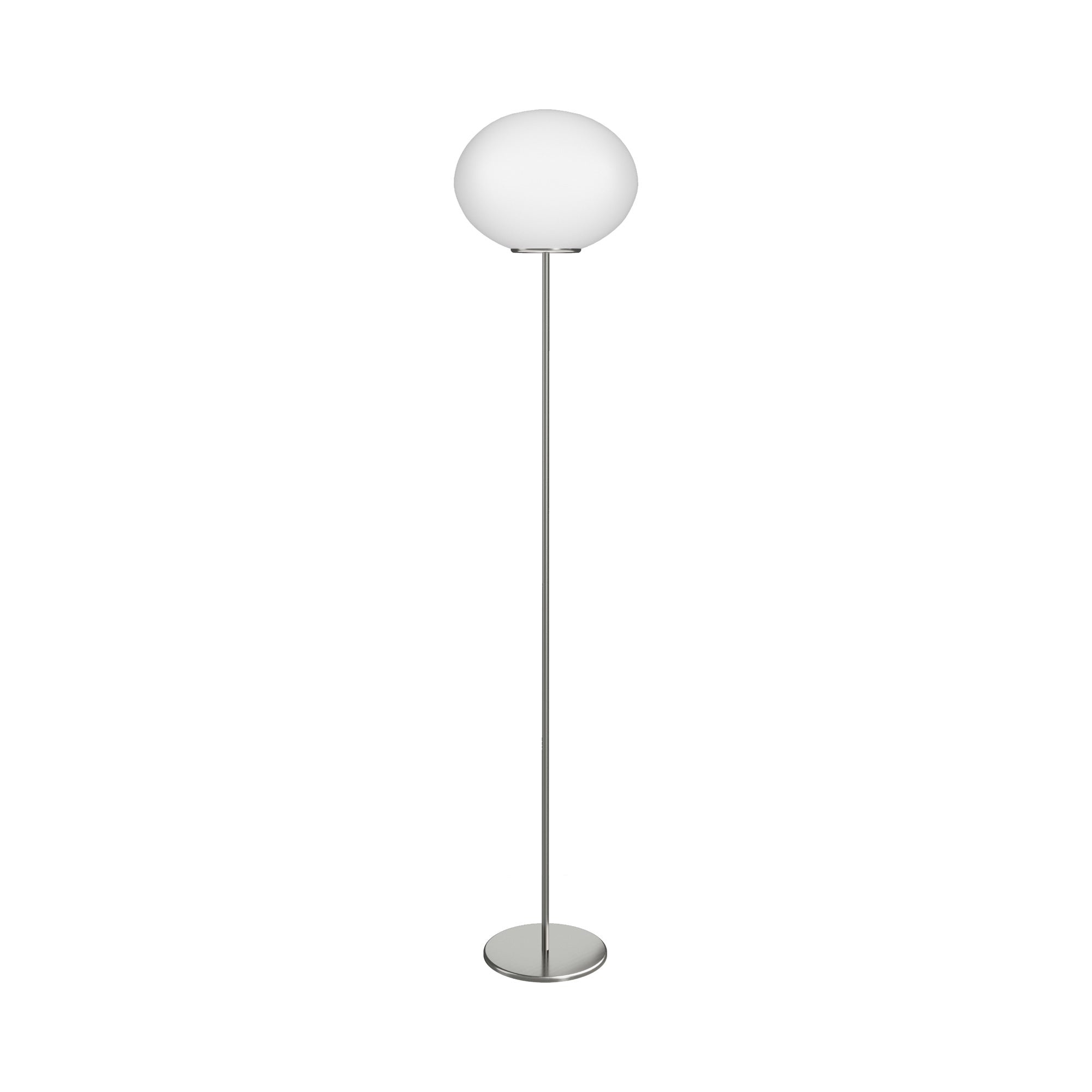 Artful elegance with a light touch reflects the strategic design of a tasteful light source ideal for modern rooms. The Lucciola Floor Lamp from Vistosi blends chic satin nickel finish metal topped with an ornate elliptical white satin glass shade. The pairing creates a sleek form of simplicity and a versatile lamp that brings sophistication to any venue.