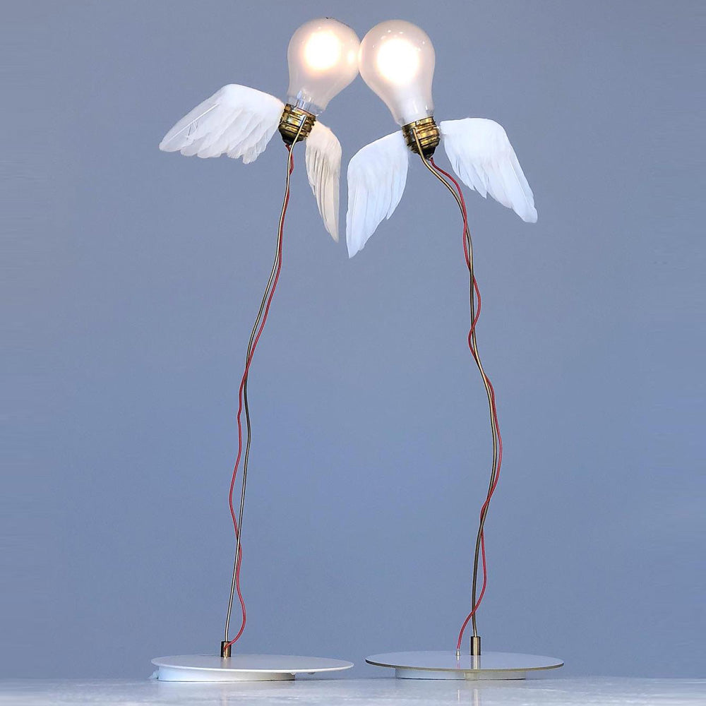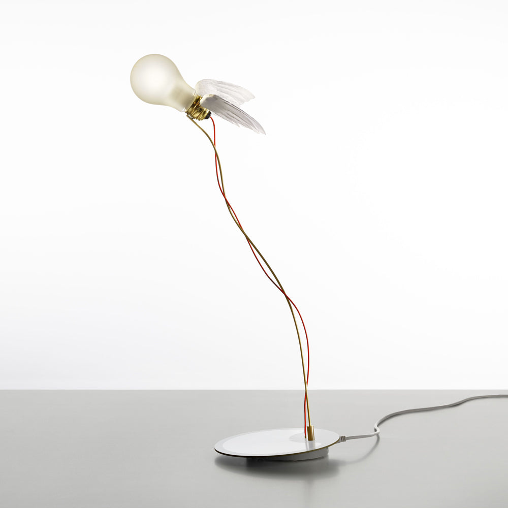 Sensory elevation takes the simplest of forms with the most basic of elements. The Lucellino Table Lamp from Ingo Maurer gives its best impression of an airborne creature, attaching handmade goose feather wings to an exposed bulb appearing to prepare for flight. With a nod to utilitarian pop art, this energy-efficient lamp repurposes attitude.
