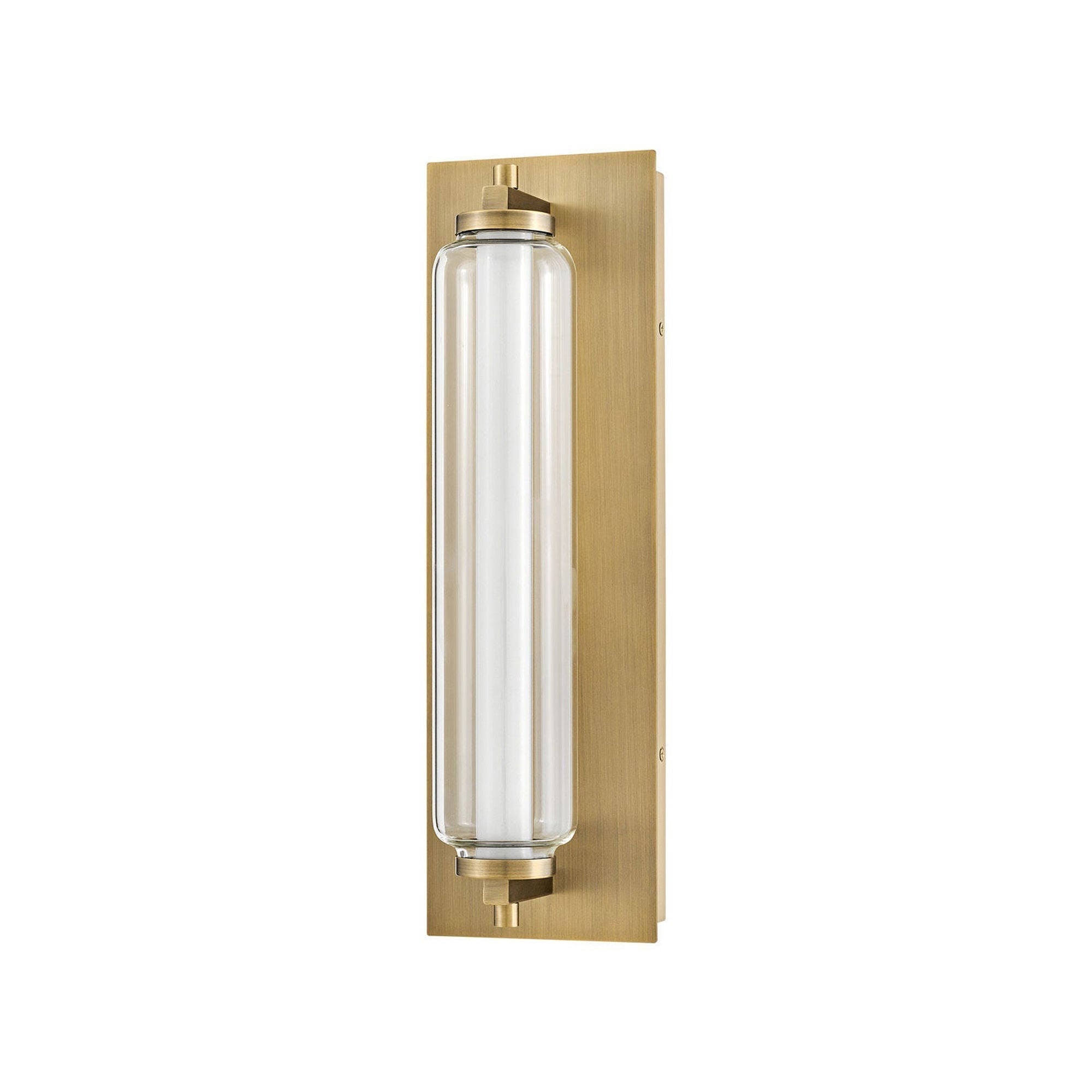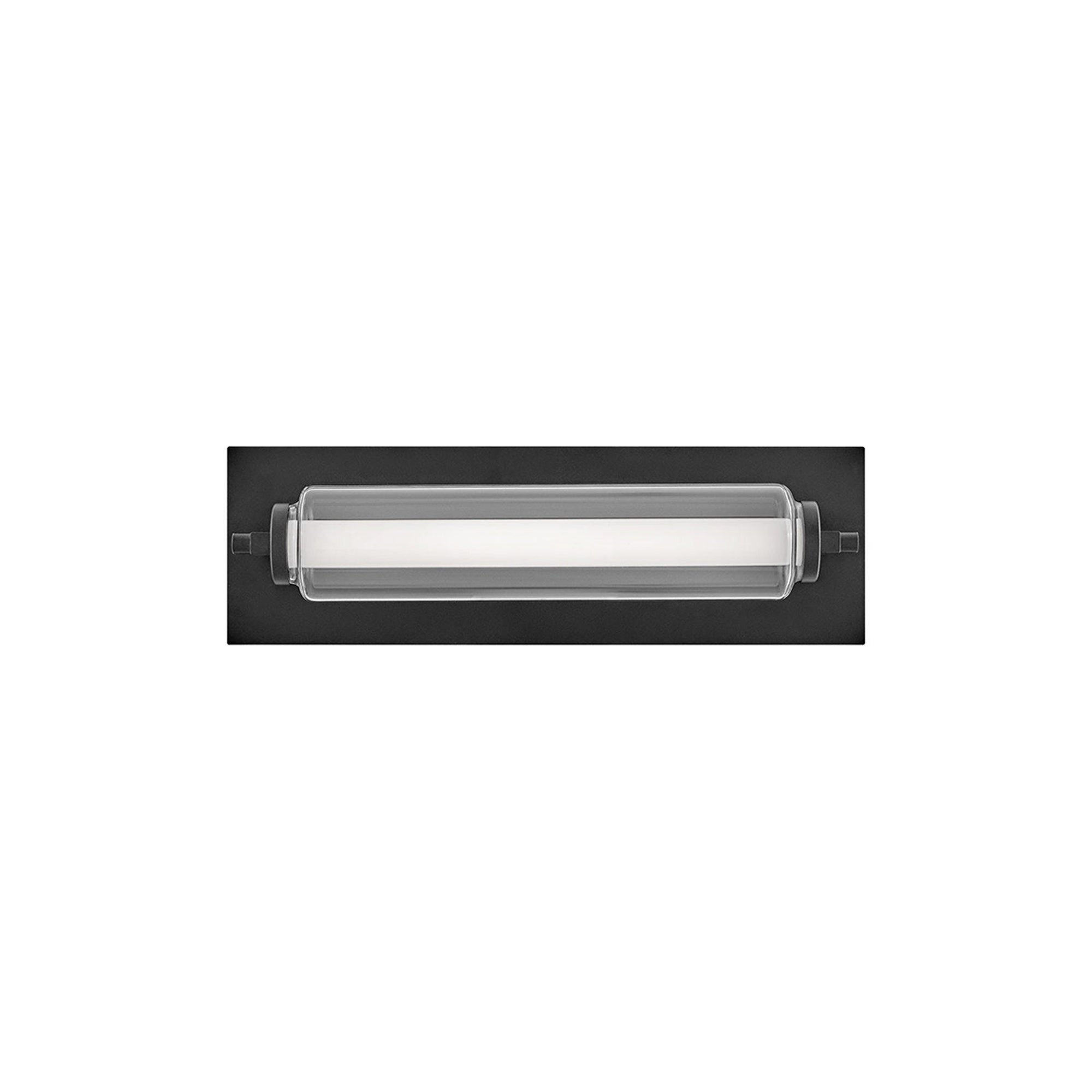 Industrial-inspired and decidedly architectural in structure, the Lucien LED Bath Vanity Light from Hinkley is a distinctive addition. Energy efficient light glows through an inner etched opal diffuser and outer clear glass cylinder for soft but bright illumination perfect for daily grooming. A strong back plate sets off the design to perfection, and it installs either vertically or horizontally to best fit your space.