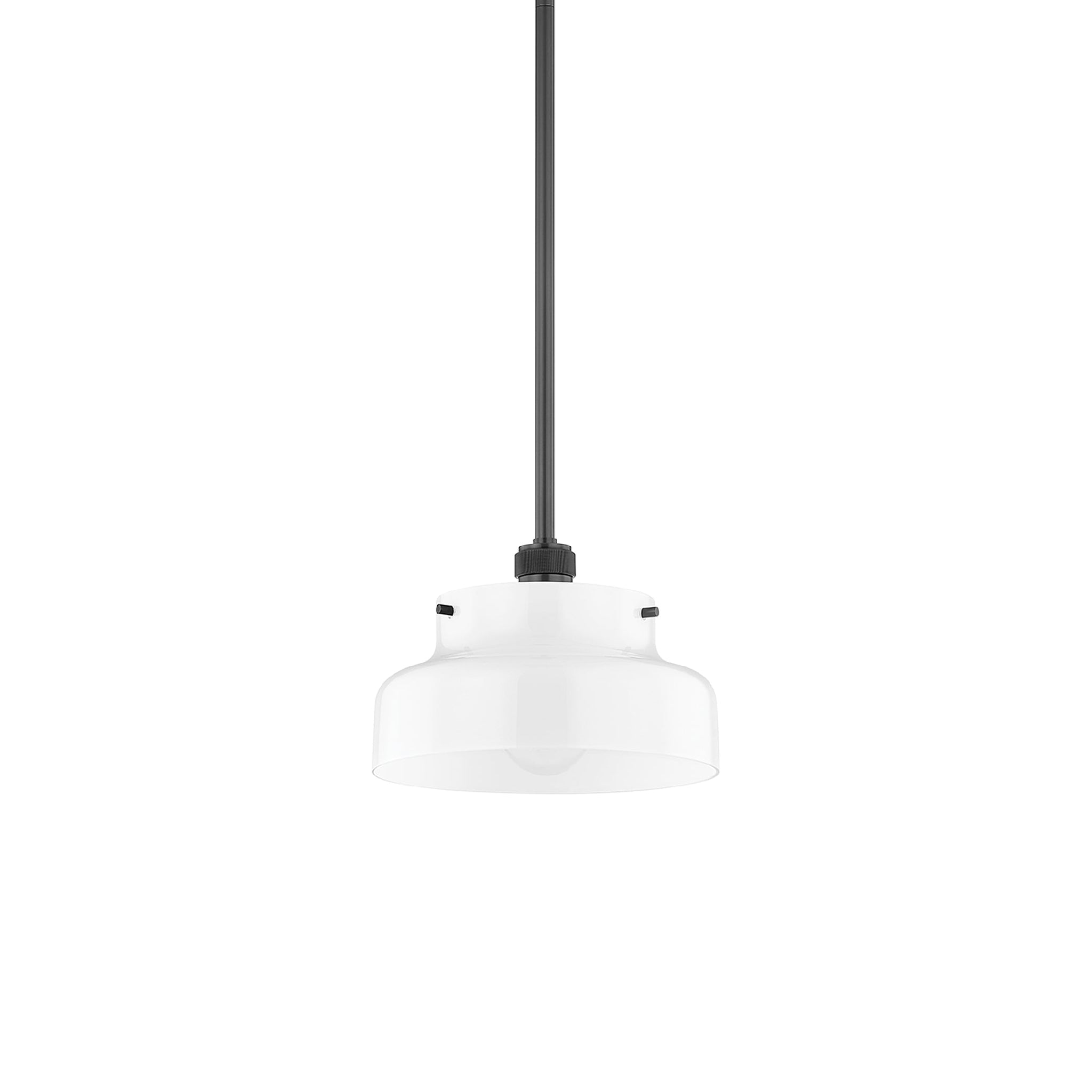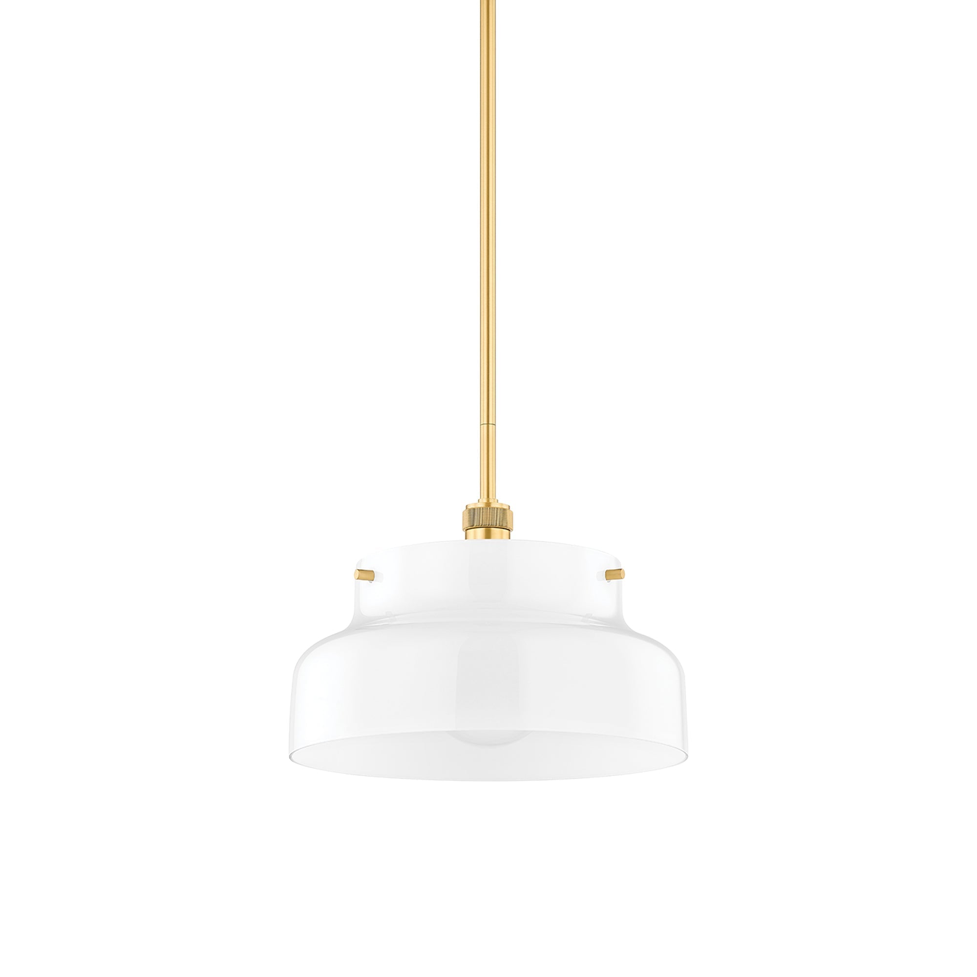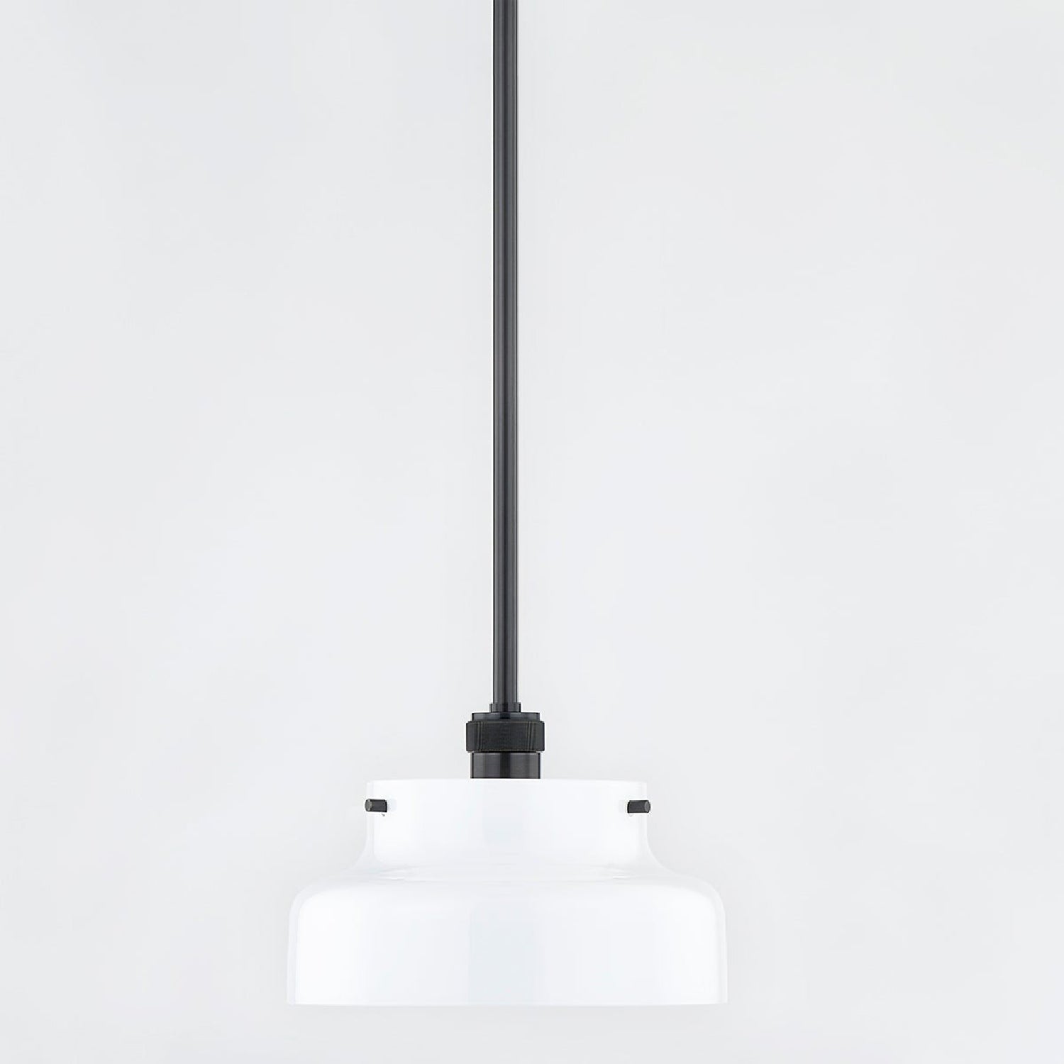 Intriguing metalwork details enhance the streamlined shade of glossy opal glass on the Luella Pendant Light from Mitzi. It’s a sophisticated but simple silhouette that pairs graceful curves with superb finishes, offering visual interest and a clean, minimalist aesthetic in your living or dining room.