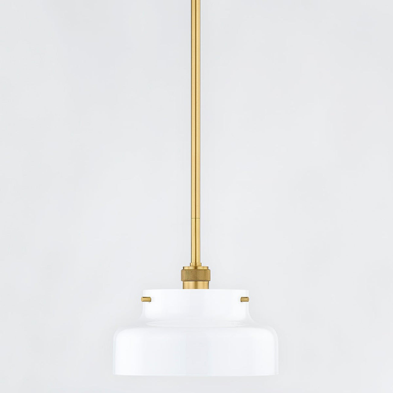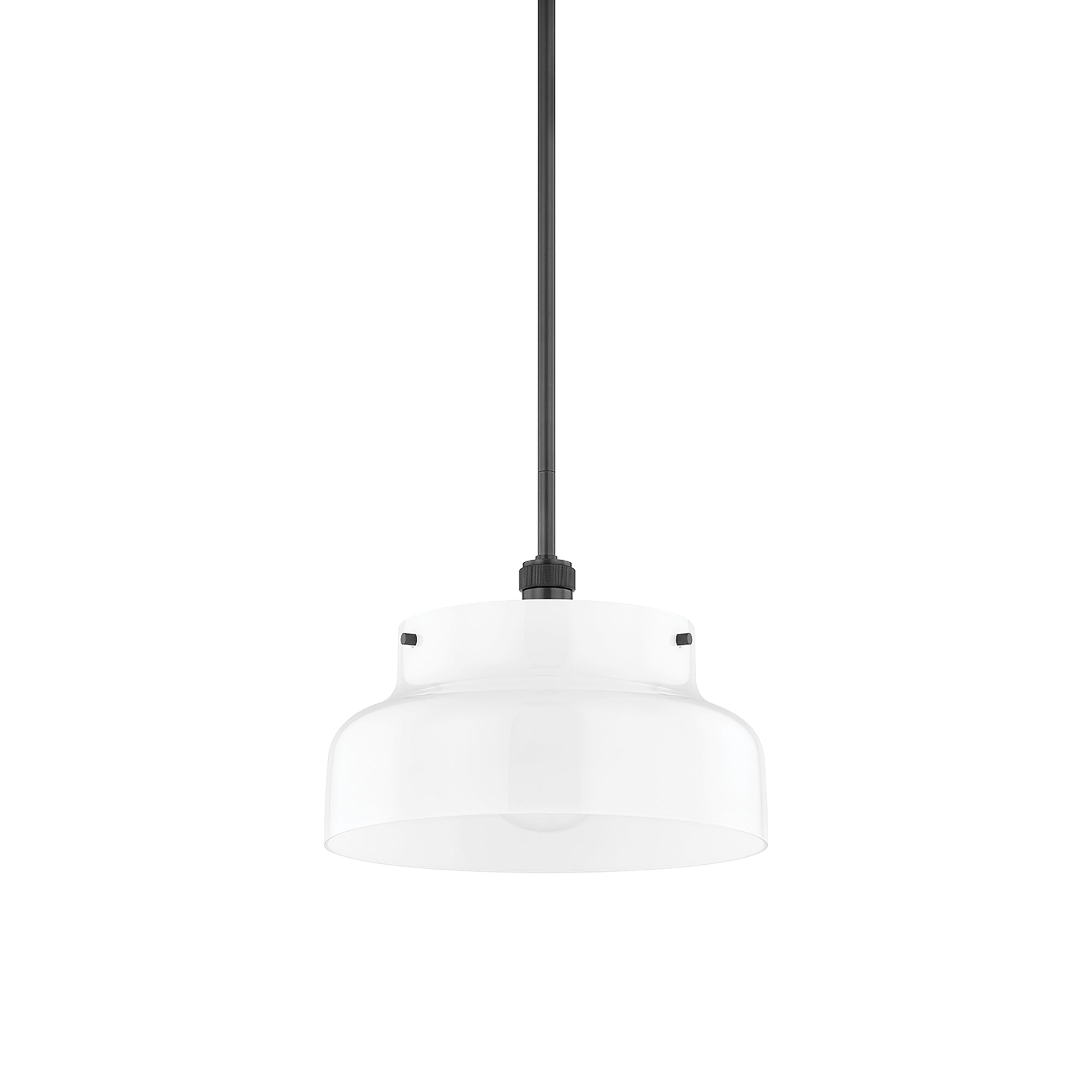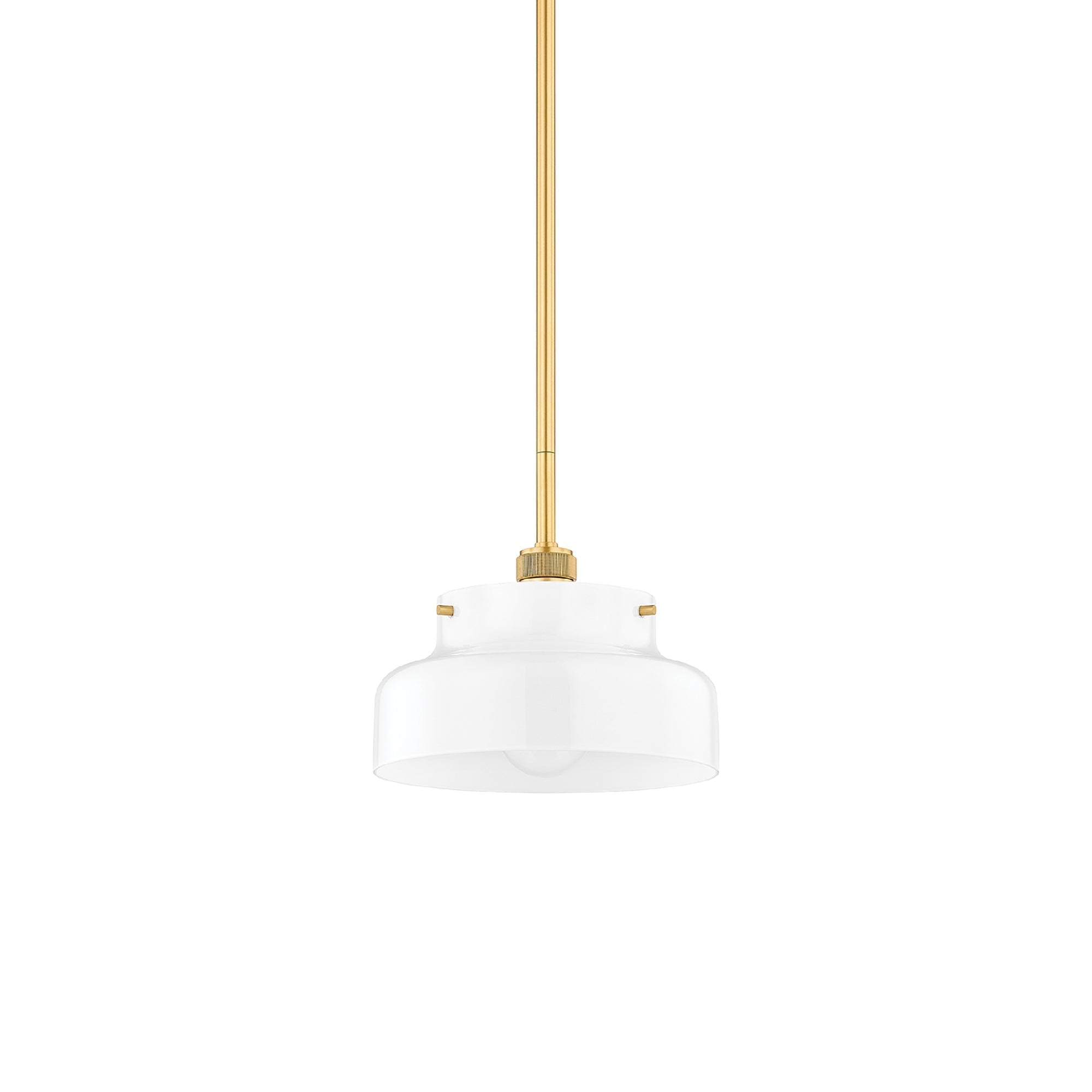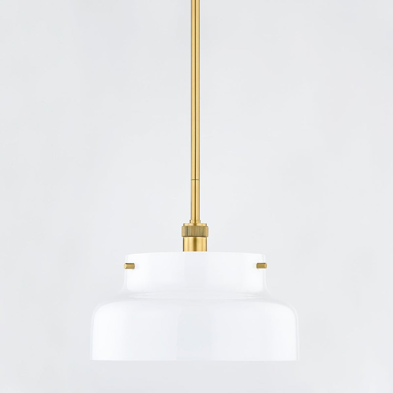 Intriguing metalwork details enhance the streamlined shade of glossy opal glass on the Luella Pendant Light from Mitzi. It’s a sophisticated but simple silhouette that pairs graceful curves with superb finishes, offering visual interest and a clean, minimalist aesthetic in your living or dining room.