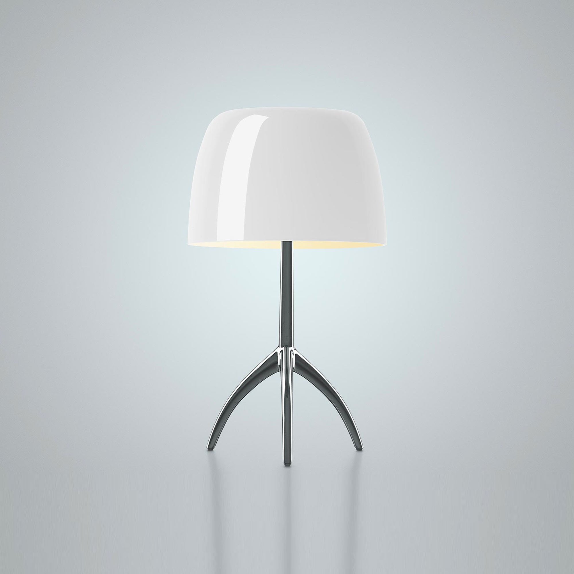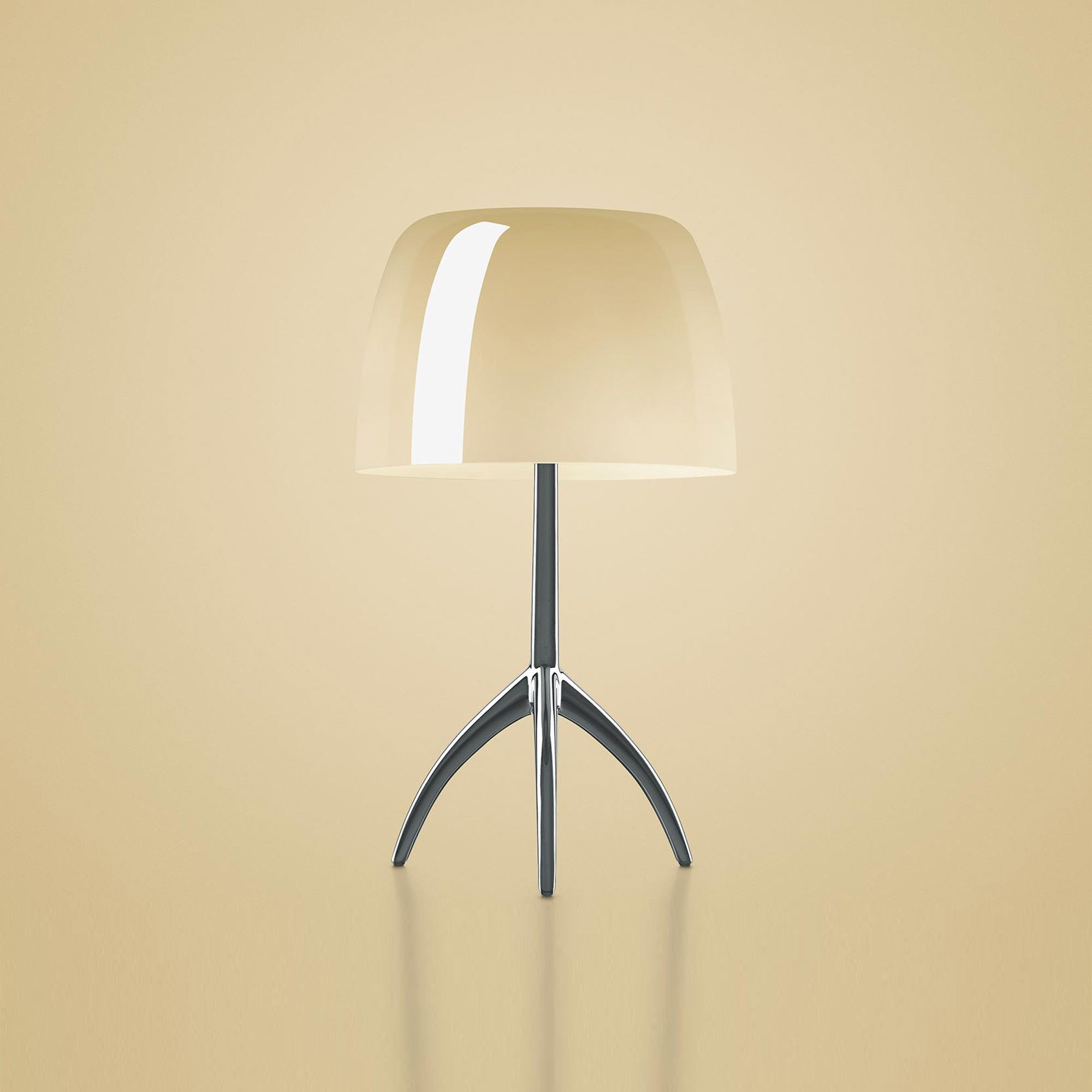 An exceptionally bold Lumiere Table Lamp from Foscarini incorporates an eye-catching shade and tripod base. Place it in your living area or master suite for the attention that it deserves.