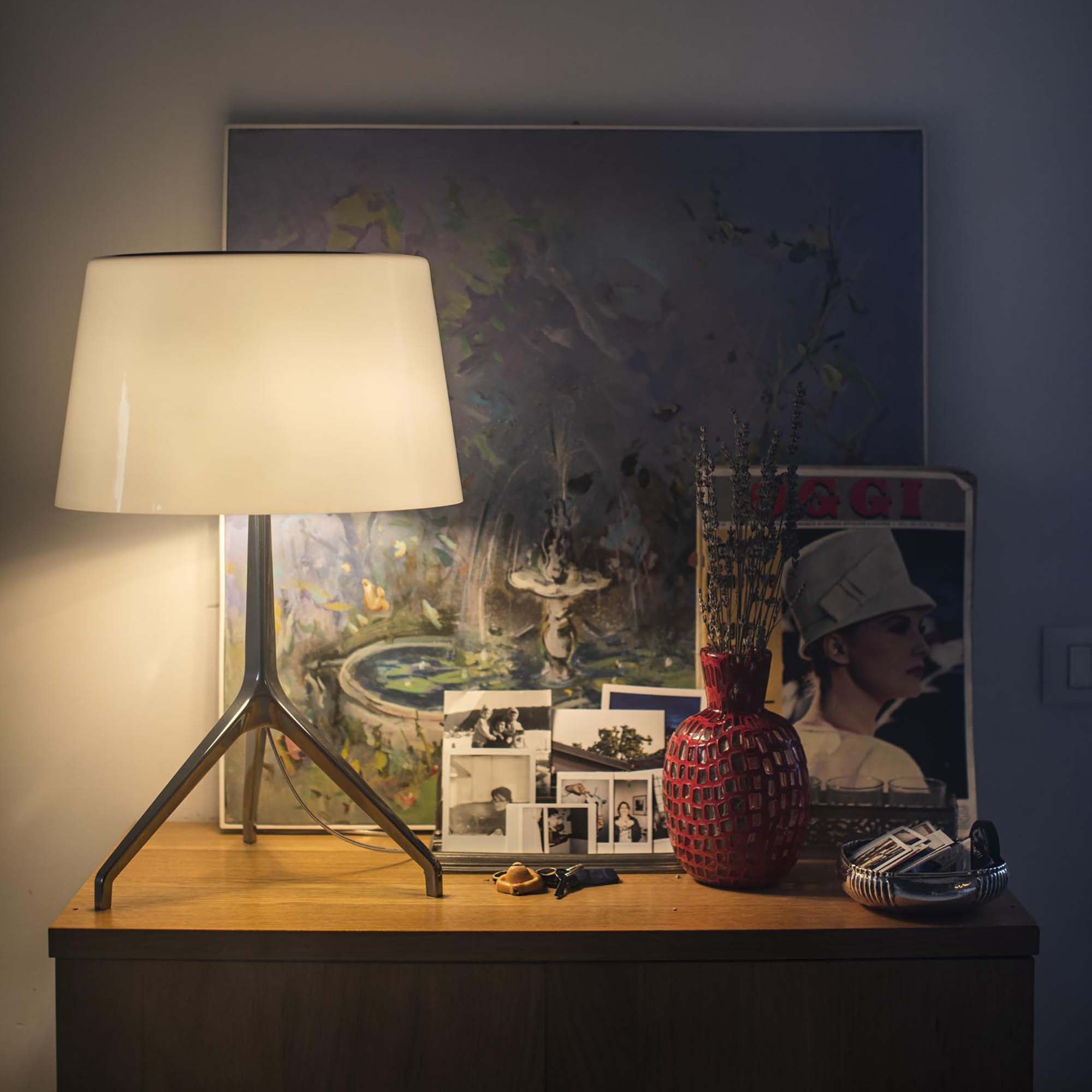 Try the Lumiere XX Table Lamp from Foscarini for a head-turning display in your living space. The lampshade creates a sophisticated yet diffused glow to set the perfect ambiance for dinner parties or early morning routines.