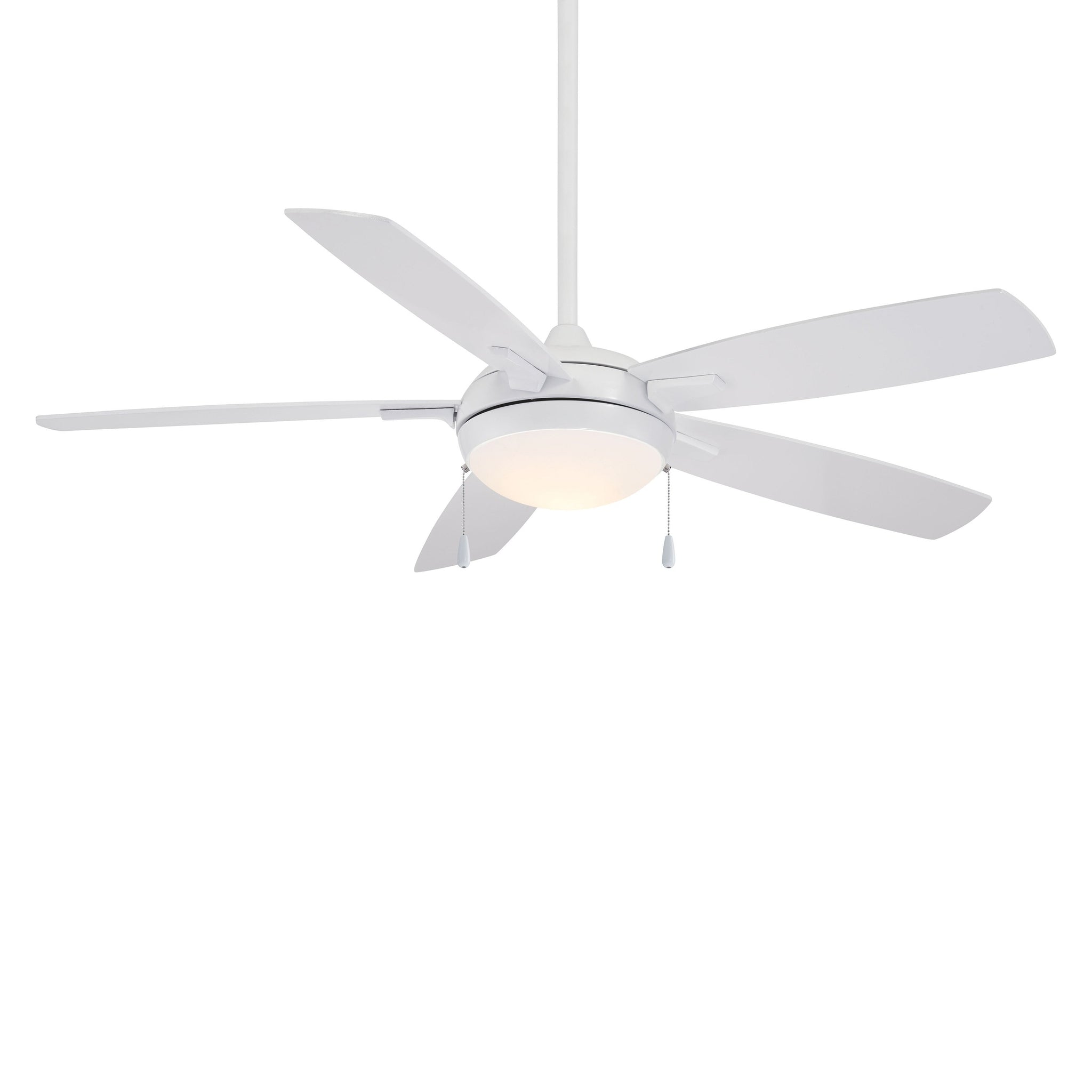 Dress up a casual space with the Lun-Aire LED Ceiling Fan from Minka Aire and its intriguing design scheme with an Art Deco inspired bowl housing and five paddle blades. Metal construction in a host of finish options delivers a signature design stamp as well as breezy circulation and ambient lighting through a decadent etched opal glass shade.
