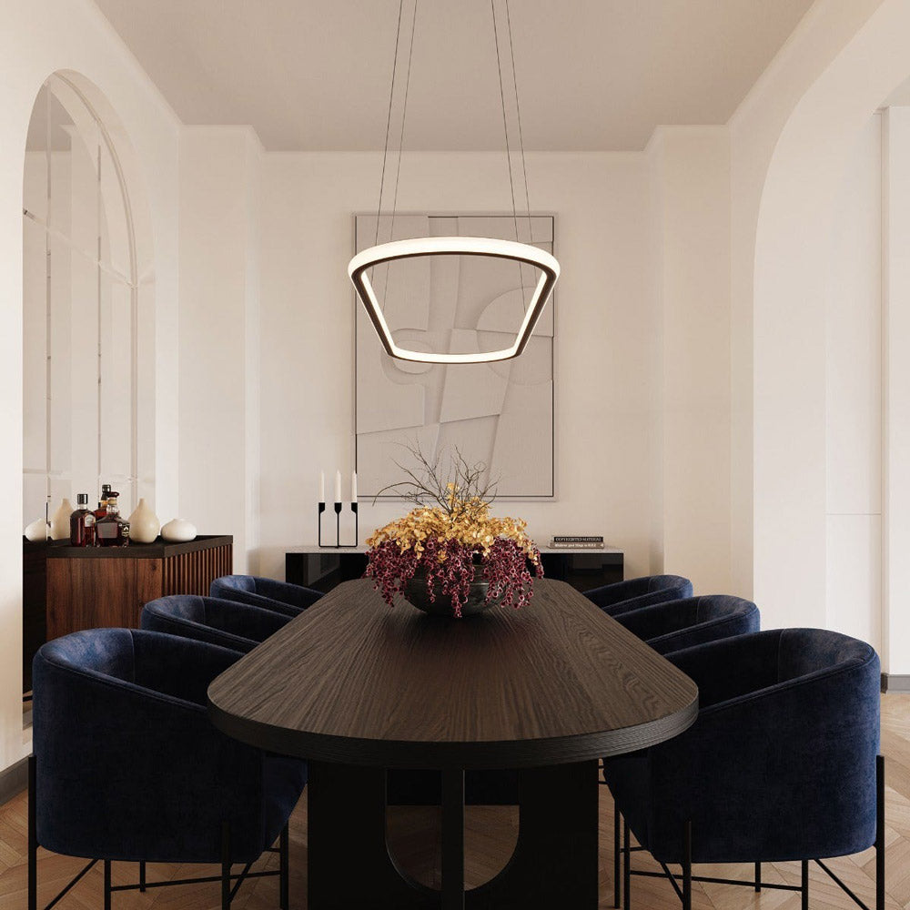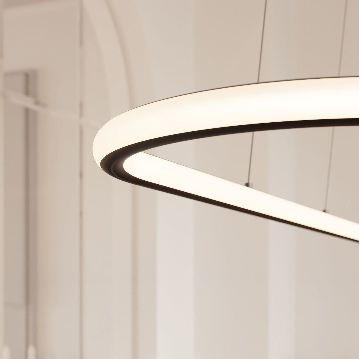A confluence of shape and movement defines the Luna Racetrack LED Pendant Light from Sonneman, offering a new perspective on illuminating a contemporary space. Experience a flush of interior and exterior lighting from a looped frame suspended from razor-thin cables to create an illusory floating aesthetic. Dramatic impact of ambient and accent lighting appears in a solo fixture or a cluster, suiting design wishes.