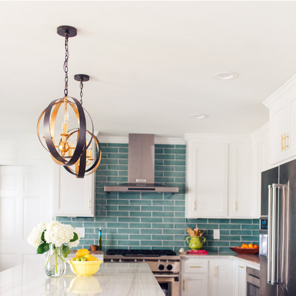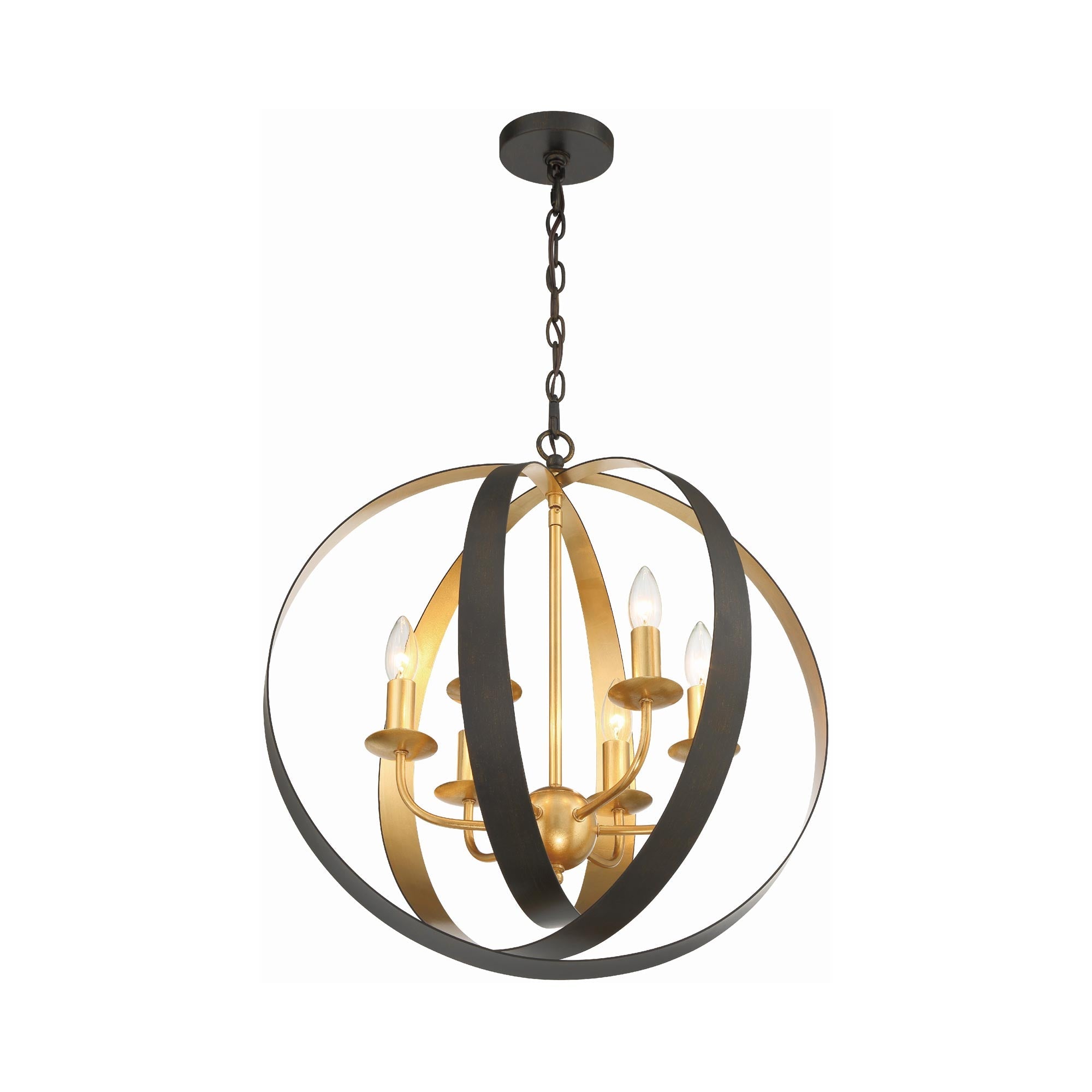 Ribbons of steel intertwine to define the elliptical elegance of the Luna Sphere Chandelier from Crystorama. The interior of each ribbon glows in an antique gold finish, while compelling contrast is created with a two-tone design that delivers impressive depth and dimensionality. An impressive choice over a kitchen island or greeting guests in the foyer.