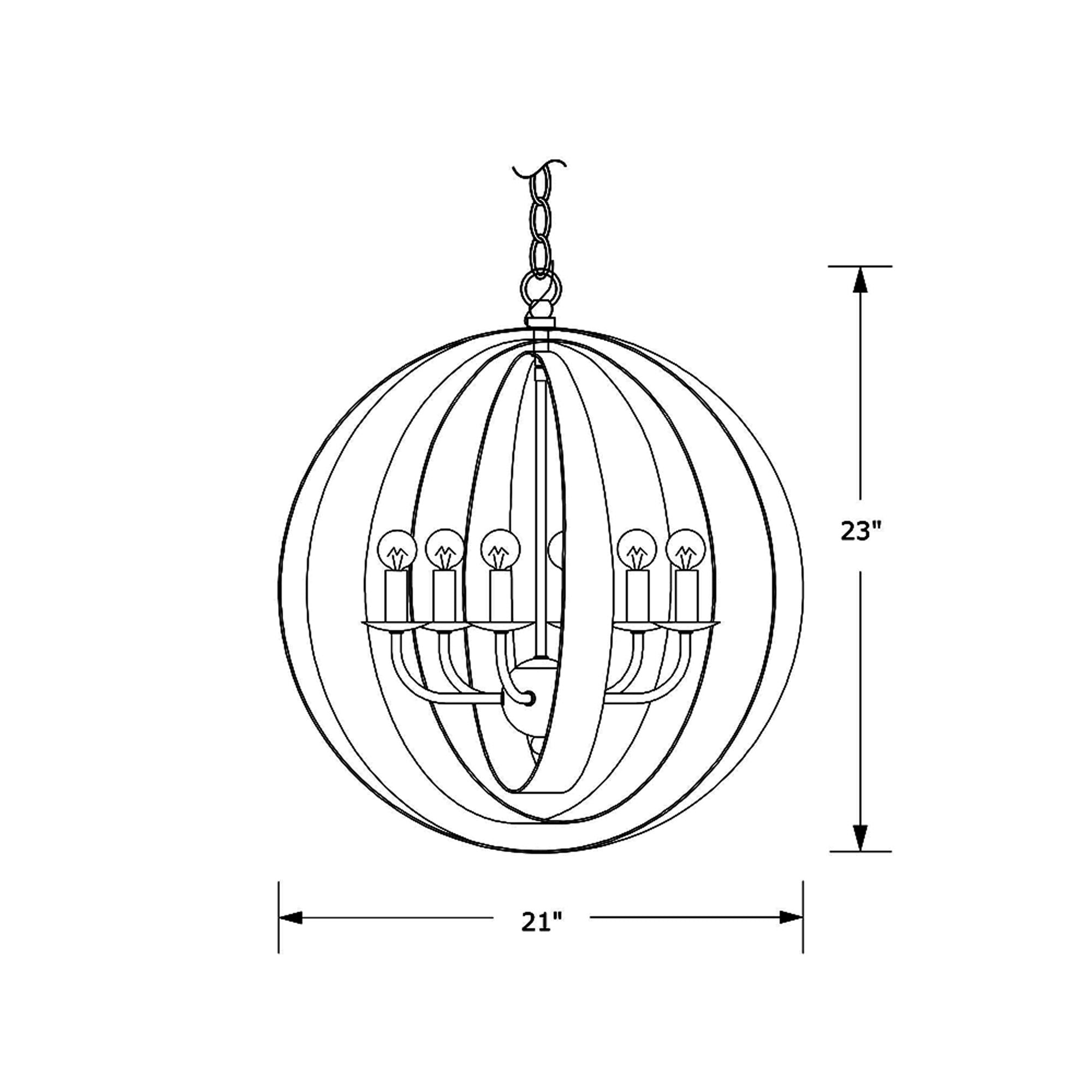 - 6-Light: 6 X 60W 120V E12(candelabra base) G16.5 incandescent lamps (not included)